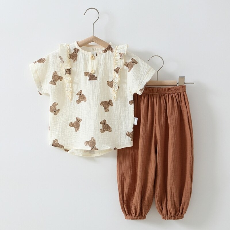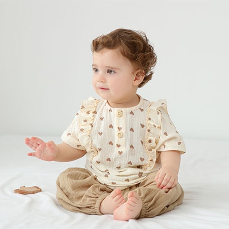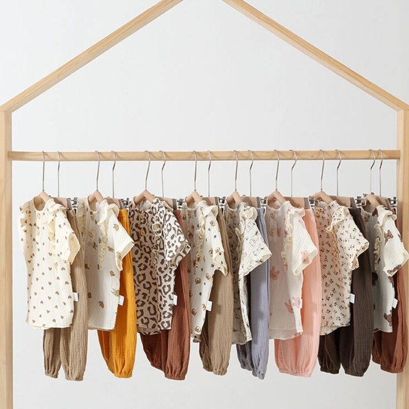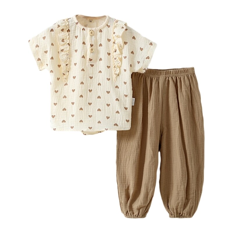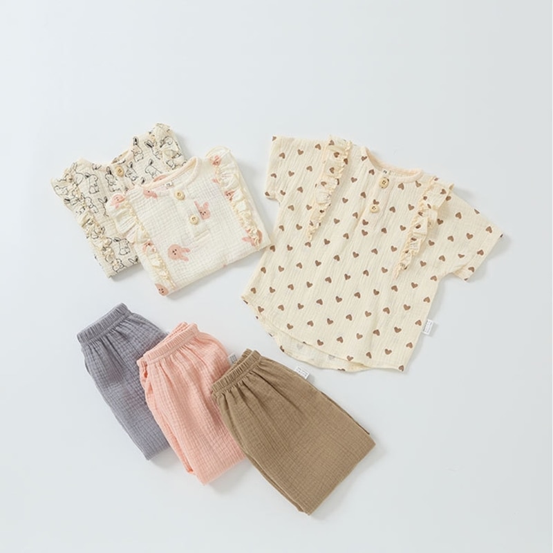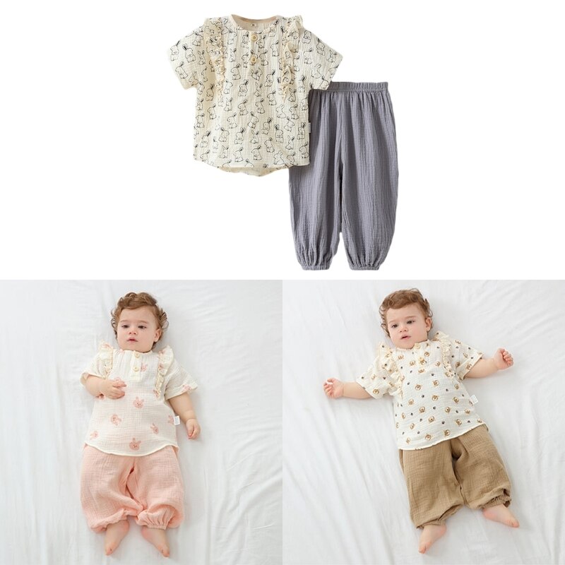Выбранный Материал: в летнем наборе с короткими рукавами для детей используется квалифицированный марля-хлопок, мягкий дышащий материал, высокая Абсорбирующая способность, нелегко пролить или выцветать, устойчивость к катышкам, антистатичность, с хорошей производительностью.