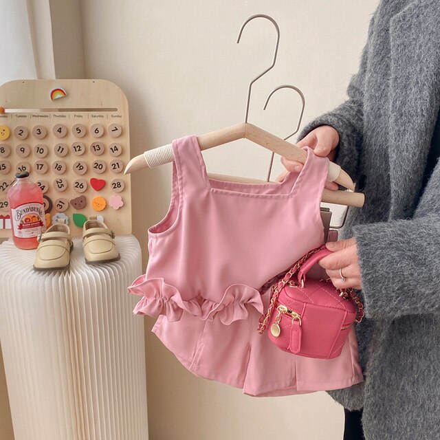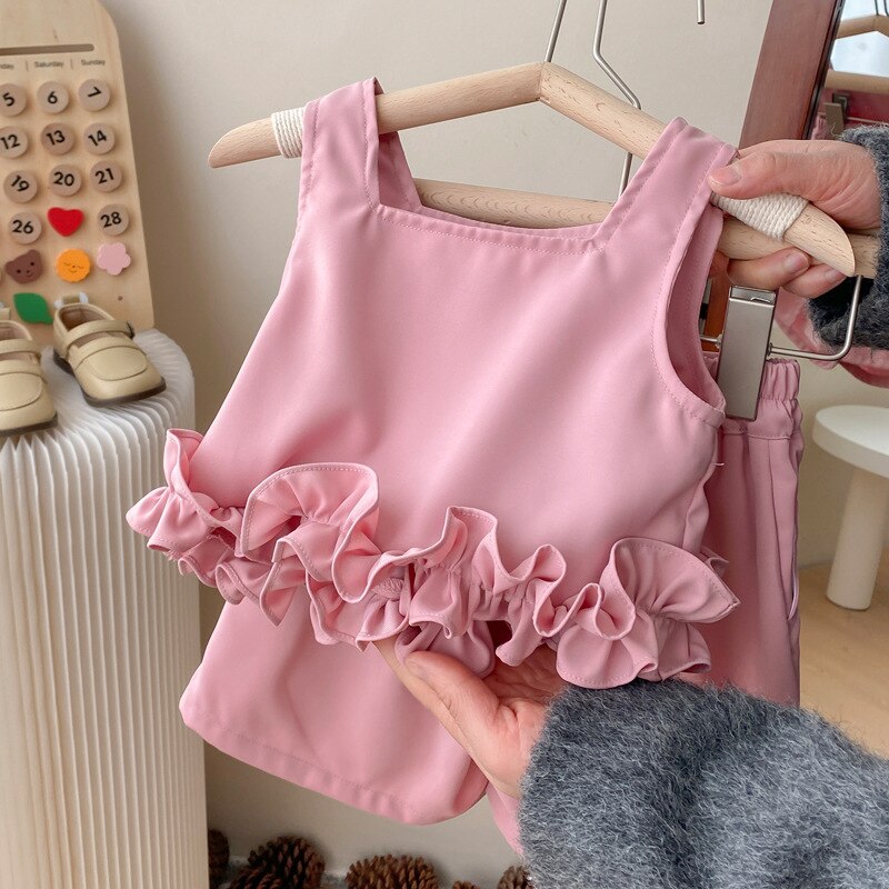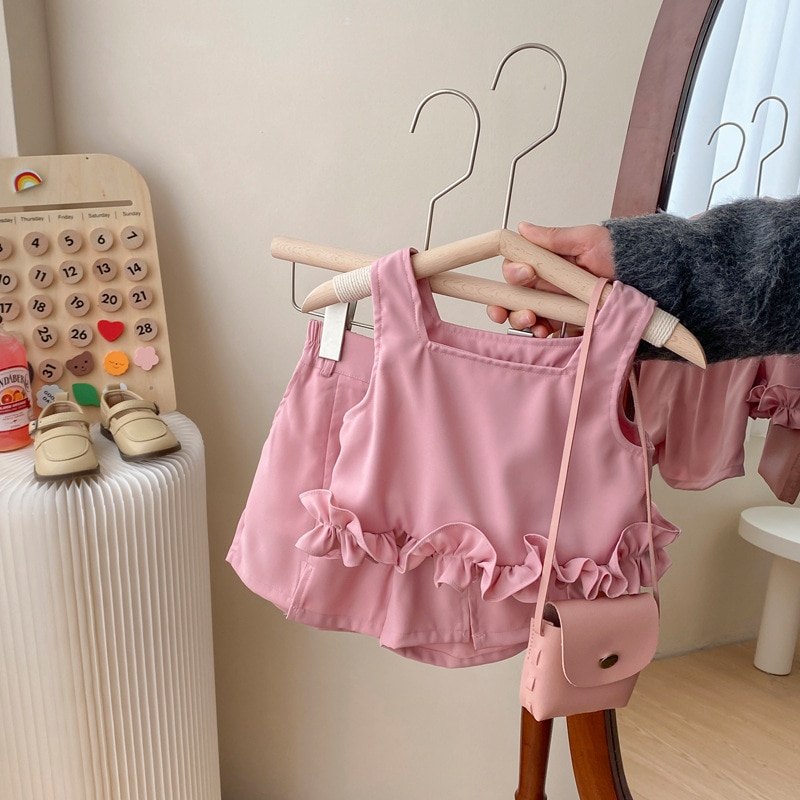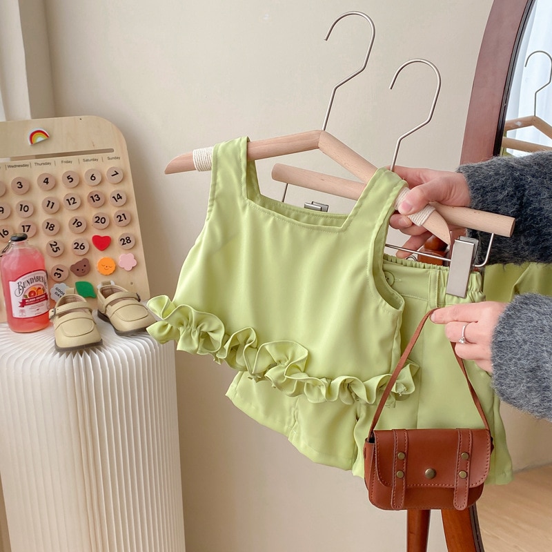 Летний комплект для девочек, новинка 2023, детское летнее платье в Корейском стиле для маленьких девочек, комплект из двух предметов с шортами без рукавов, детская одежда