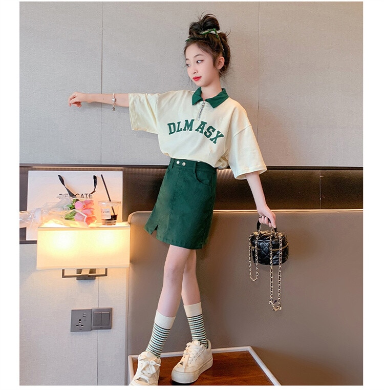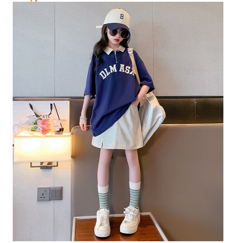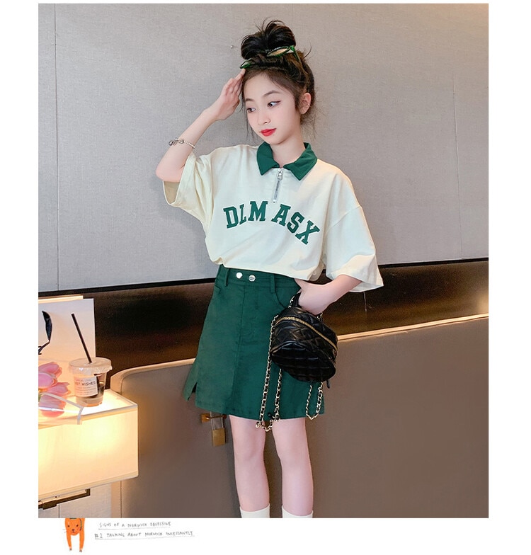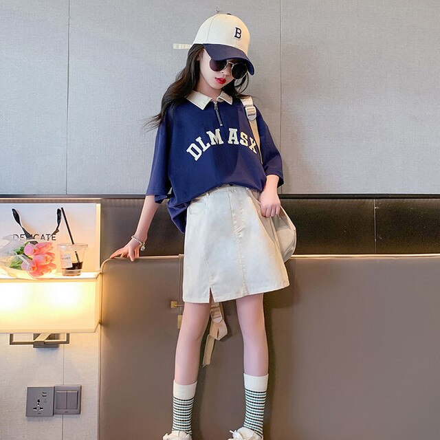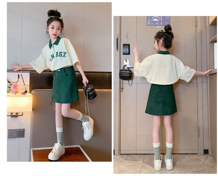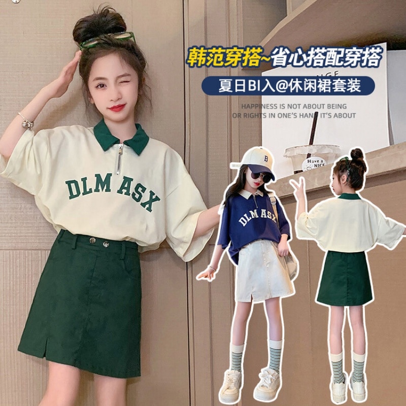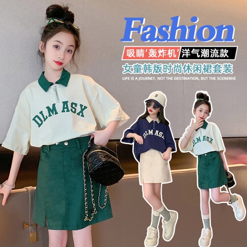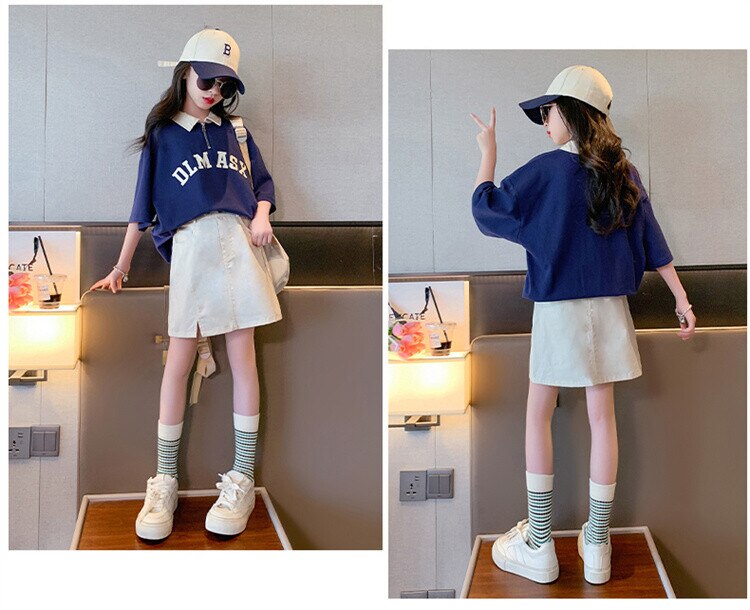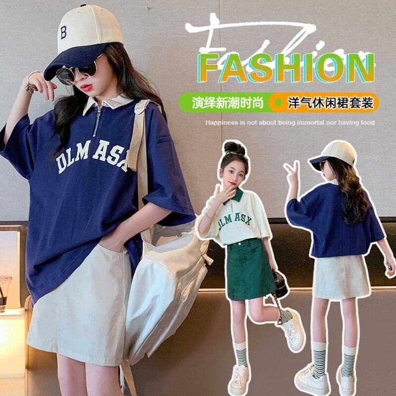 Летний костюм для девочек 2023, детский топ с коротким рукавом, рубашка-поло + юбка, костюм из 2 предметов, детская спортивная одежда, повседневная одежда для девочек
