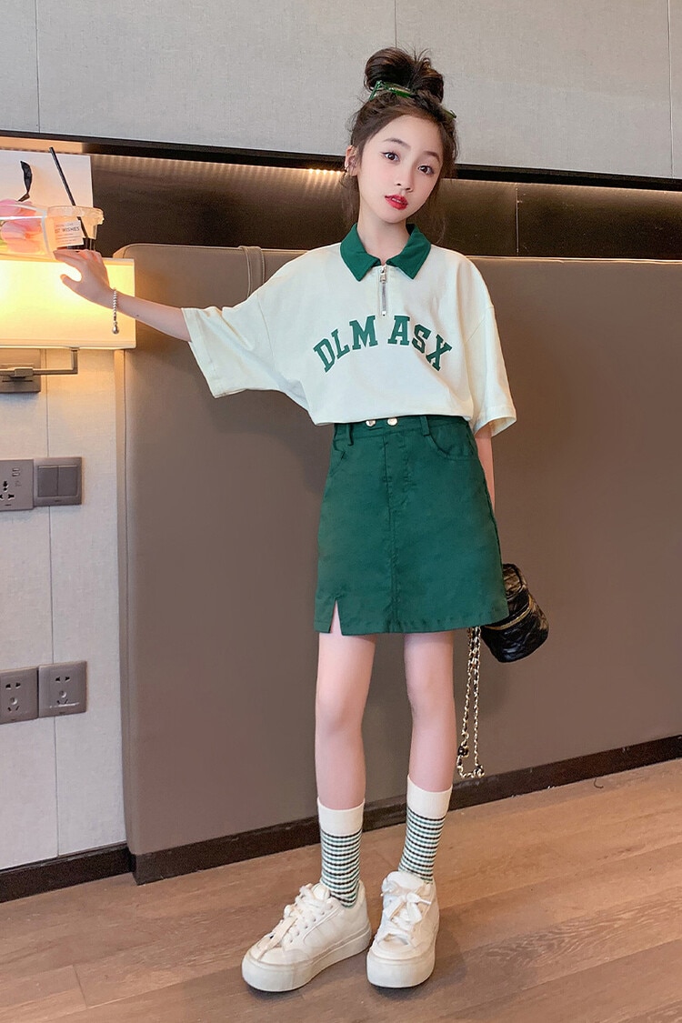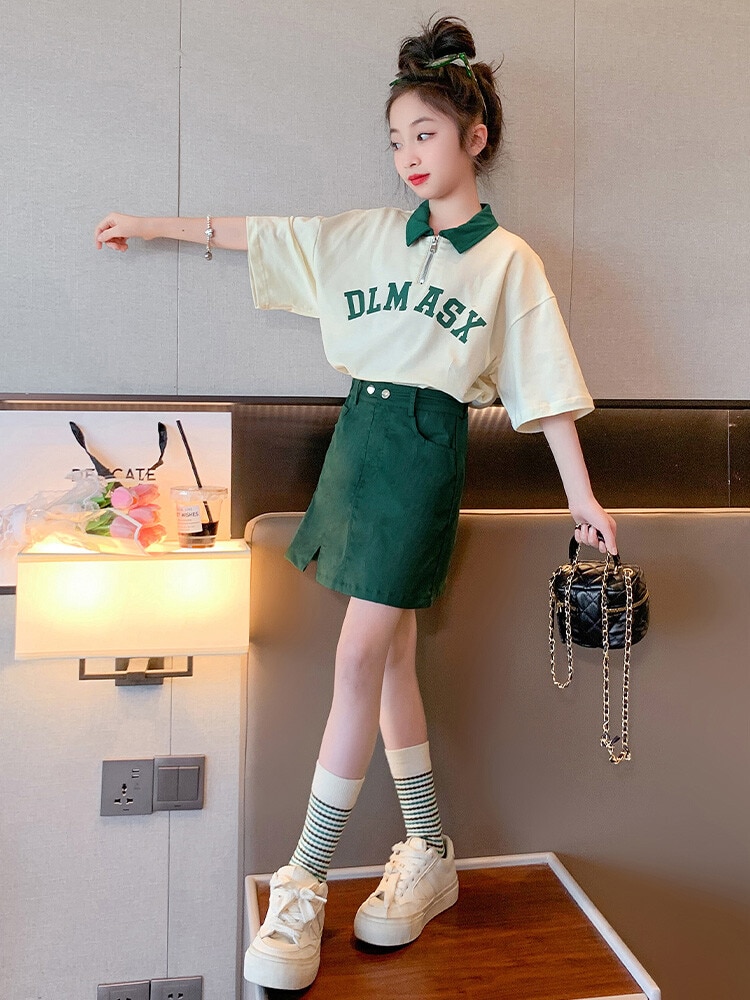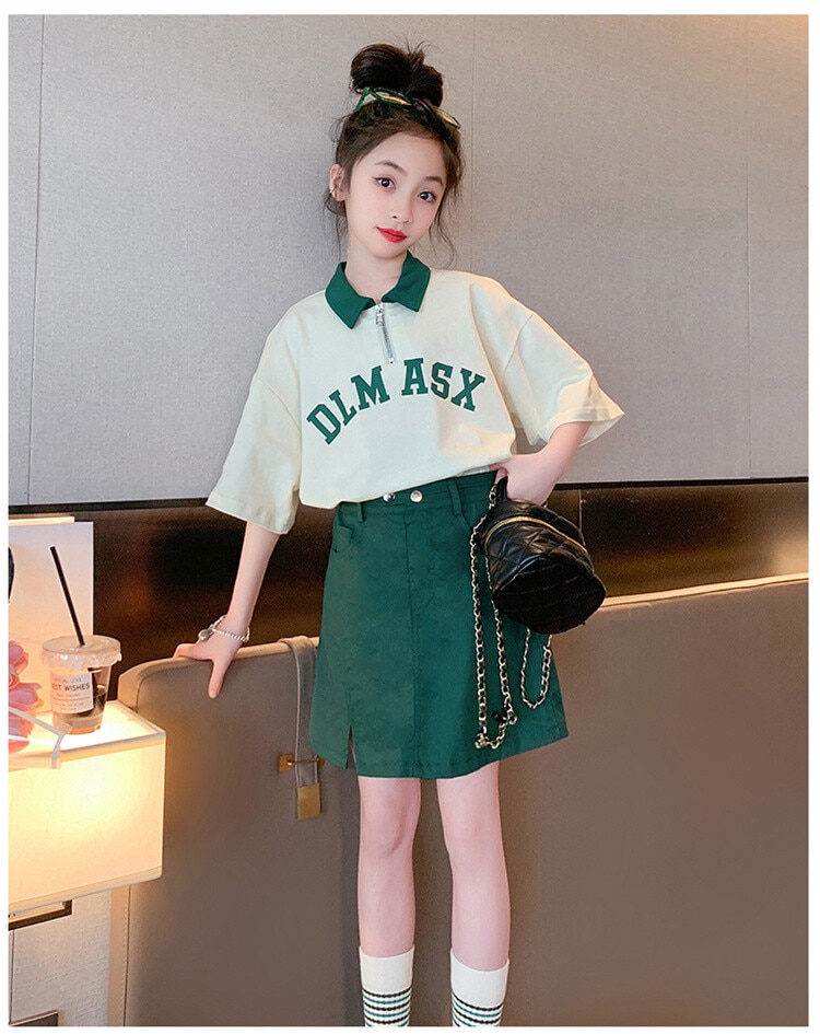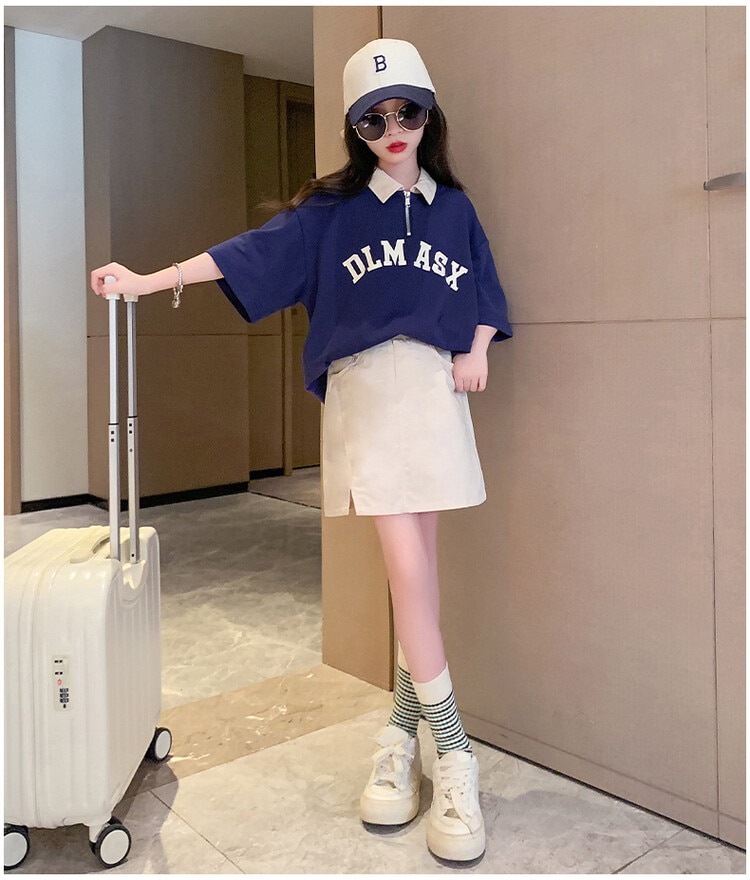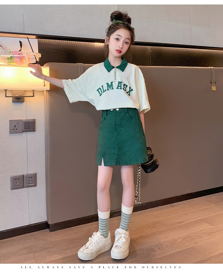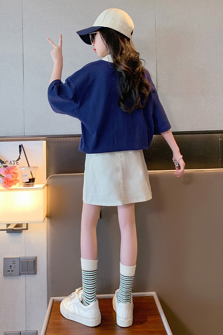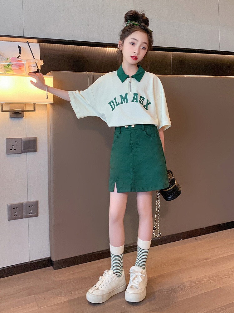 Летний костюм для девочек 2023, детский топ с коротким рукавом, рубашка-поло + юбка, костюм из 2 предметов, детская спортивная одежда, повседневная одежда для девочек