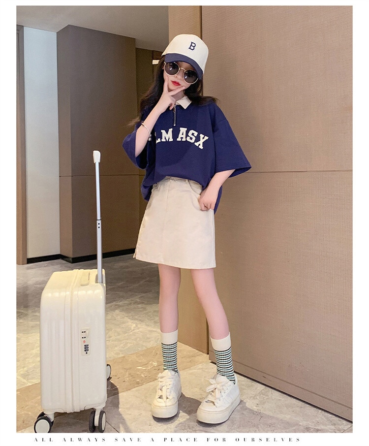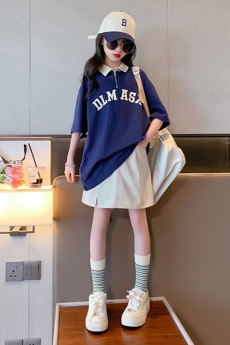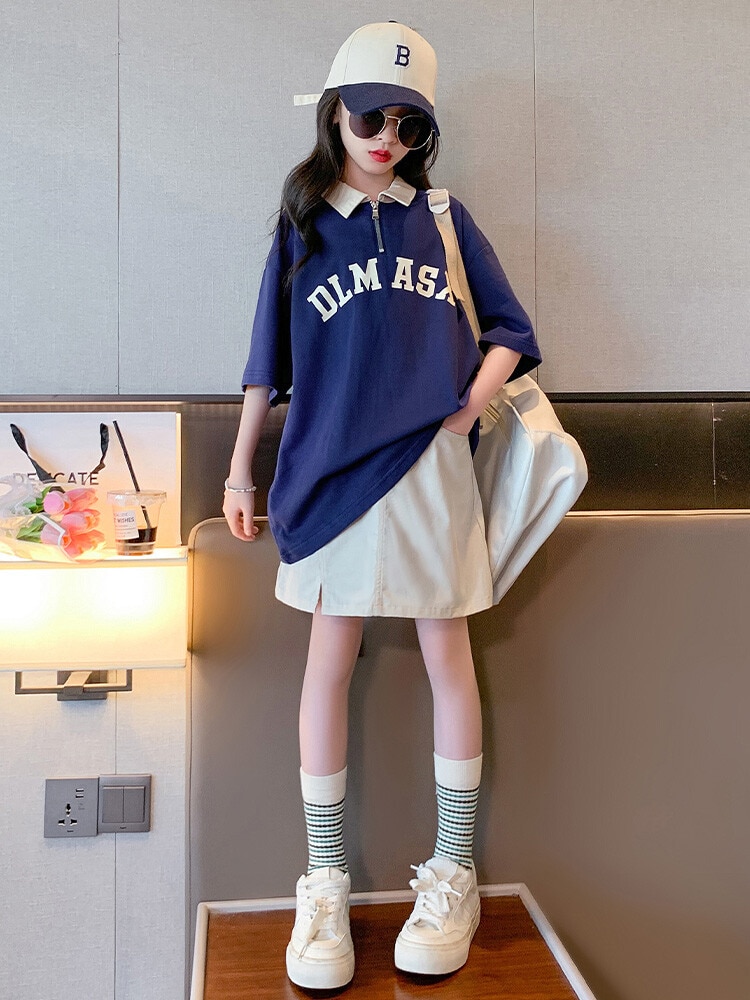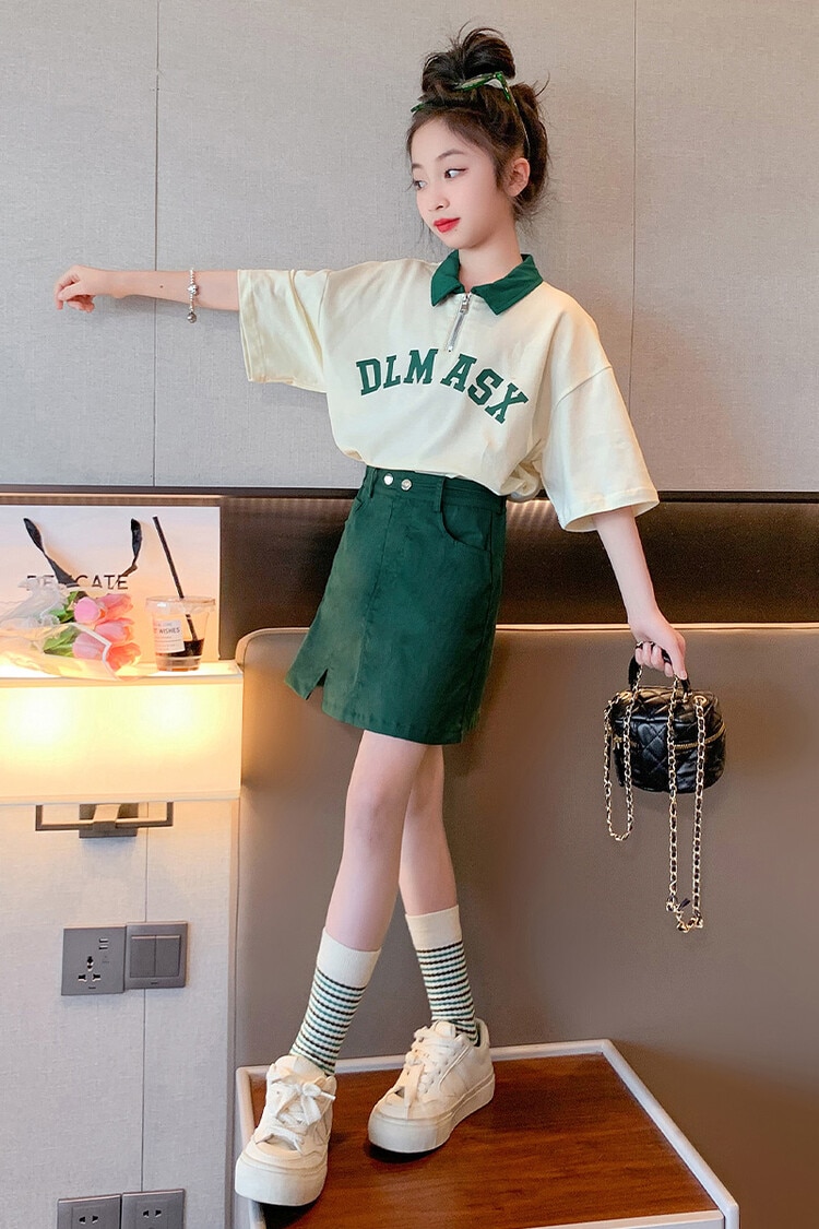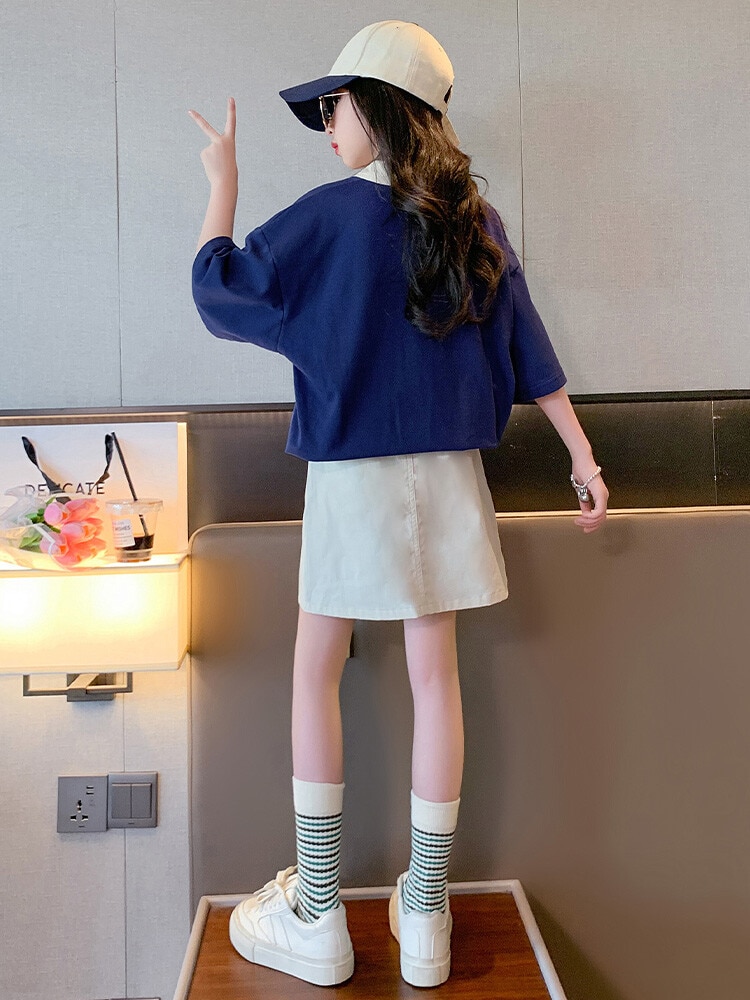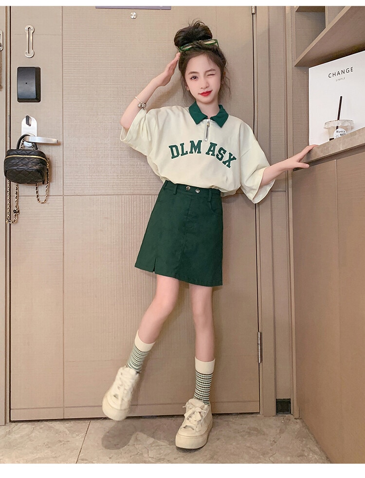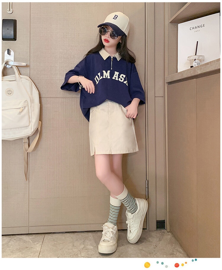 Летний костюм для девочек 2023, детский топ с коротким рукавом, рубашка-поло + юбка, костюм из 2 предметов, детская спортивная одежда, повседневная одежда для девочек