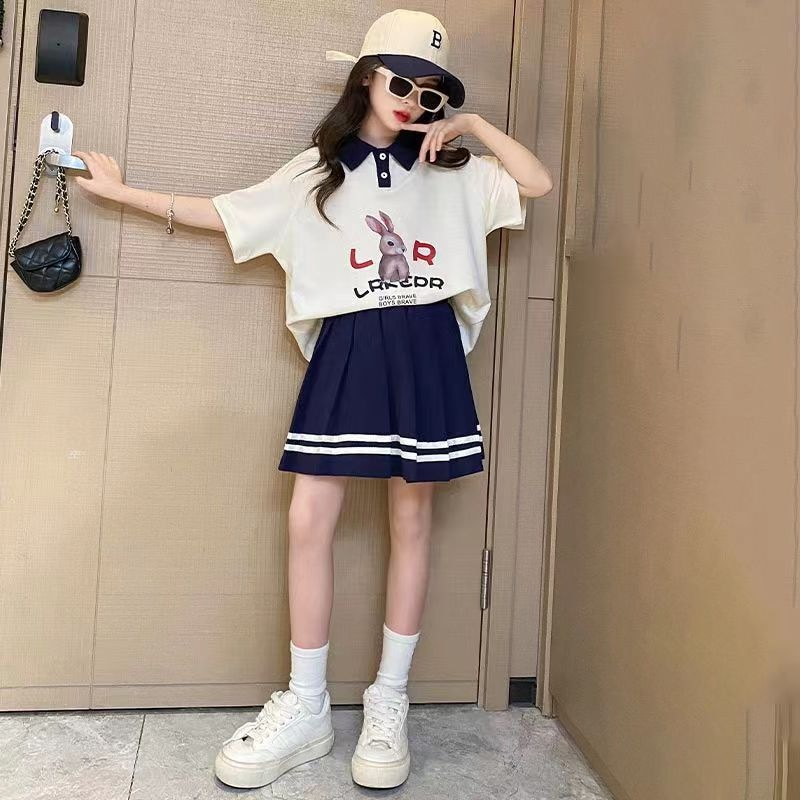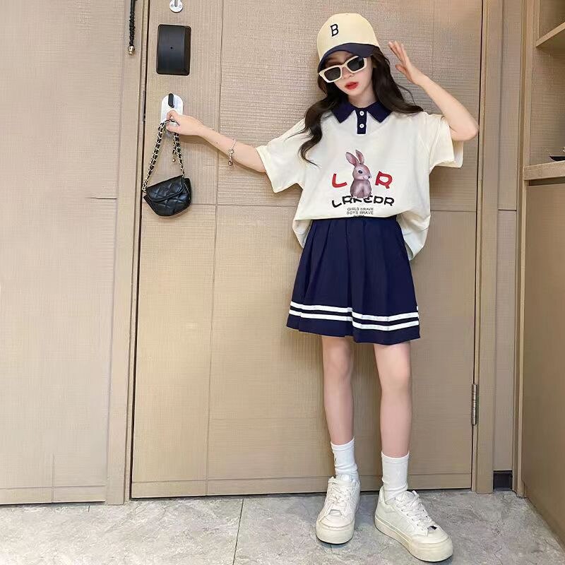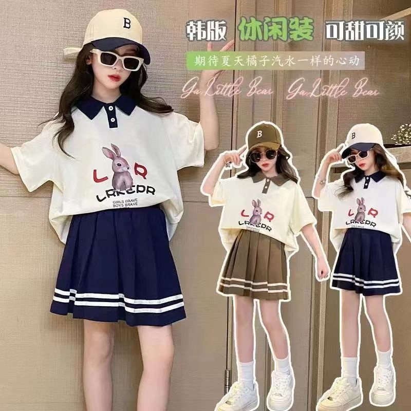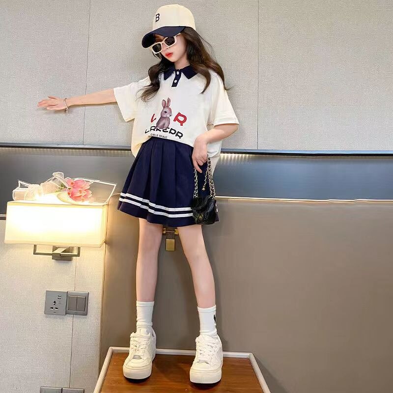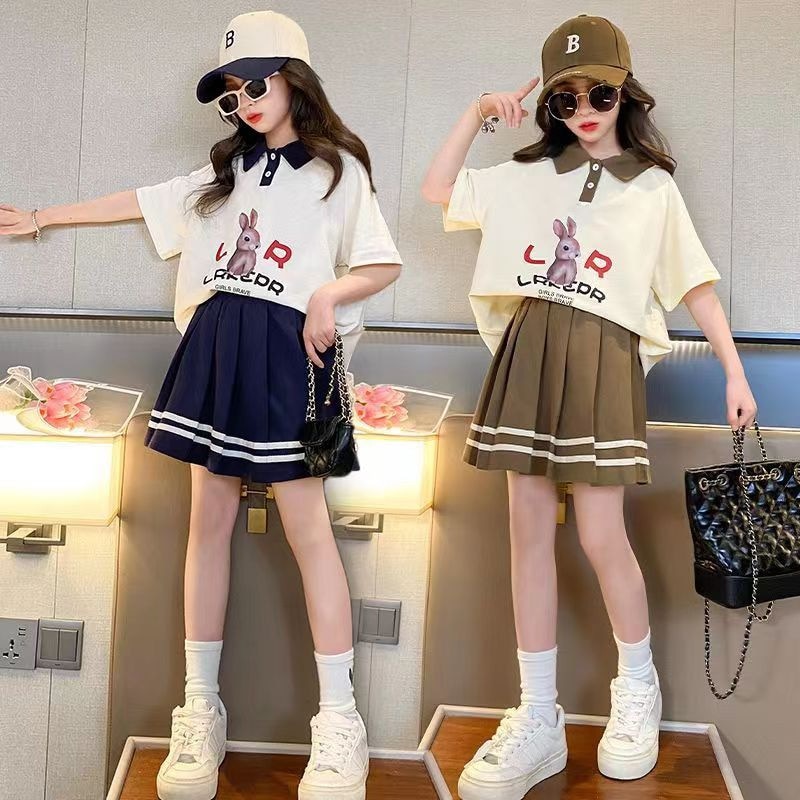 Летний костюм для девочек, детский топ с коротким рукавом и юбка, костюм из 2 предметов, детская спортивная одежда, повседневная одежда для девочек от 4 до 16 лет