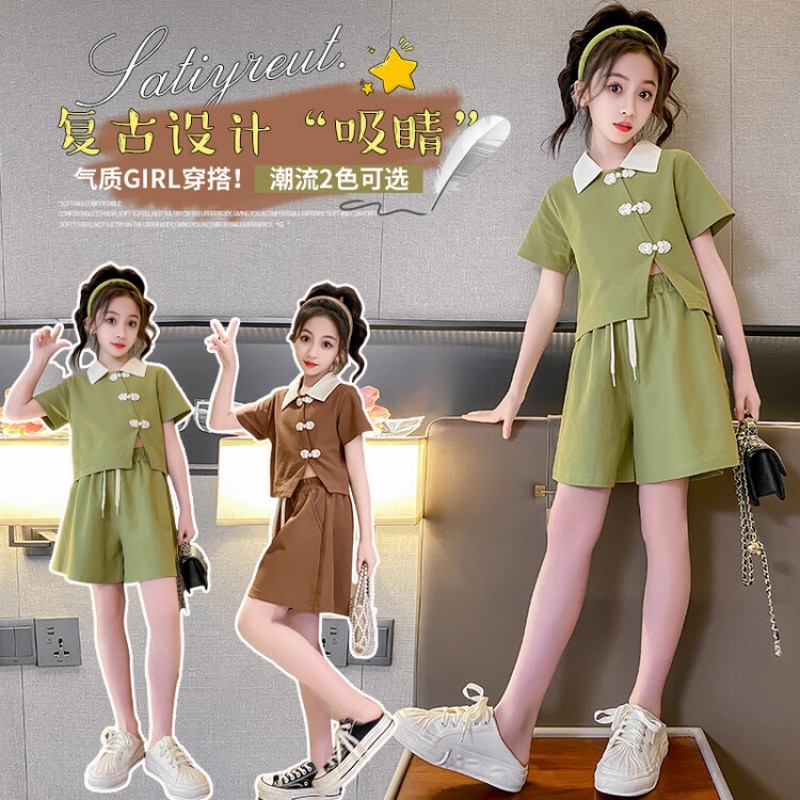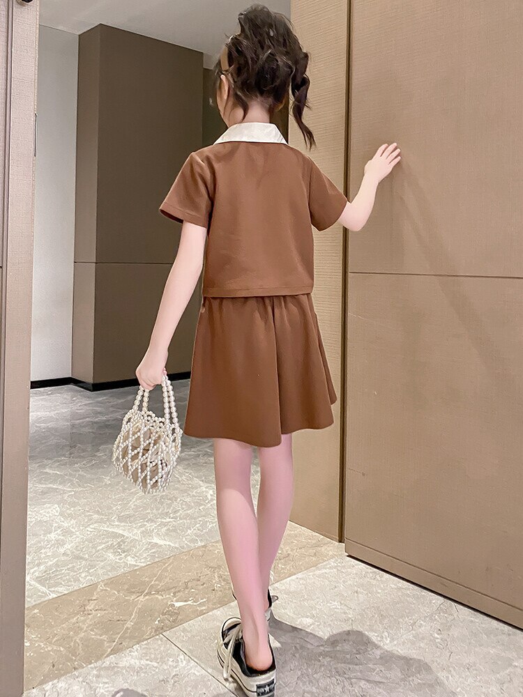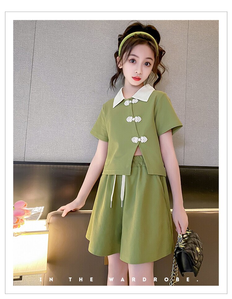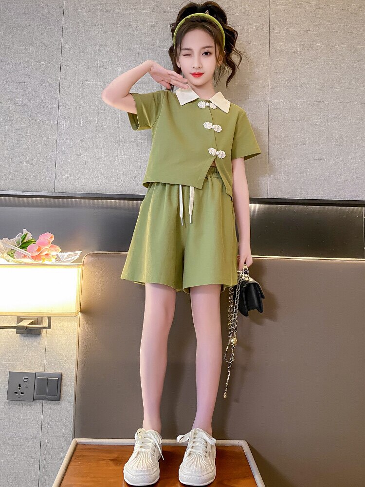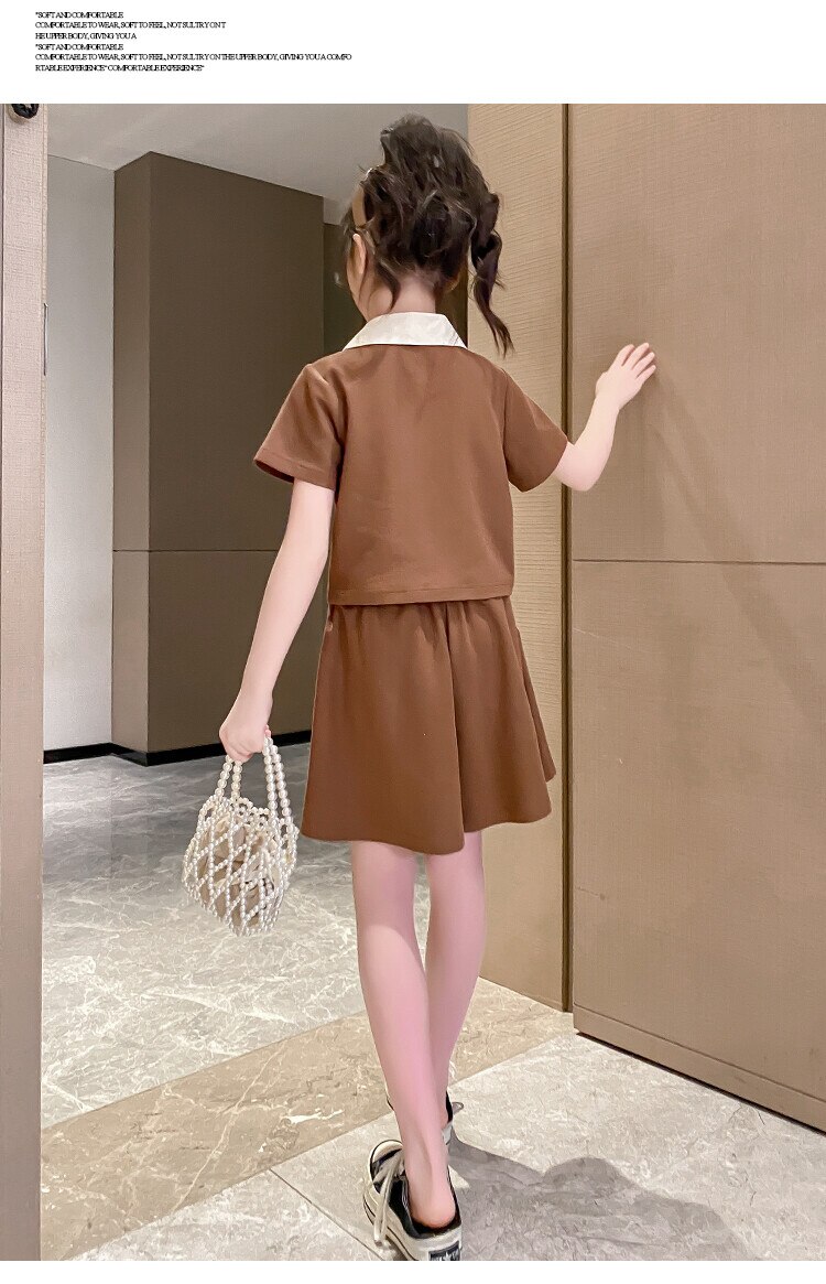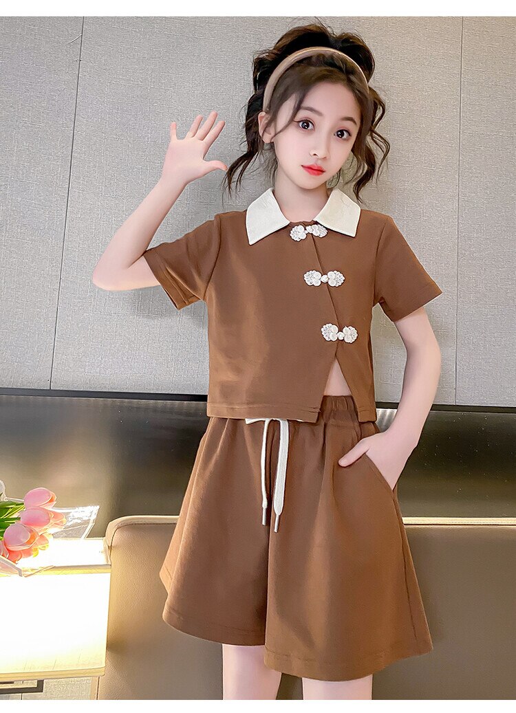 Летний костюм для девочек с коротким рукавом и шортами, 2 предмета, повседневный костюм в стиле преппи в стиле ретро, детская одежда для девочек, Подростковая детская одежда