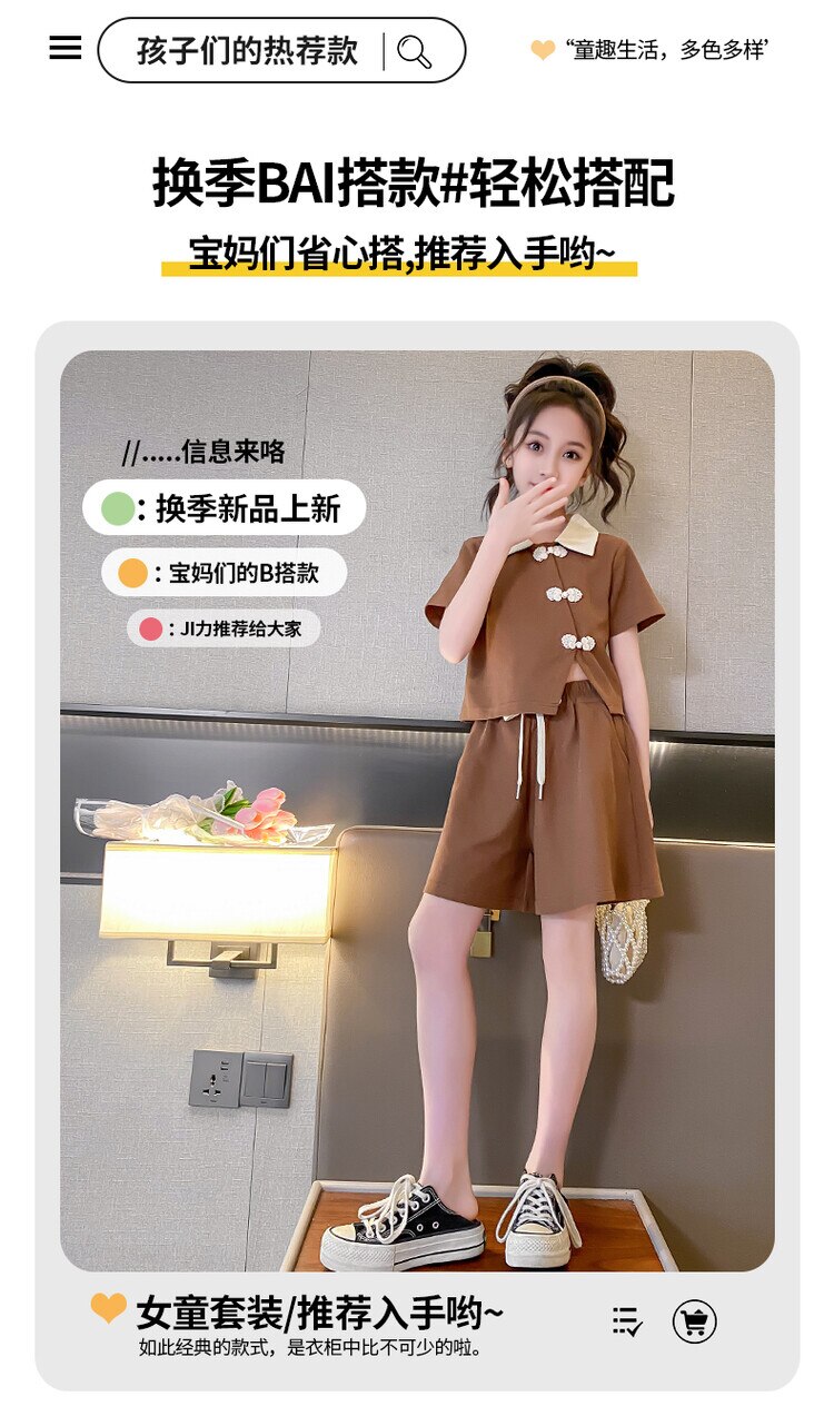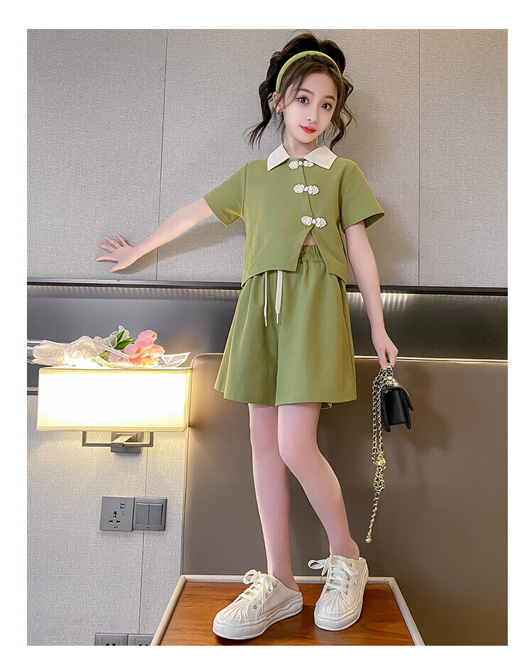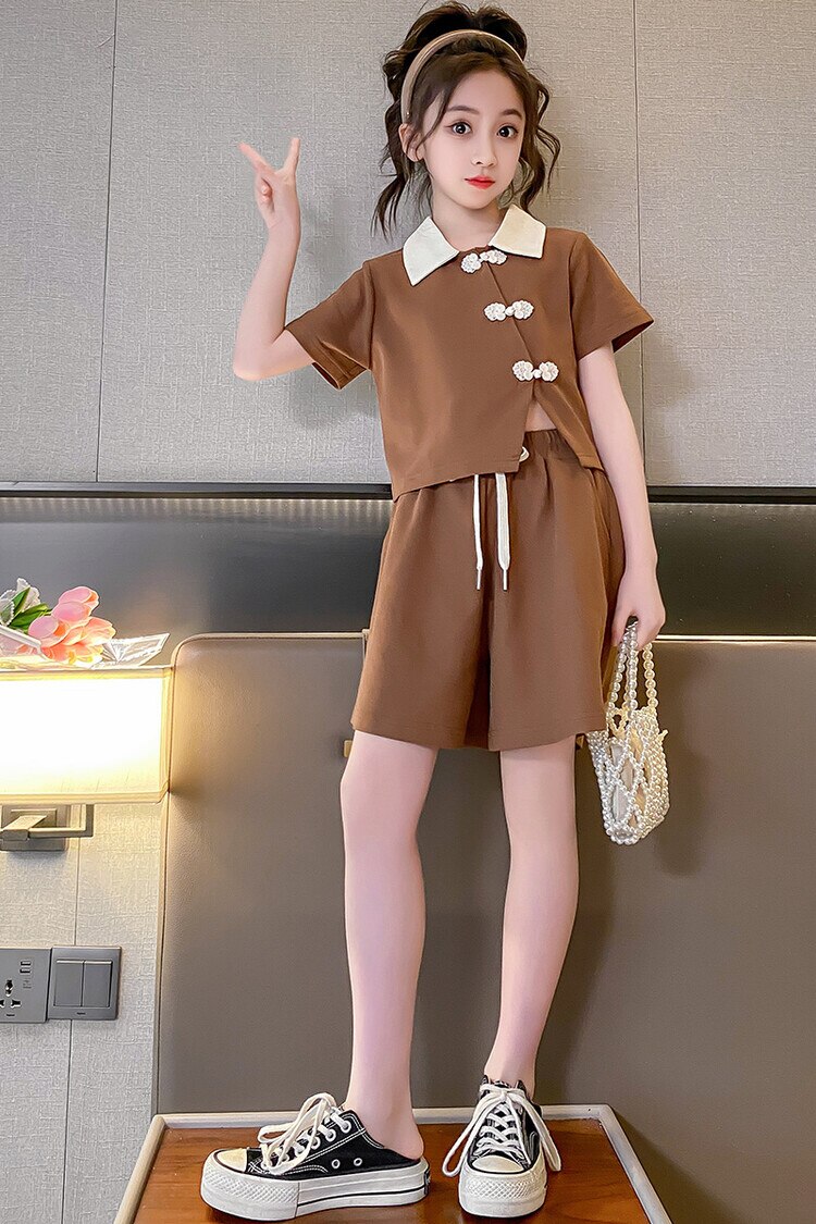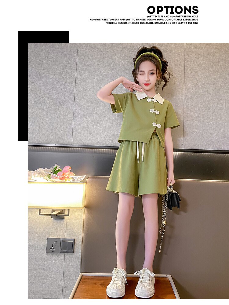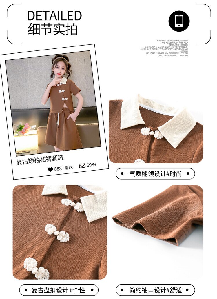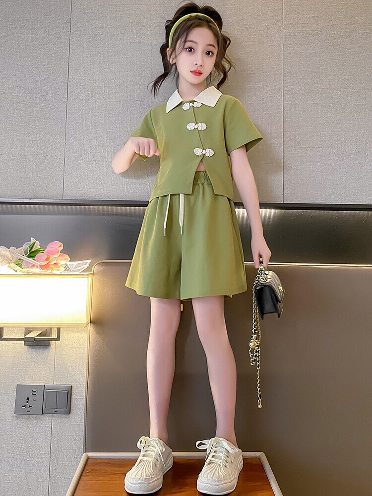 Летний костюм для девочек с коротким рукавом и шортами, 2 предмета, повседневный костюм в стиле преппи в стиле ретро, детская одежда для девочек, Подростковая детская одежда