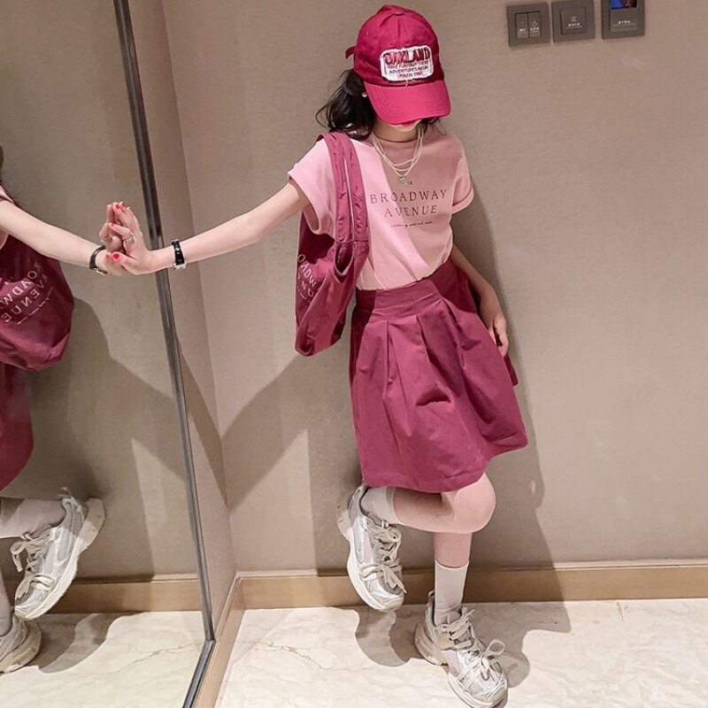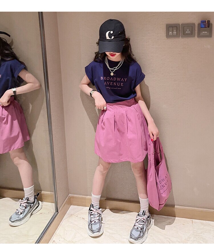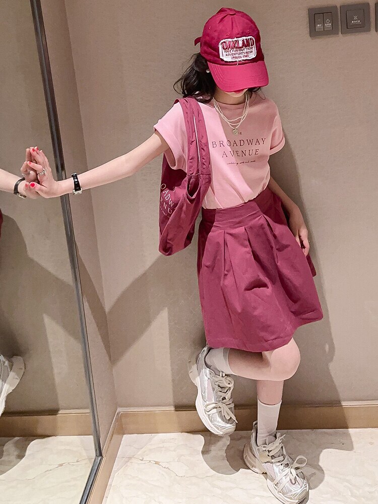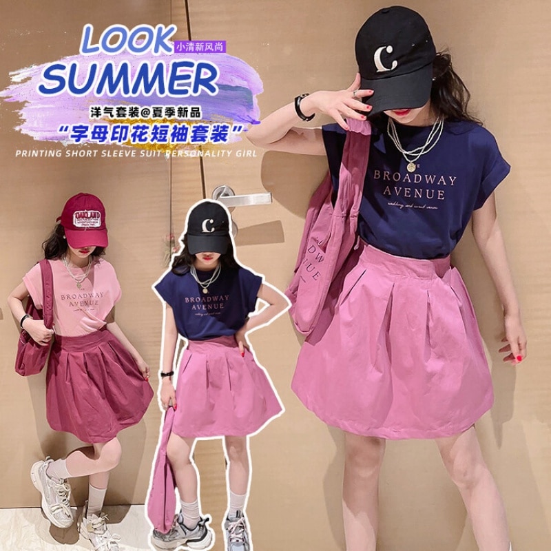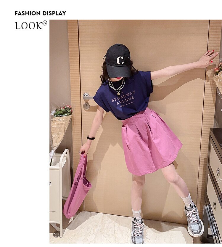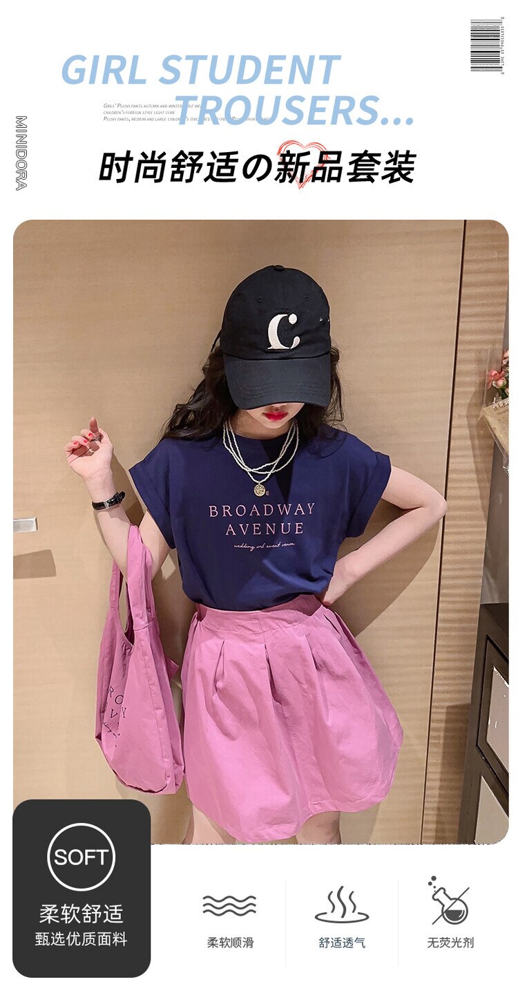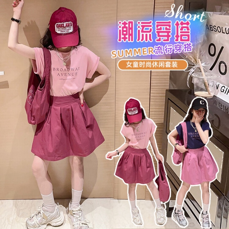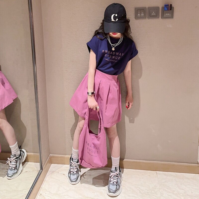 Летний костюм для девочек, шорты с коротким рукавом, комплект из 2 предметов, повседневный СВОБОДНЫЙ Модный костюм в студенческом стиле, детская одежда для девочек, подростков