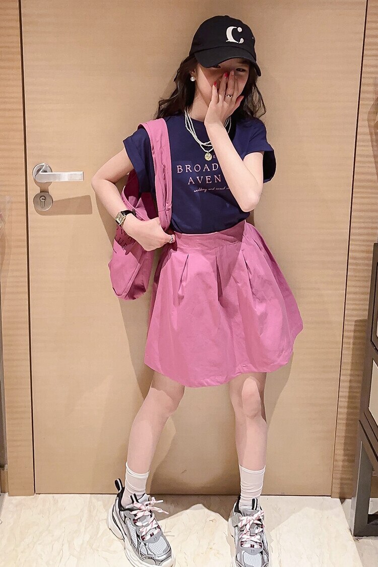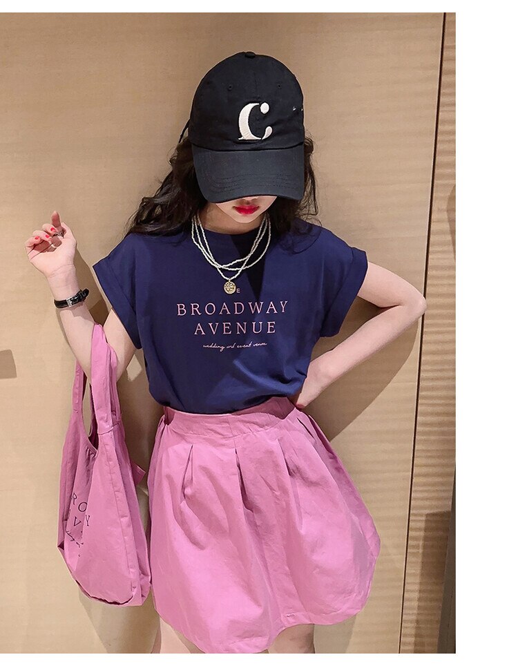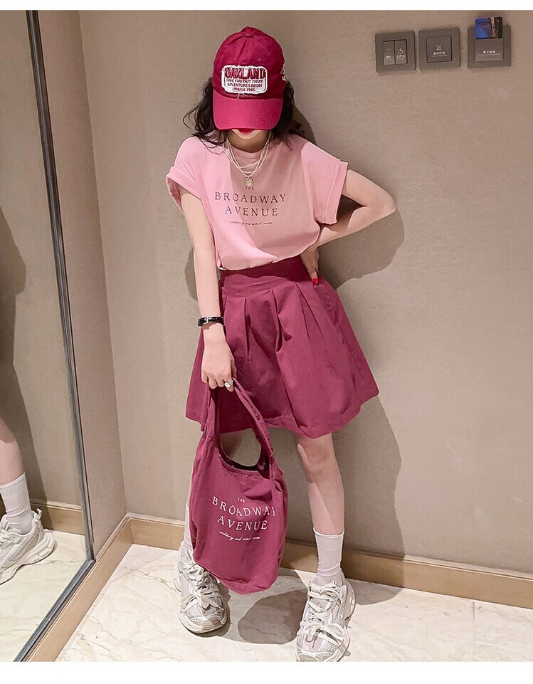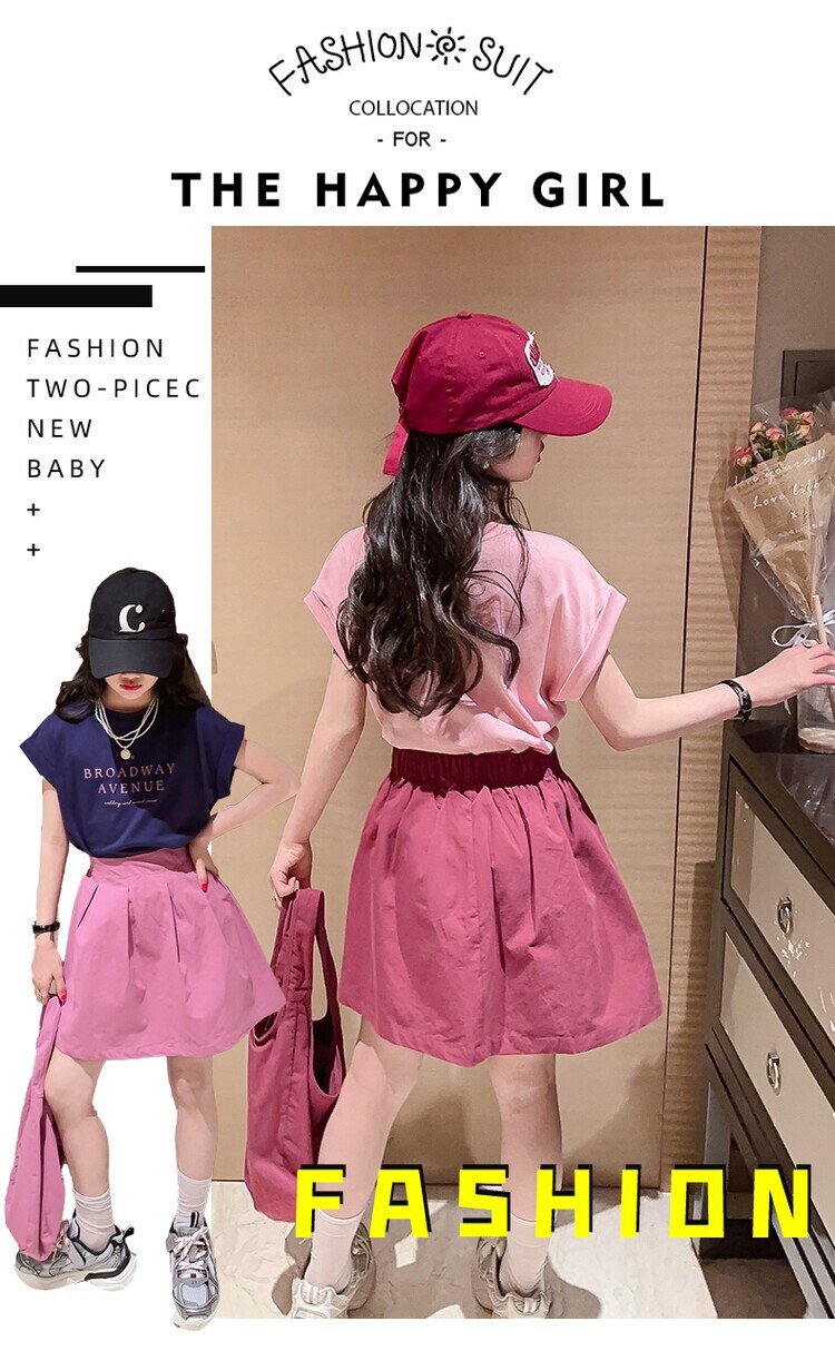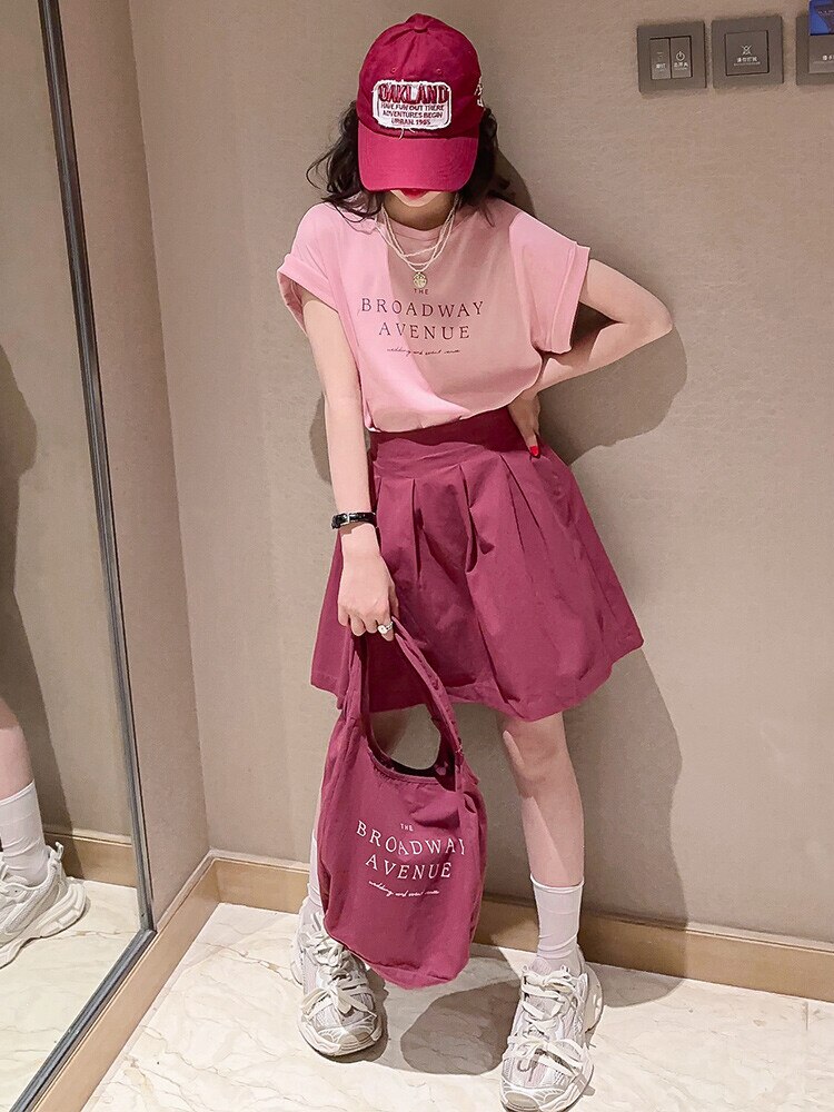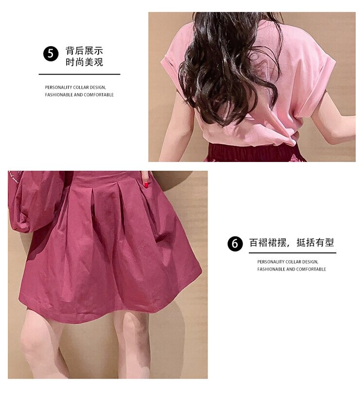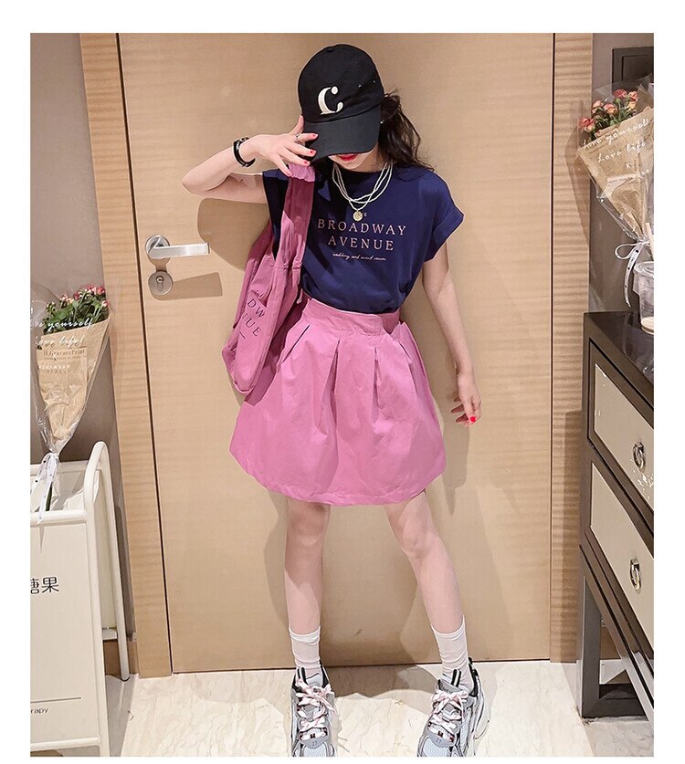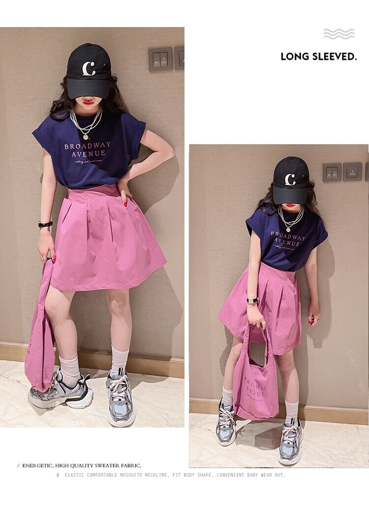 Летний костюм для девочек, шорты с коротким рукавом, комплект из 2 предметов, повседневный СВОБОДНЫЙ Модный костюм в студенческом стиле, детская одежда для девочек, подростков