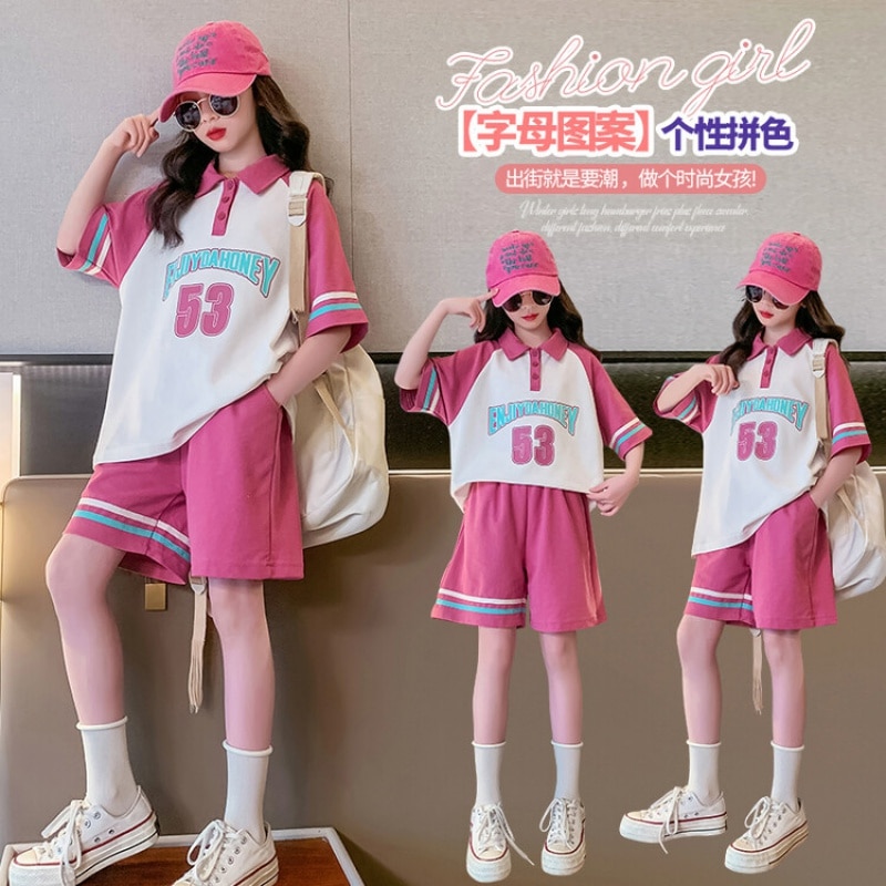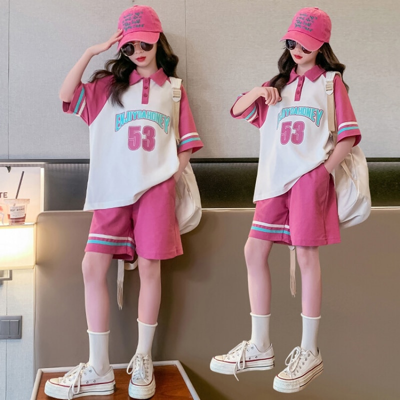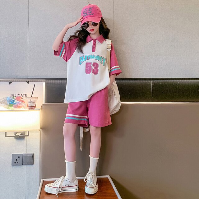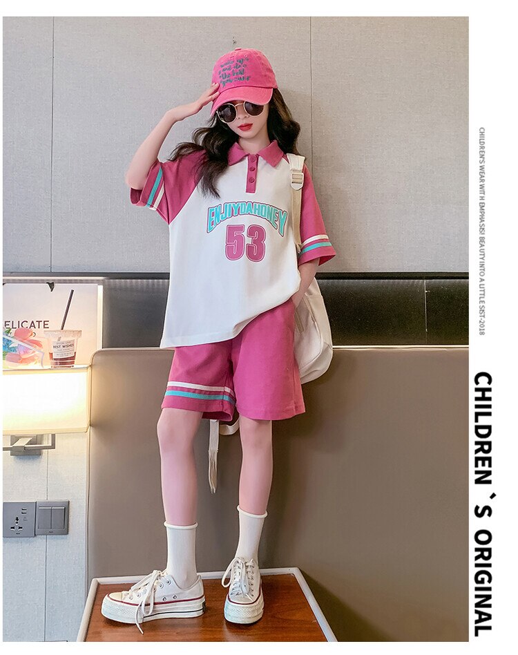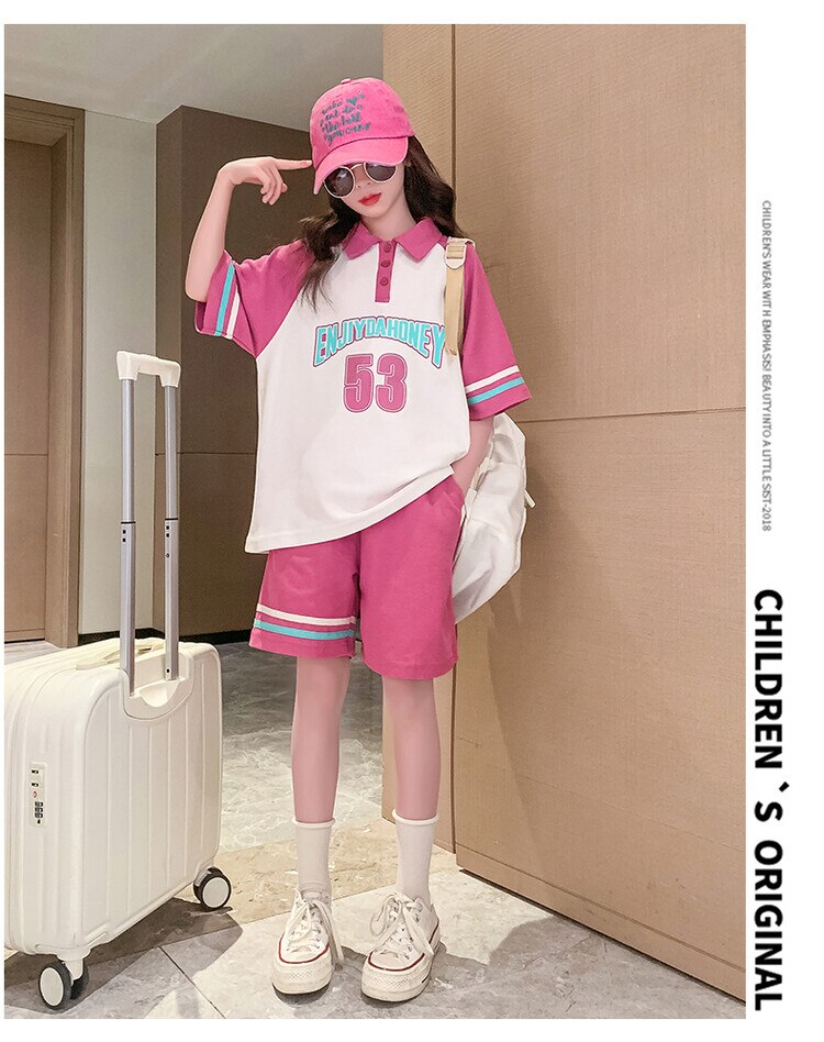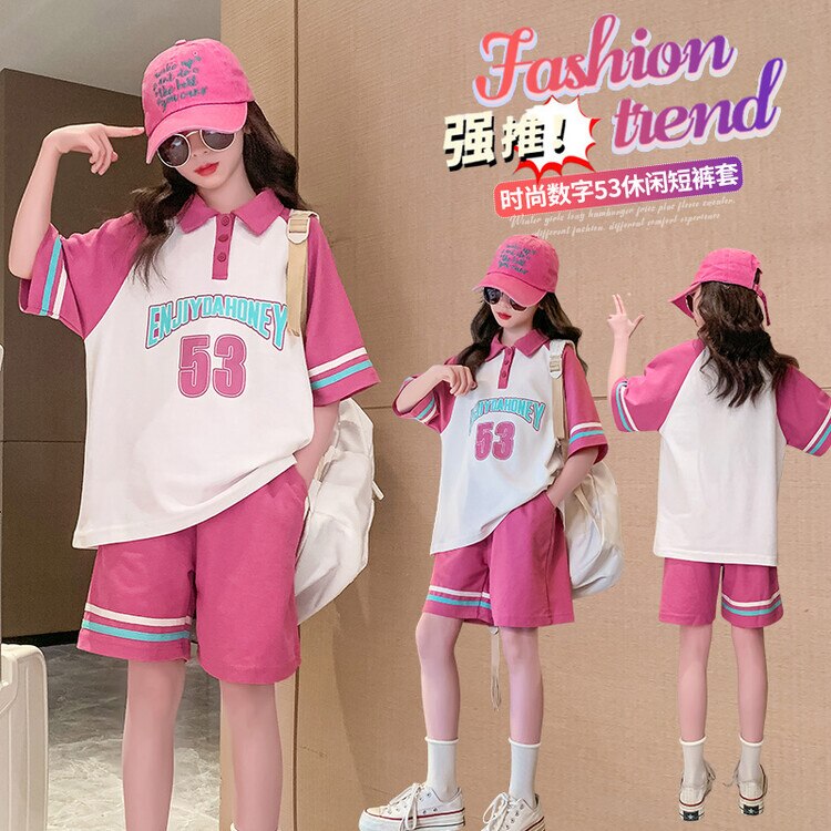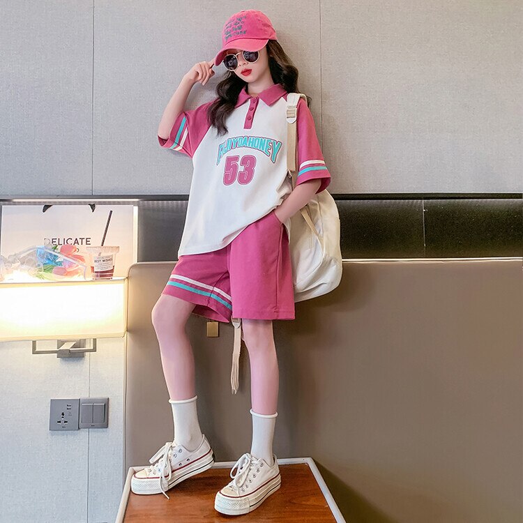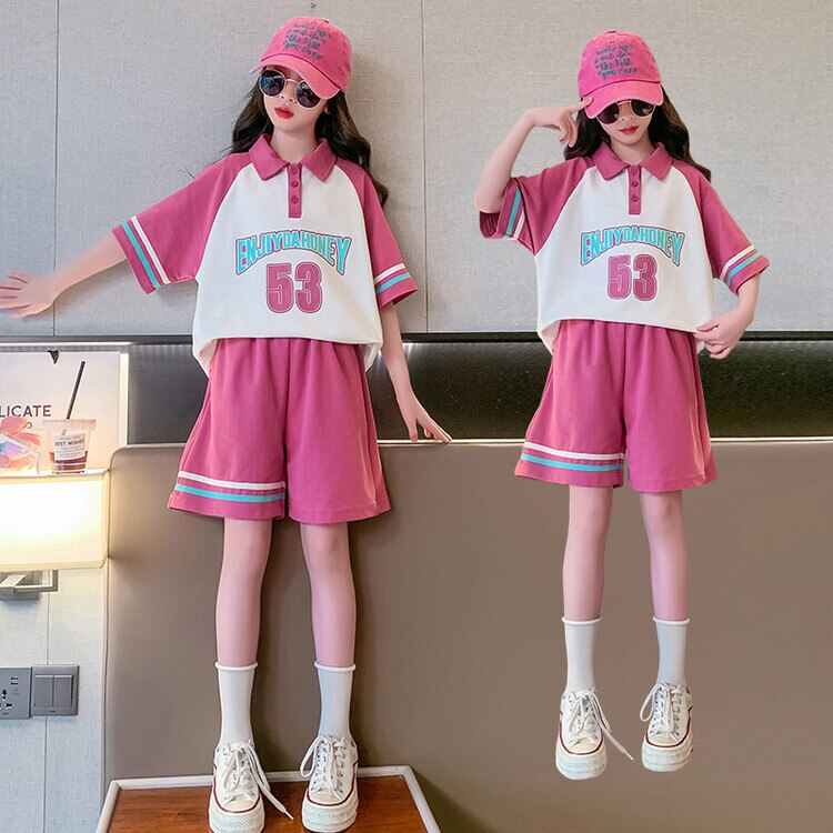 Летний костюм для девочек, шорты с коротким рукавом, комплект из 2 предметов, повседневный СВОБОДНЫЙ Модный костюм в студенческом стиле, детская одежда для девочек, подростков