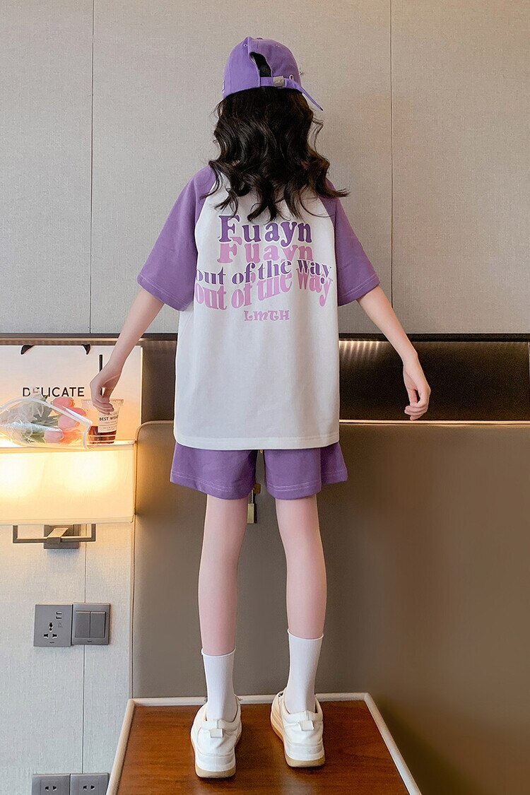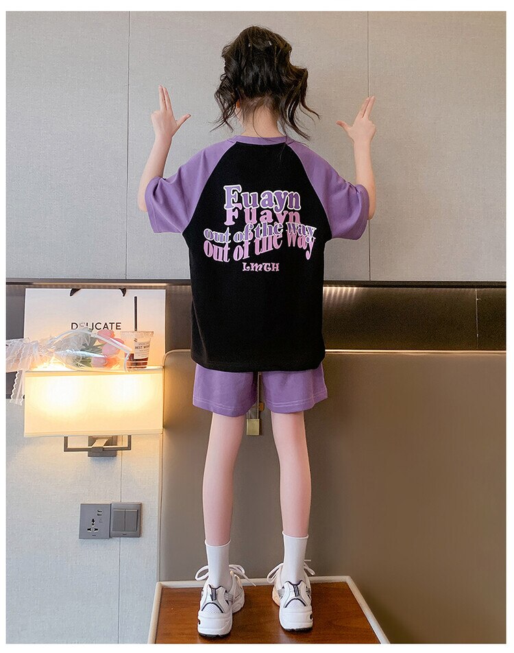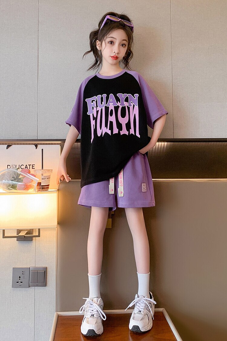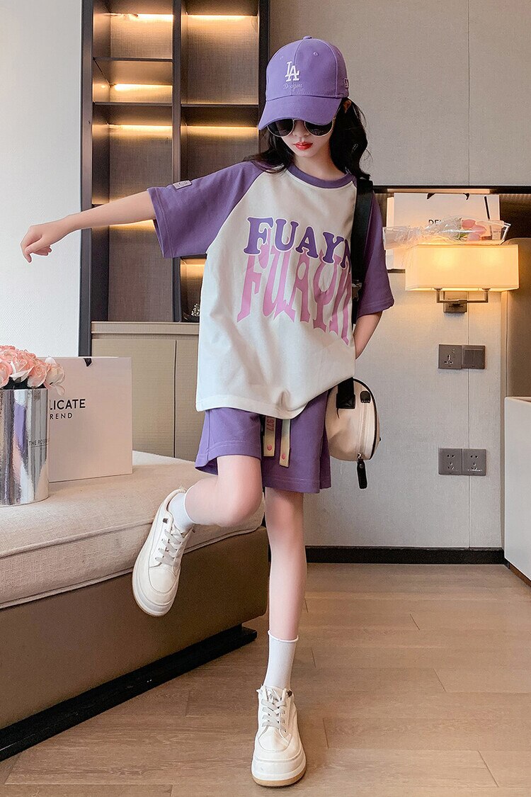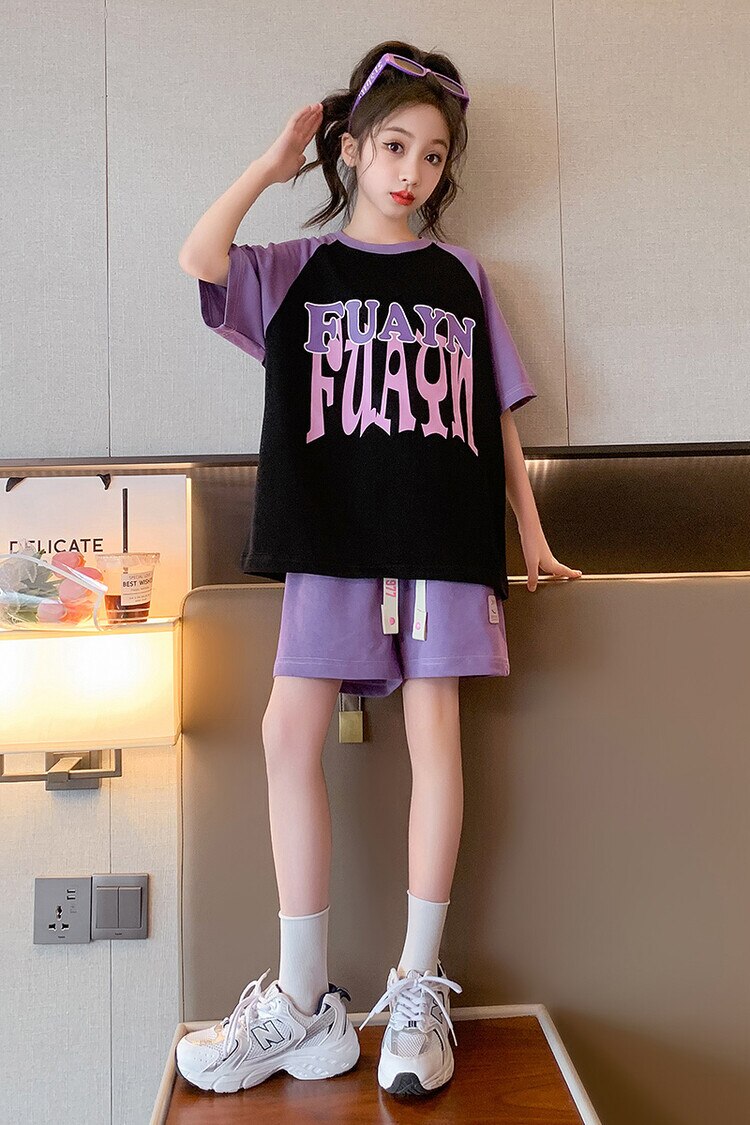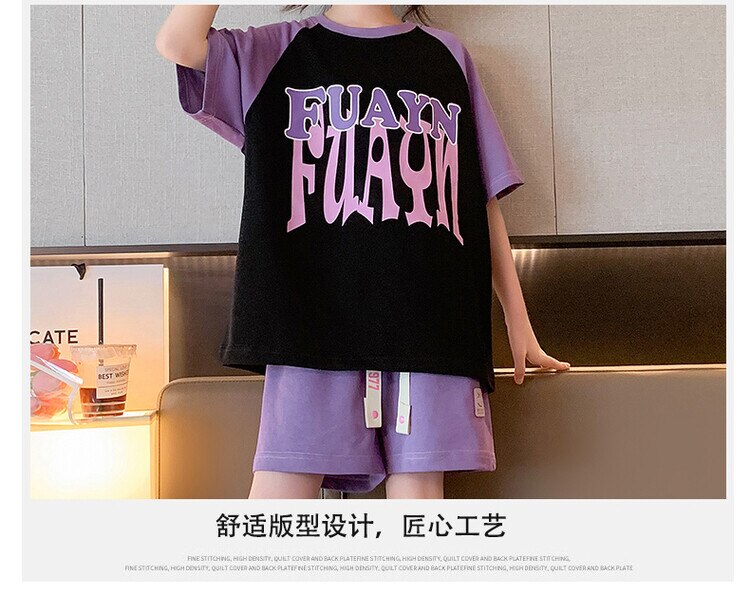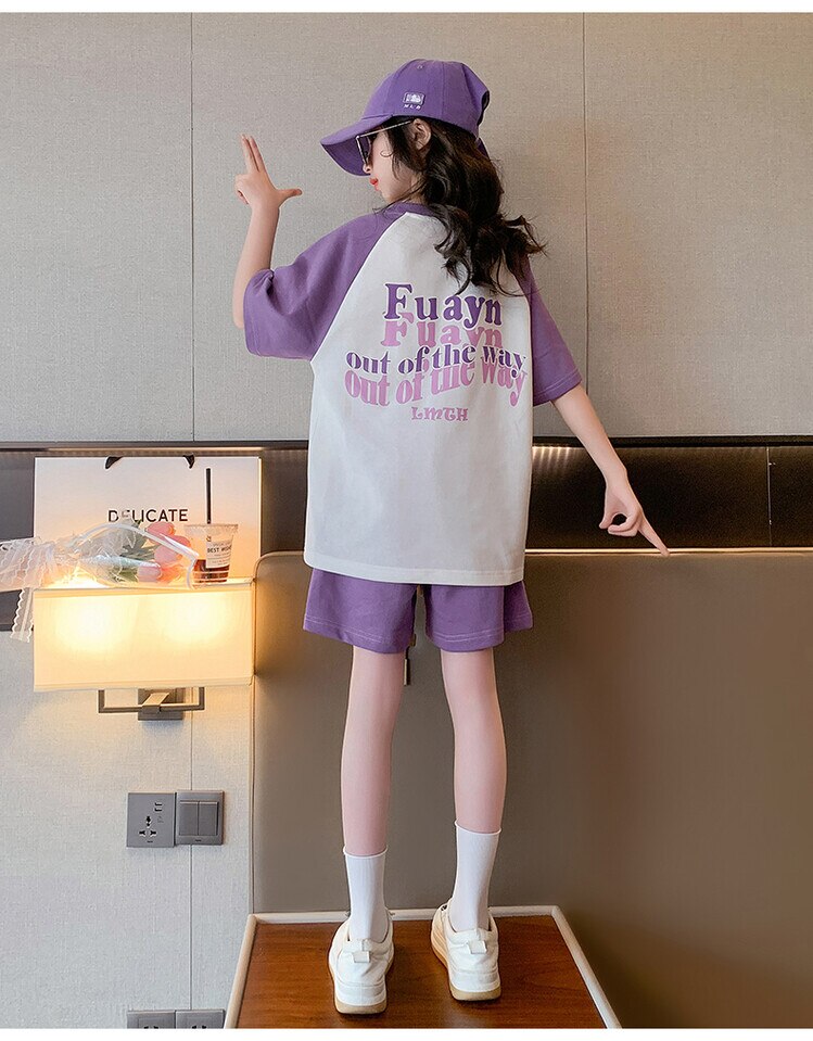 Летний костюм для девочек, шорты с коротким рукавом, комплект из 2 предметов, повседневный СВОБОДНЫЙ Модный костюм в студенческом стиле, детская одежда для девочек, подростков