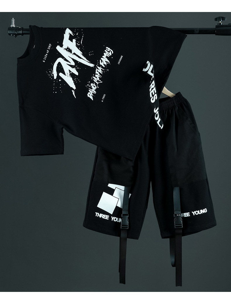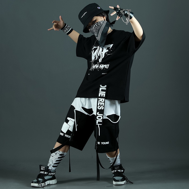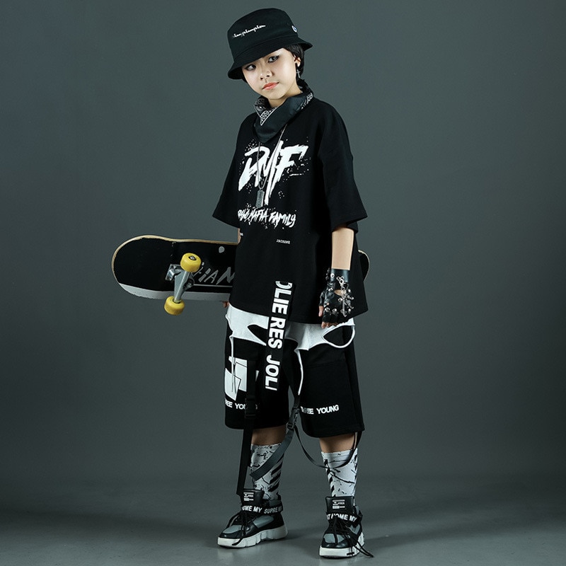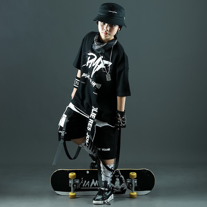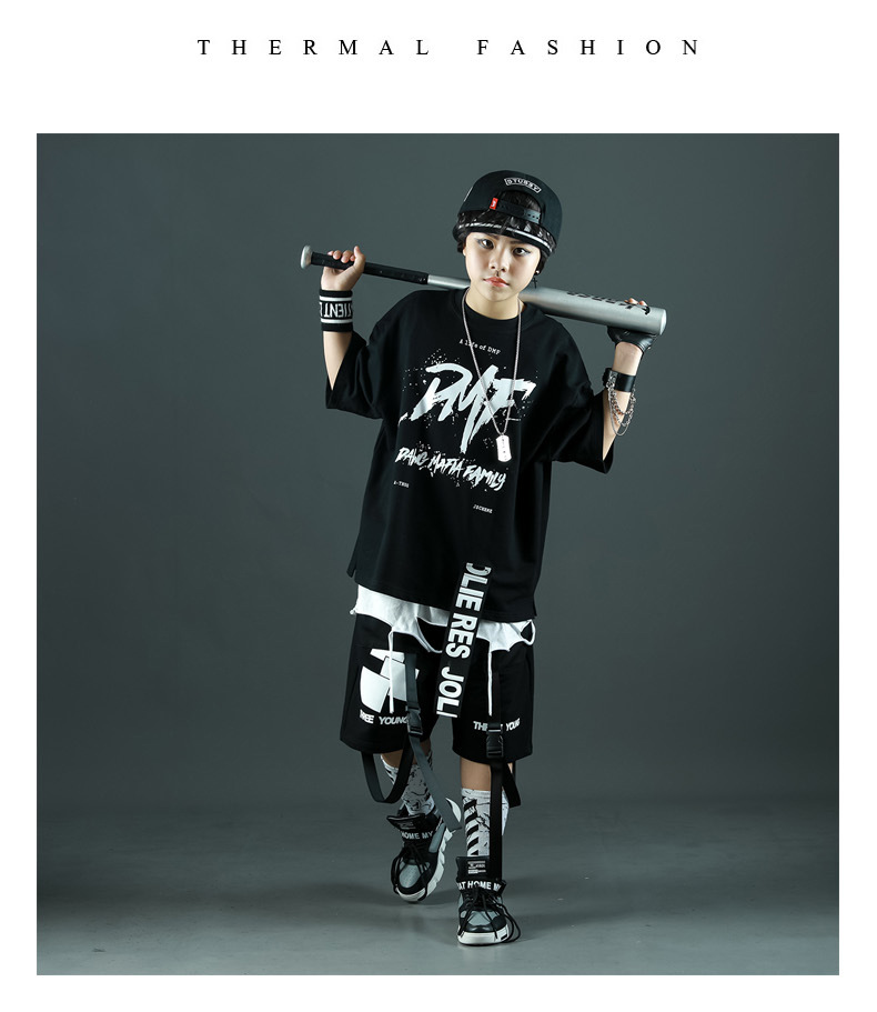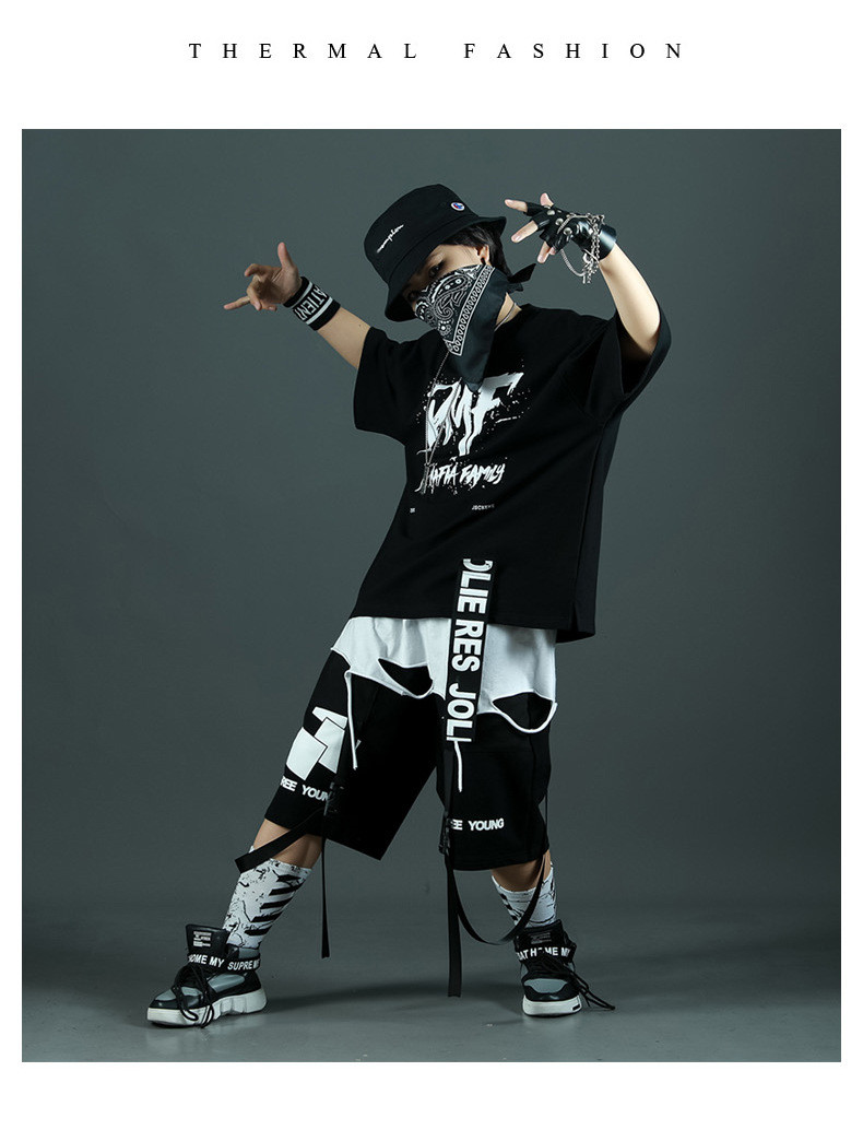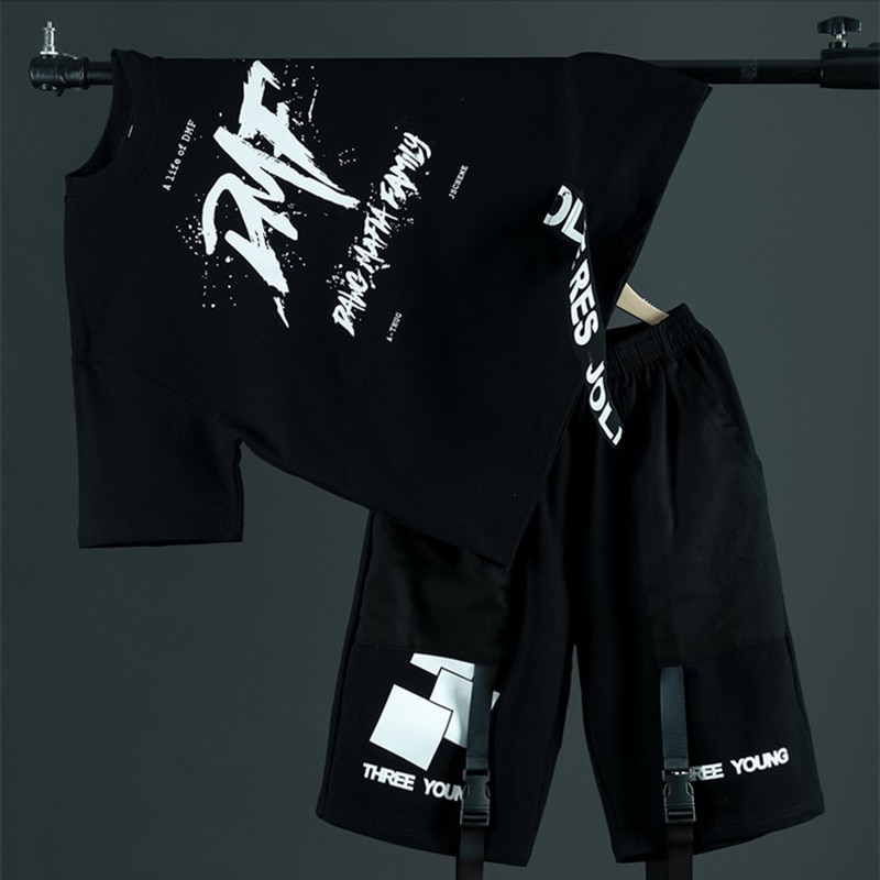 Летний костюм для мальчиков в стиле хип-хоп, черная футболка с коротким рукавом и шорты, комплект из 2 предметов, детская свободная Спортивная одежда для подростков 4, 6, 8, 10, 12, 14 лет