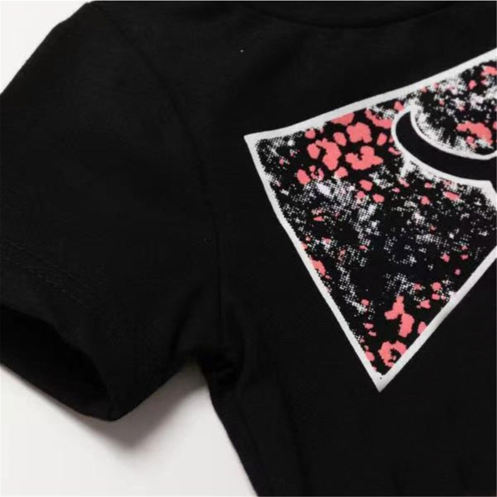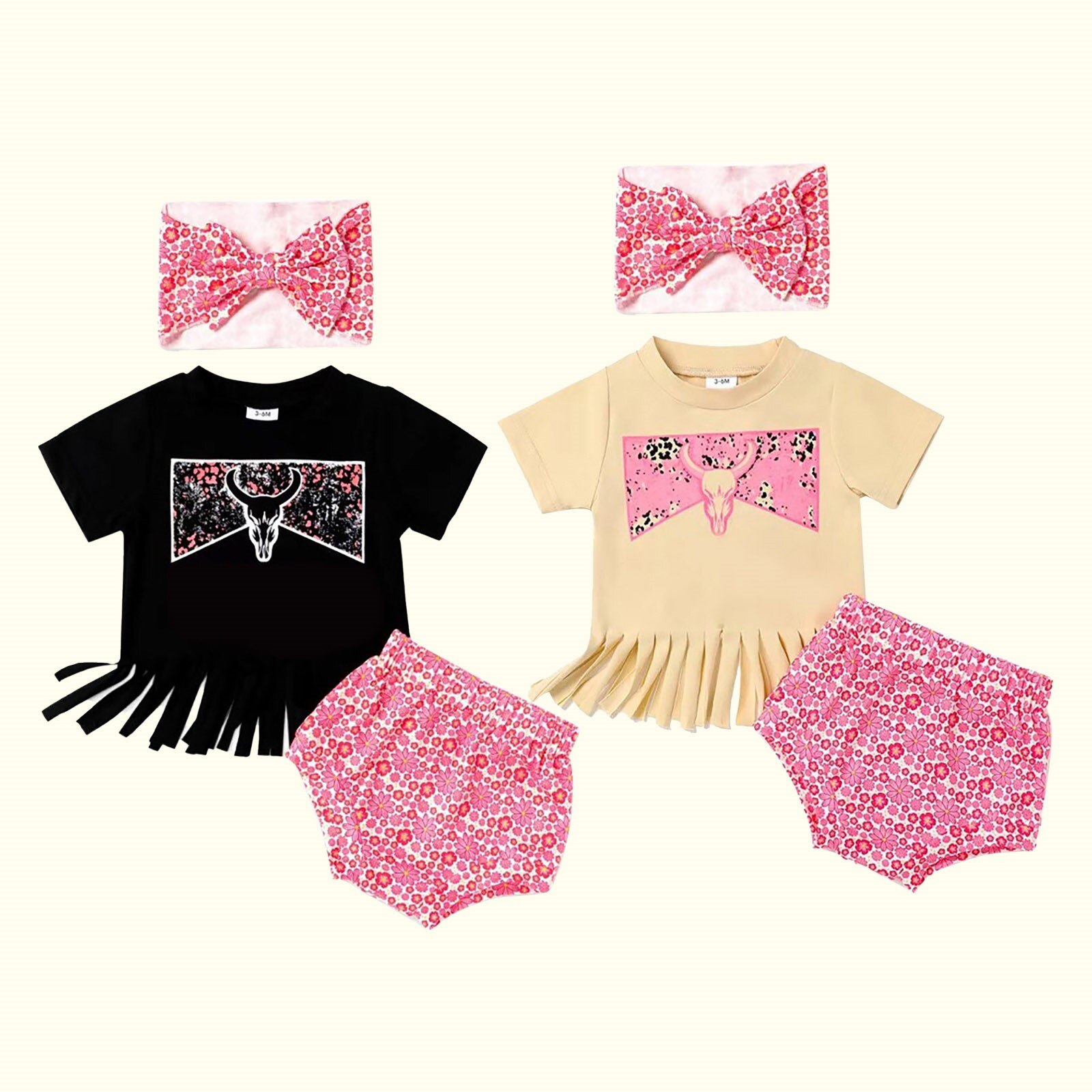 Младенческие девочки летний костюм Письмо коровья голова печати кисточкой футболка измельченные шорты розовый ободок костюм