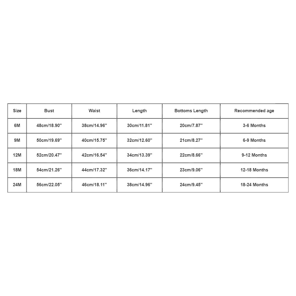 Размер: 24M Бюст: 56 см/22,05 дюйма Талия: 46 см/18,11 дюйма Длина: 38 см/14,96 дюйма Длина низа: 24 см/9,45 дюйма Рекомендуемый возраст: 18-24 месяца
