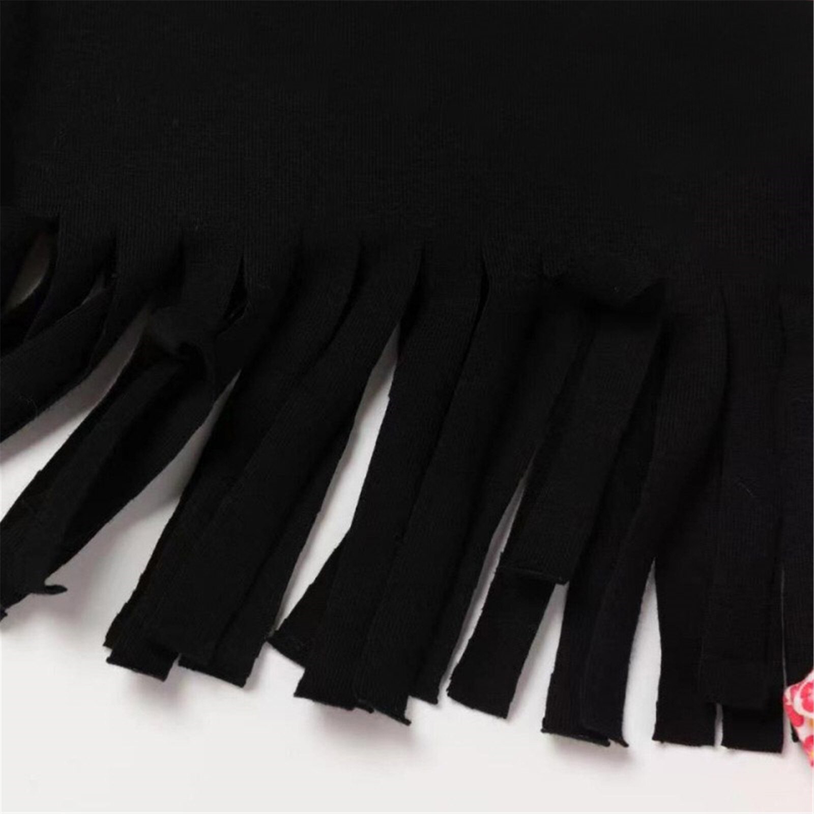 Летний костюм для маленьких девочек, футболка с надписью и принтом головы коровы и кисточками, измельченные шорты, розовая фотография