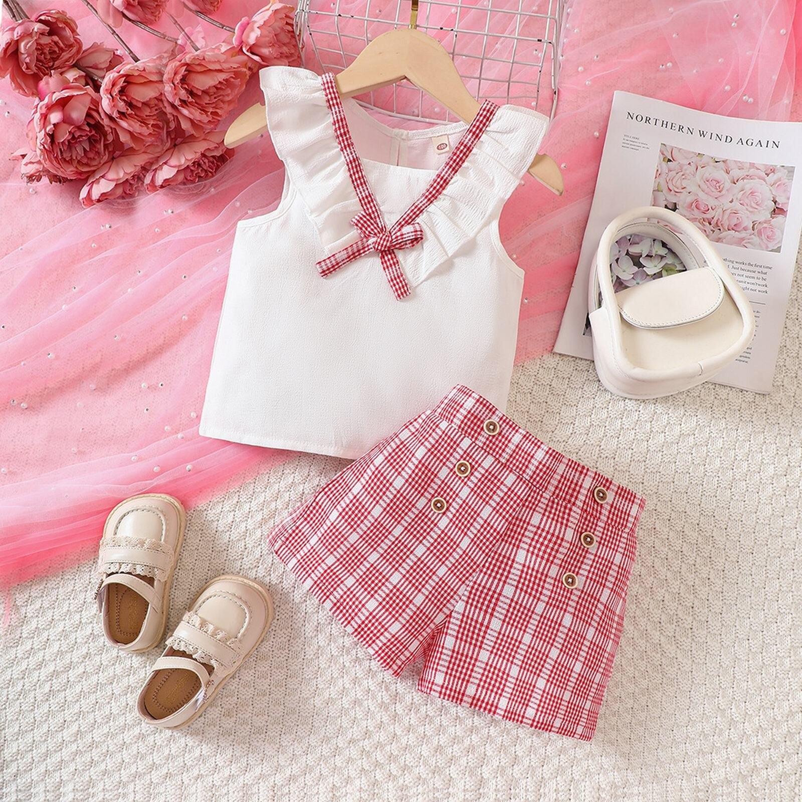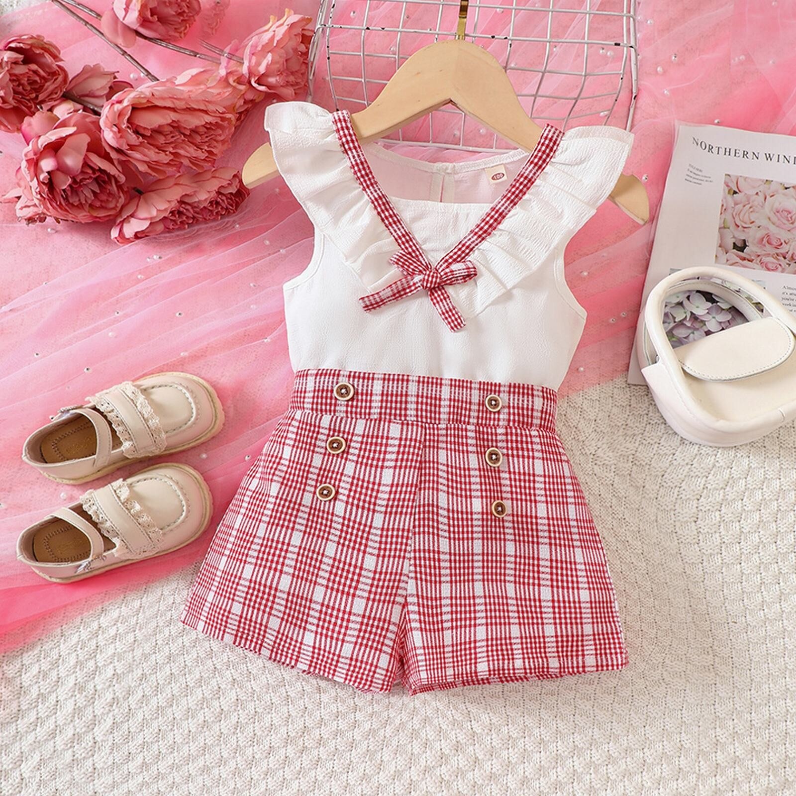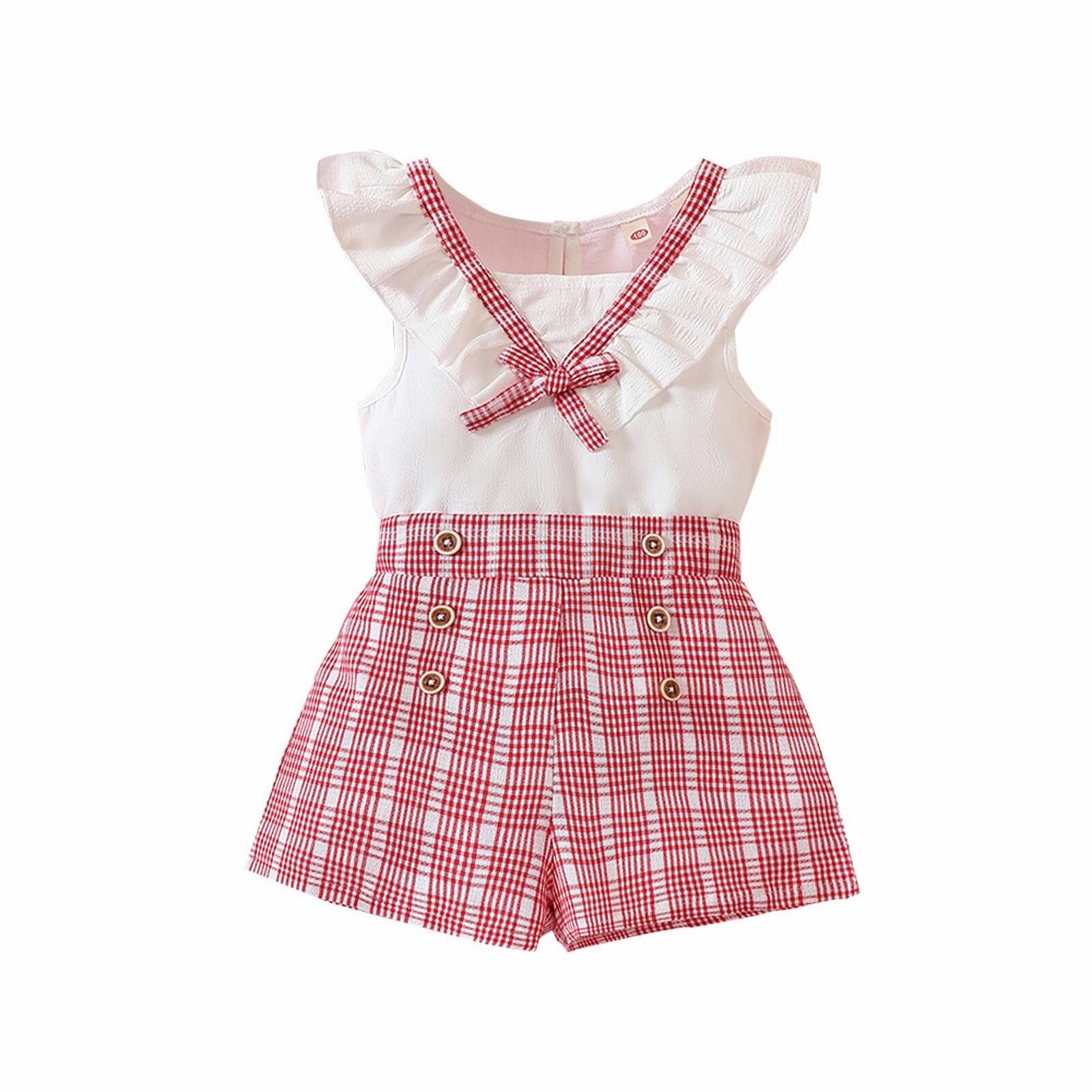 Летний кружевной клетчатый топ и шорты для девочек подходит для детей от 2 до 7 лет.