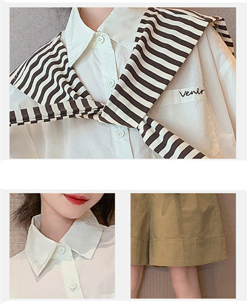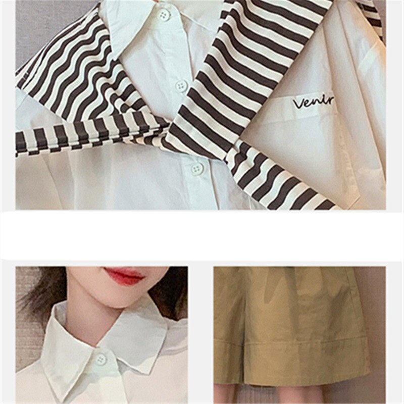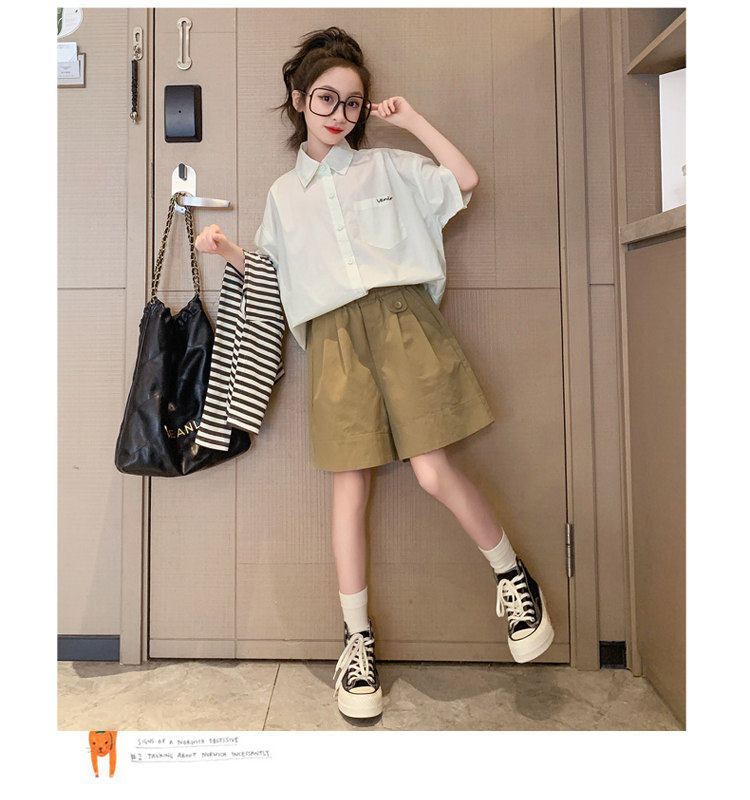 Летний Модный комплект одежды для девочек, новая полосатая рубашка-палантин + шорты, комплект из двух предметов, хлопковый повседневный костюм, Корея для детей