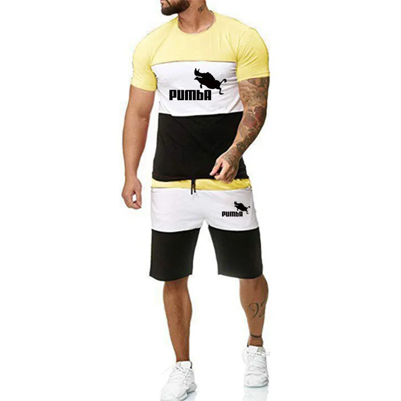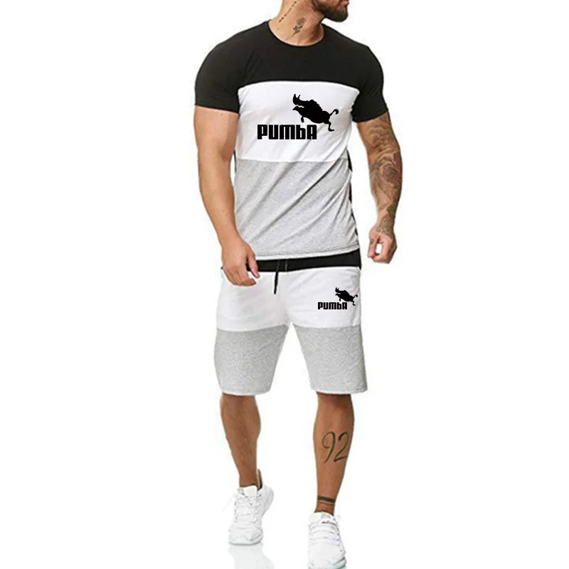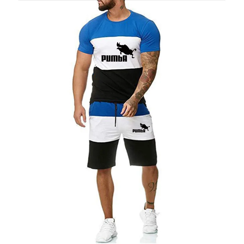 Летний мужской спортивный костюм, футболка, спортивные шорты, полосатая футболка, одежда, классический мужской повседневный брендовый комплект для бега с коротким рукавом