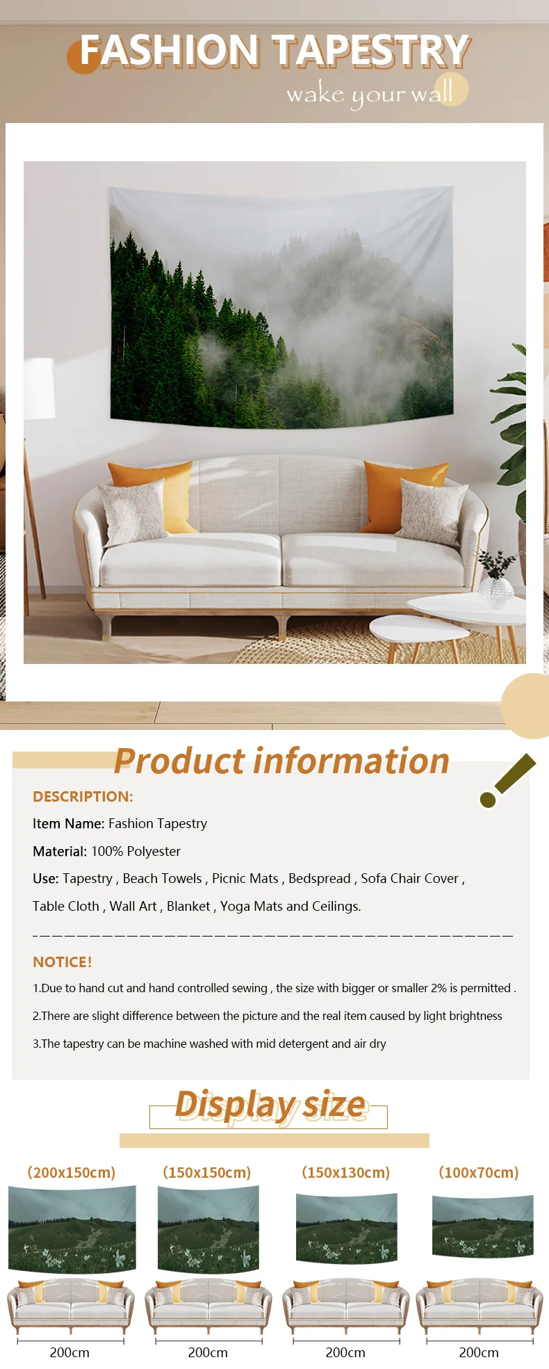 Размер: 100x70 см, 150x100 см, 150x130 см, 150x150 см, 150x200 см, 150x230 см