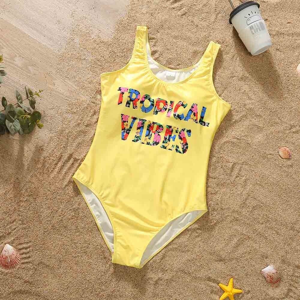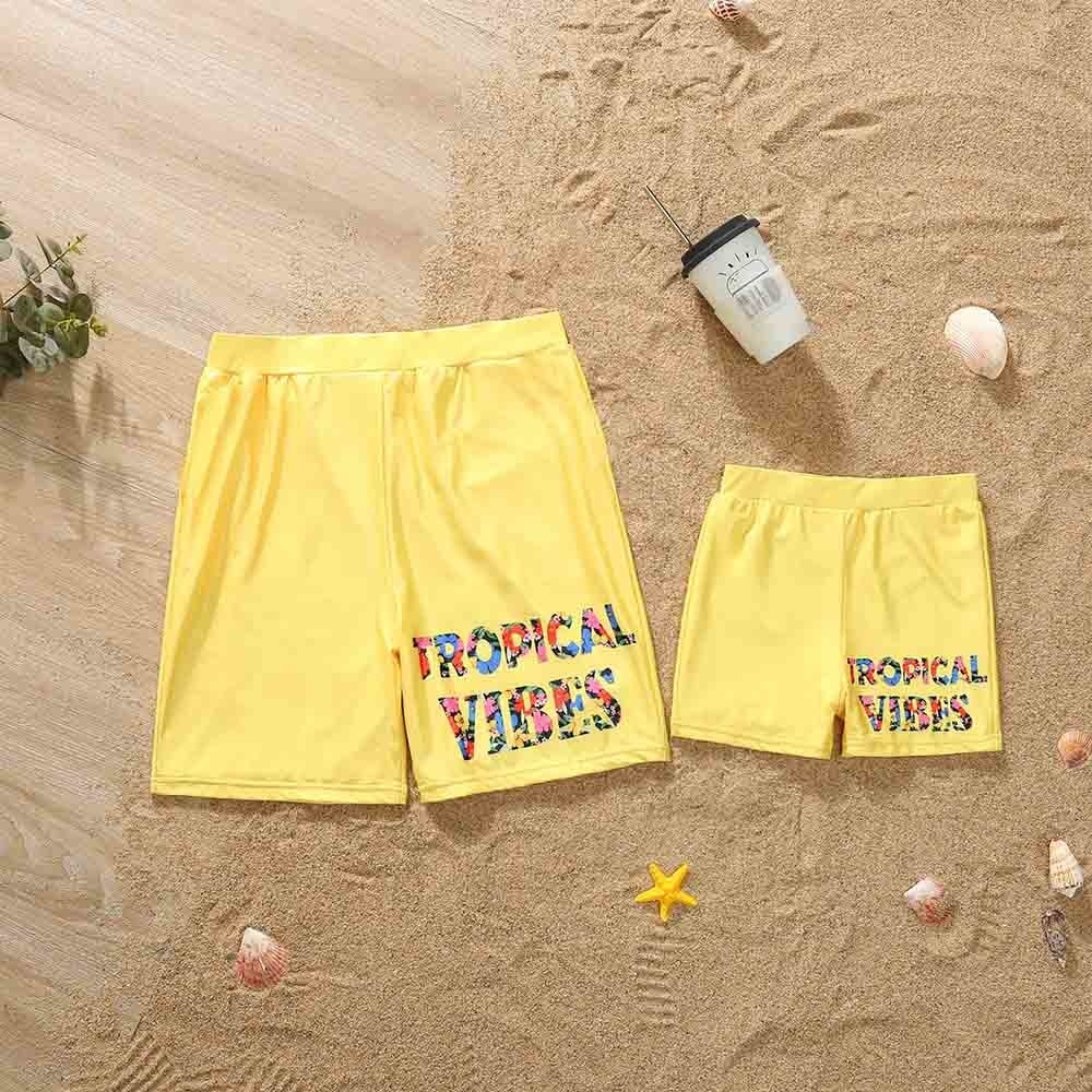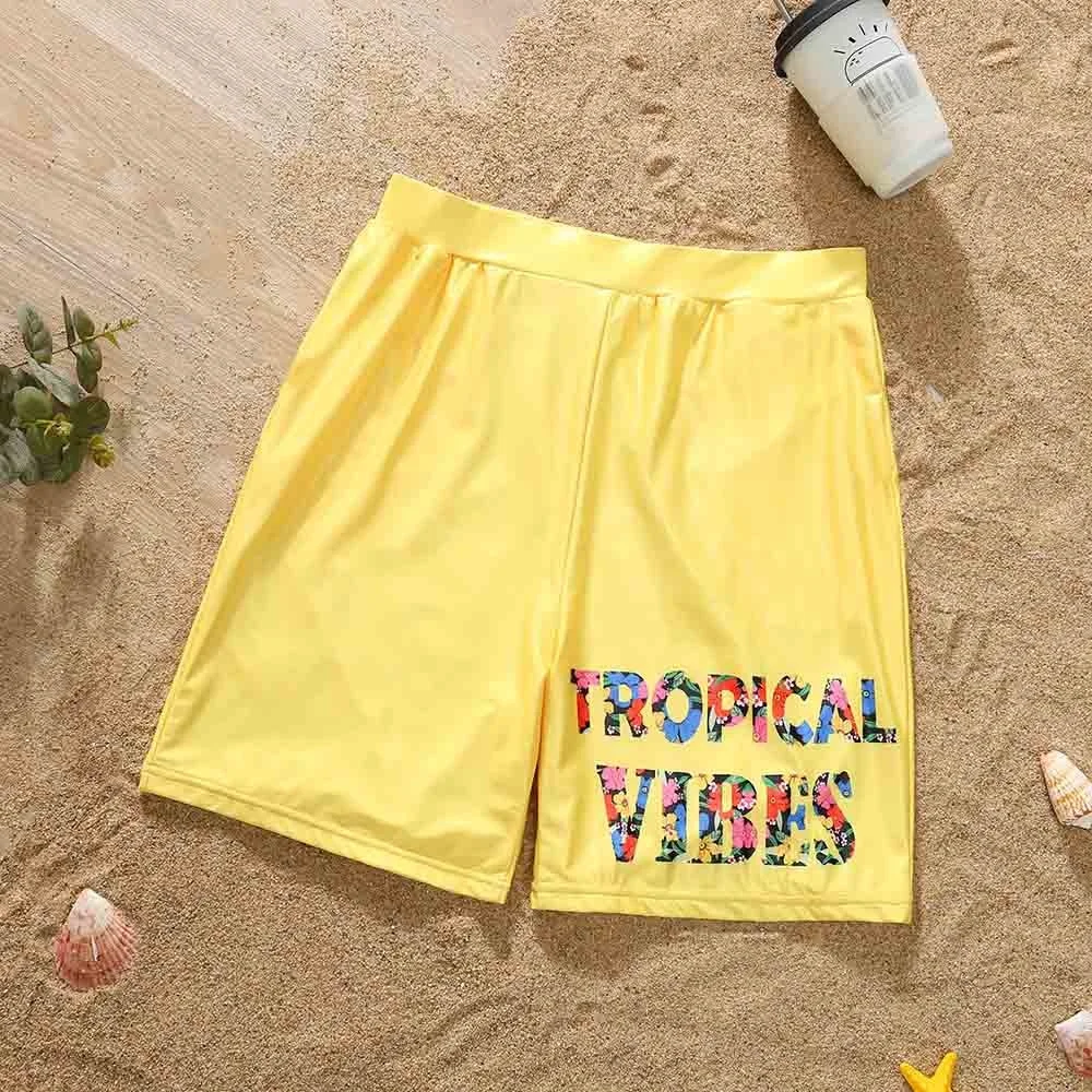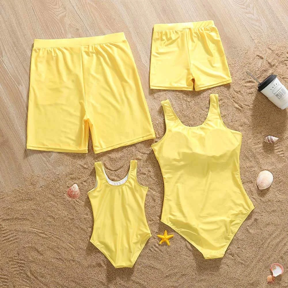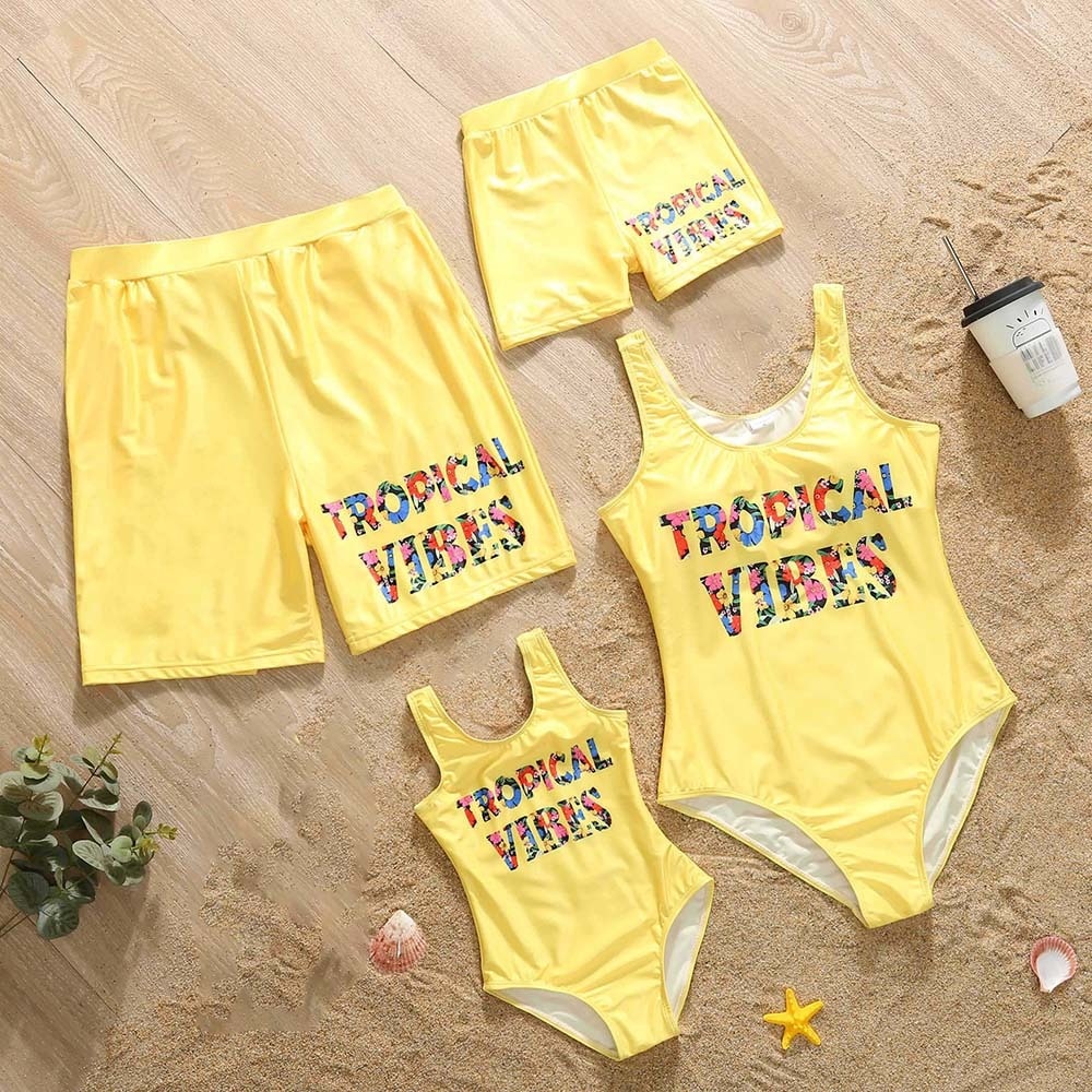 Летний семейный однотонный Цельный купальник с буквенным принтом и плавки, праздничный купальник