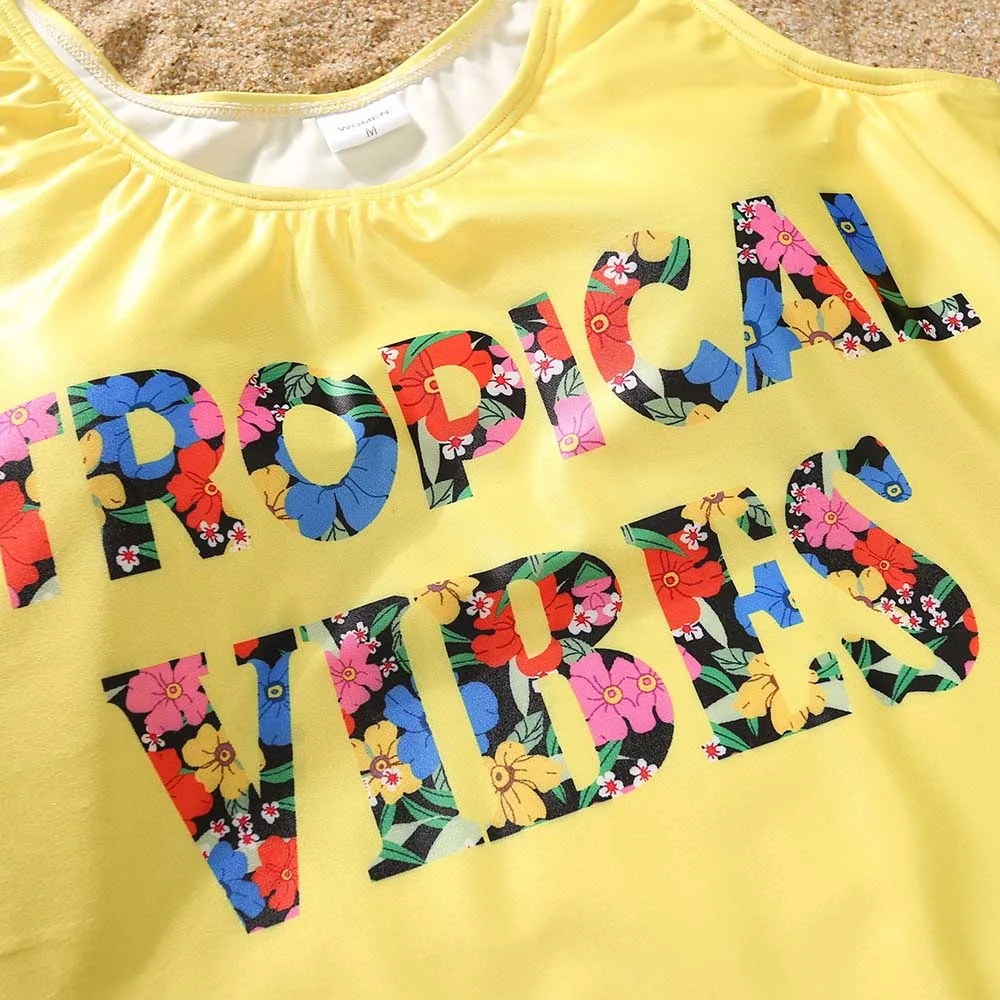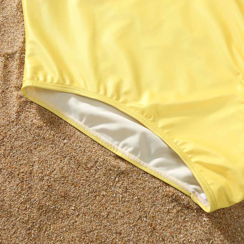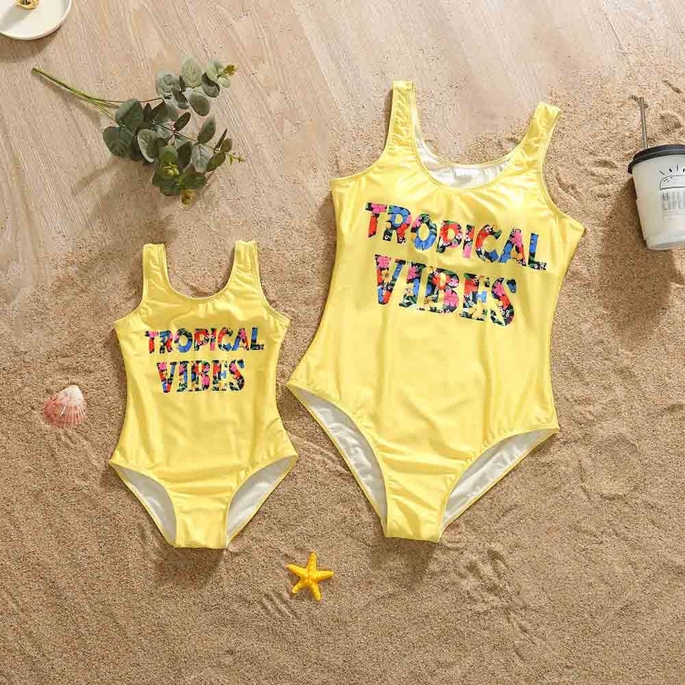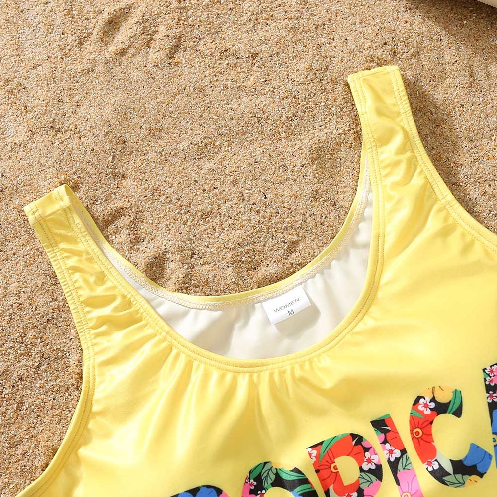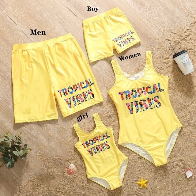 Летний семейный однотонный Цельный купальник с буквенным принтом и плавки, праздничный купальник