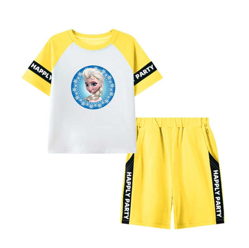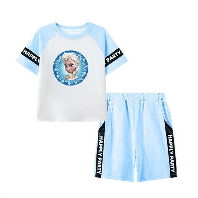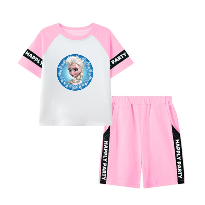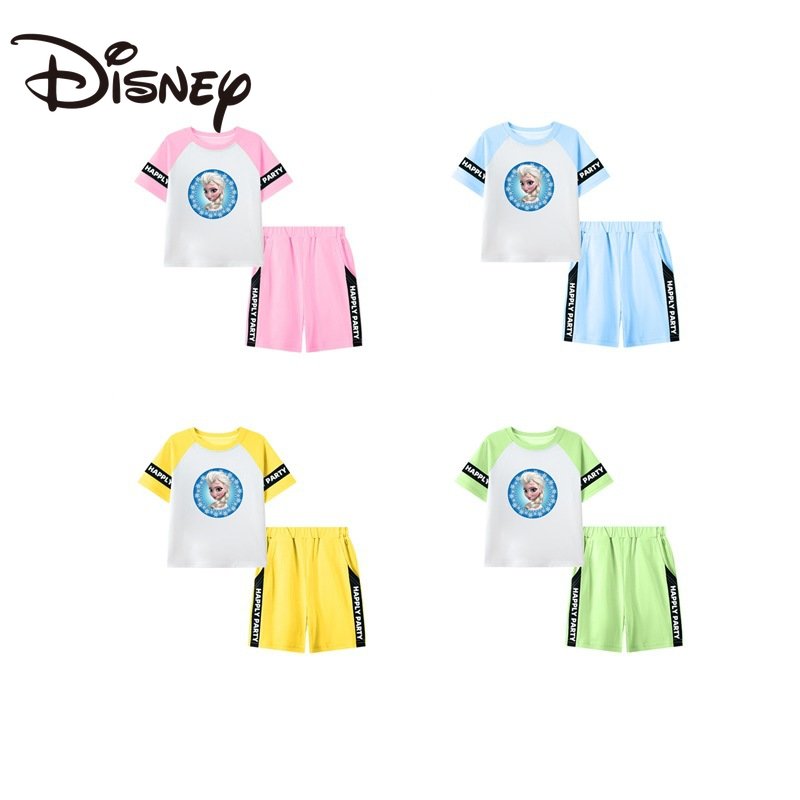 Летний спортивный костюм для девочек Disney, повседневные шорты с коротким рукавом, принцесса «Холодное сердце», одежда из двух предметов для девочки, домашняя одежда