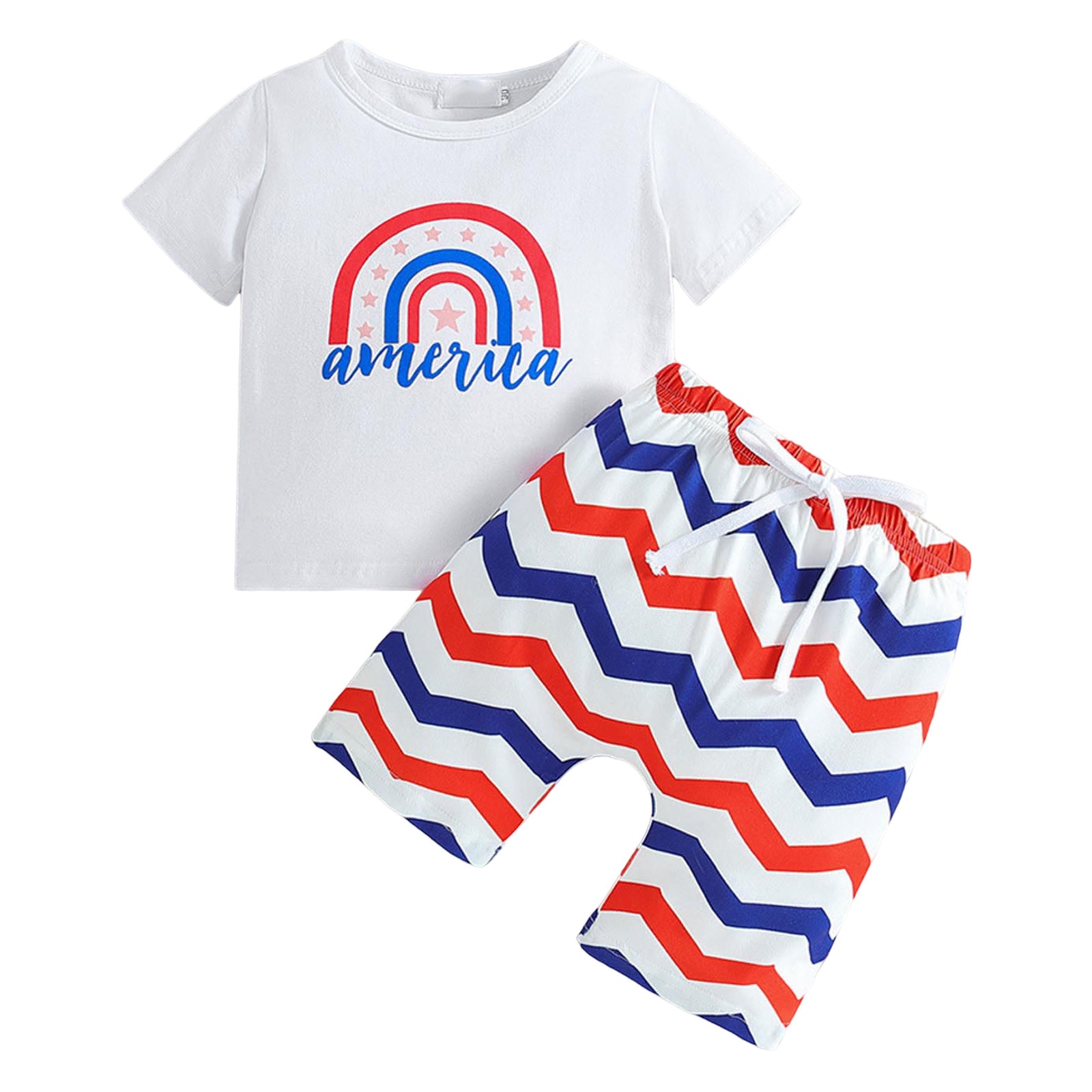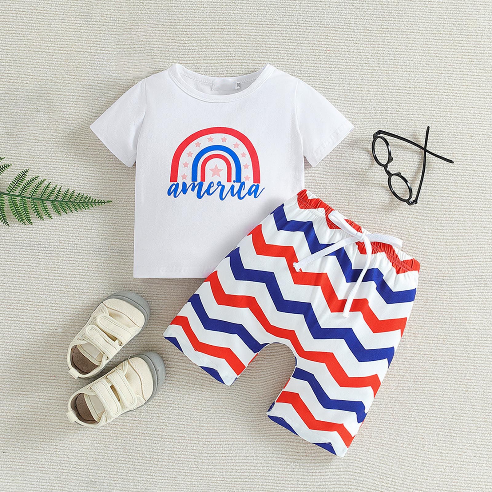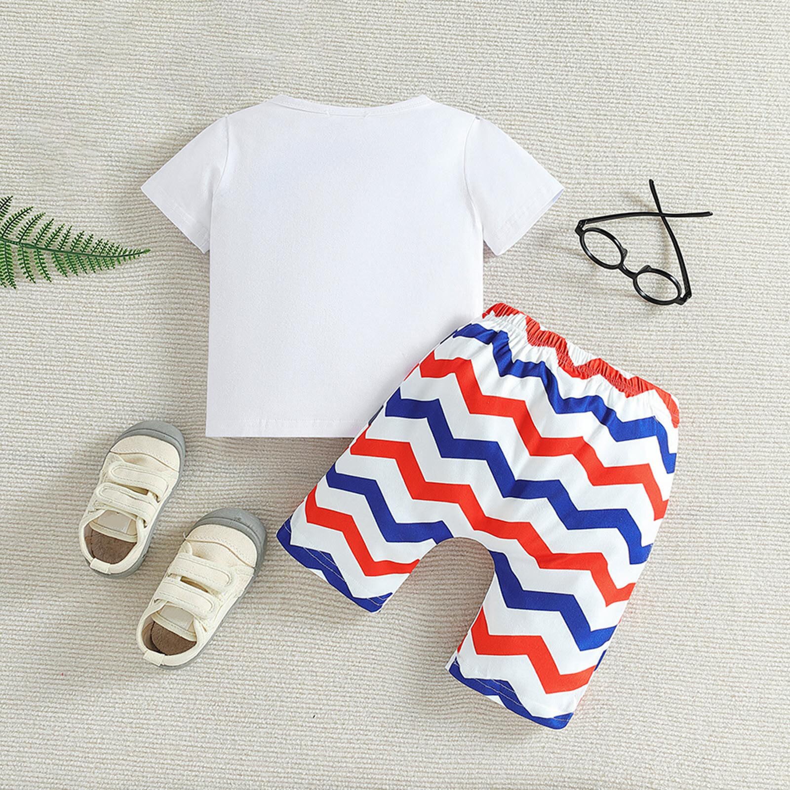 Летний малыш мальчики с коротким рукавом День независимости полосатые топы с принтом Шорты Комплект из двух предметов одежды для детской одежды