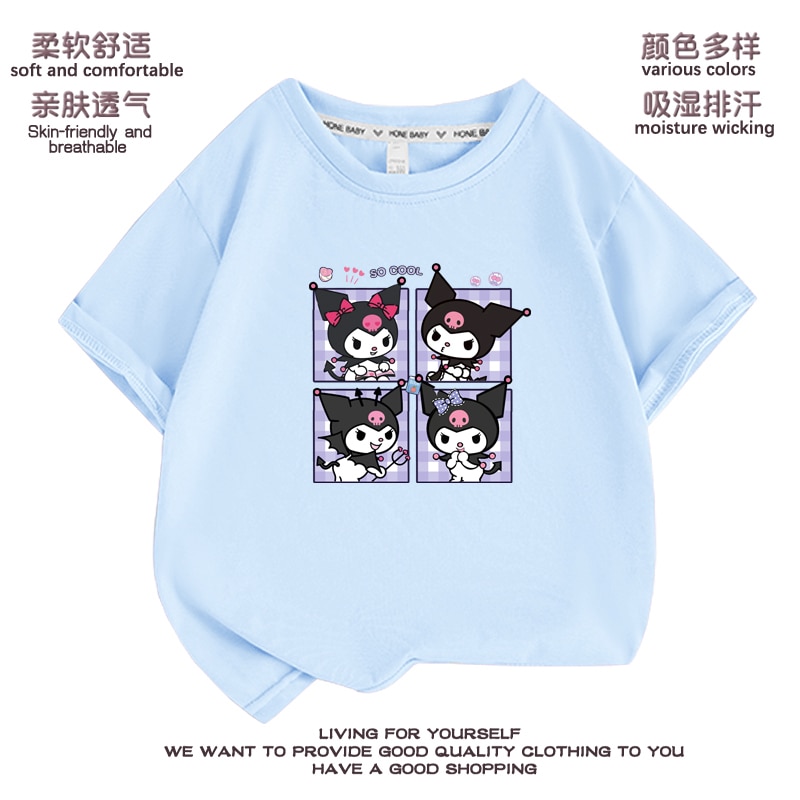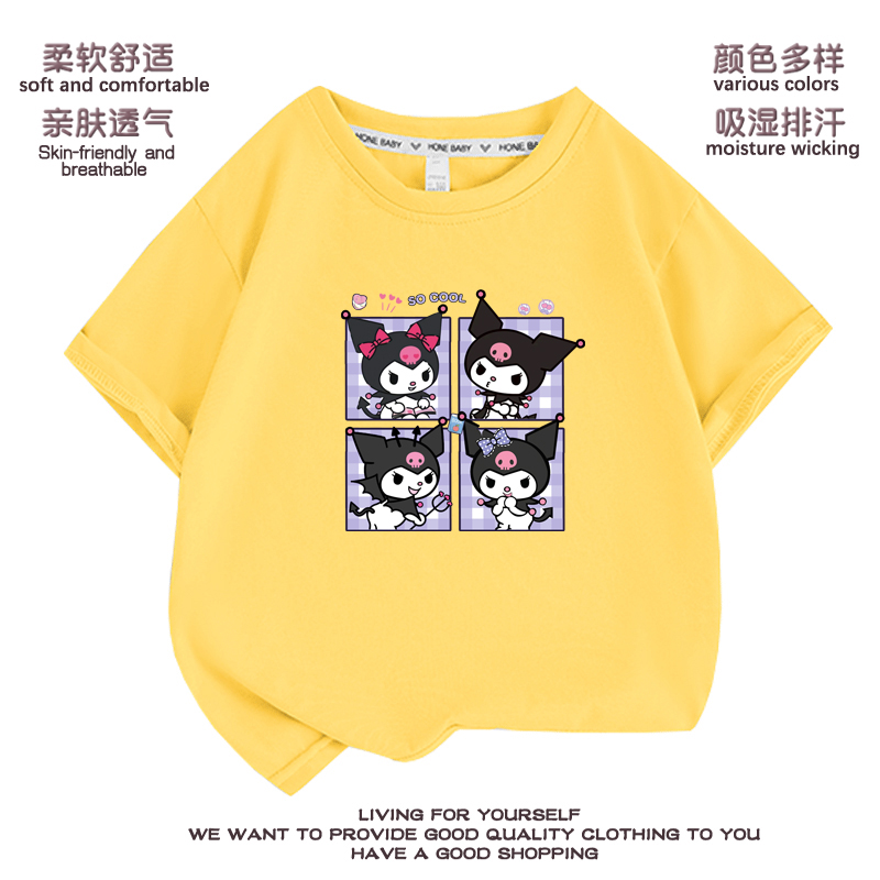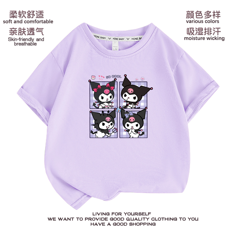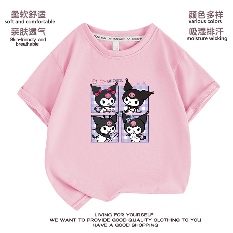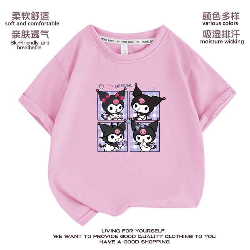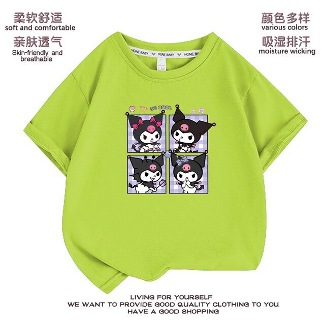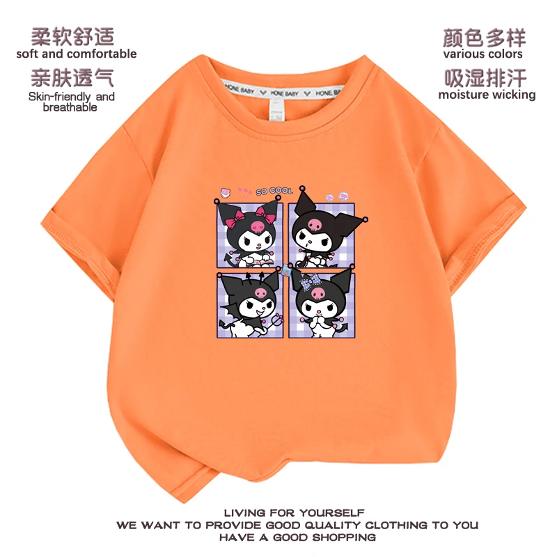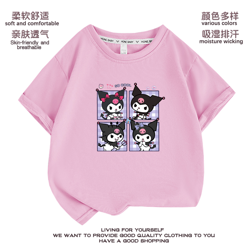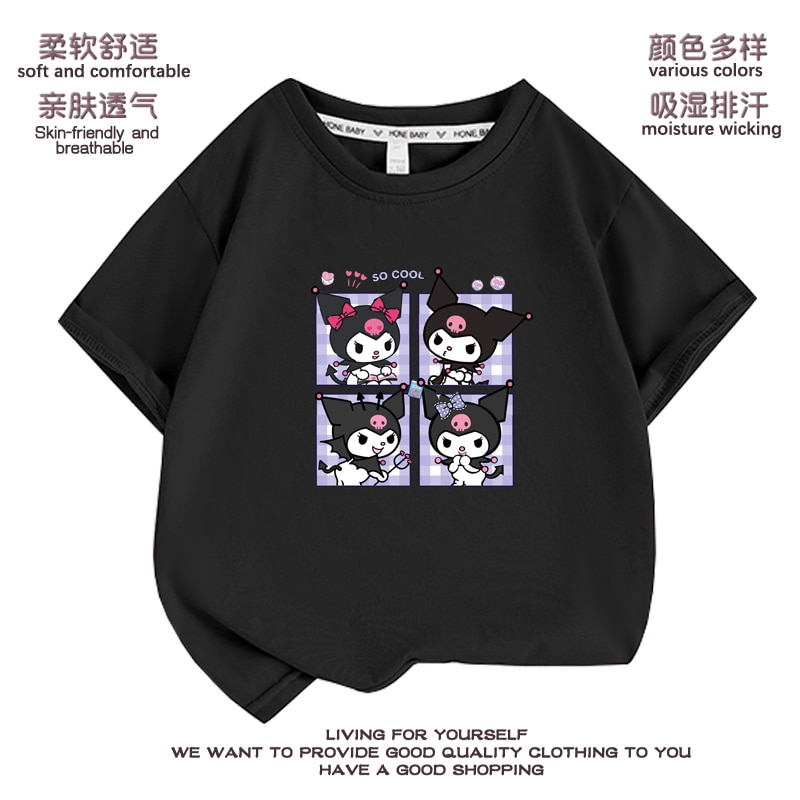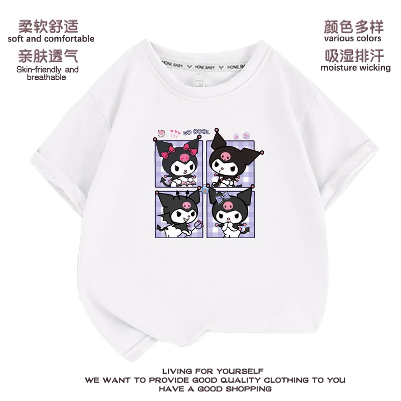 Летняя детская футболка с героями аниме Kuromi Melody, милые футболки для девочек, топы с коротким рукавом для мальчиков, повседневная детская одежда