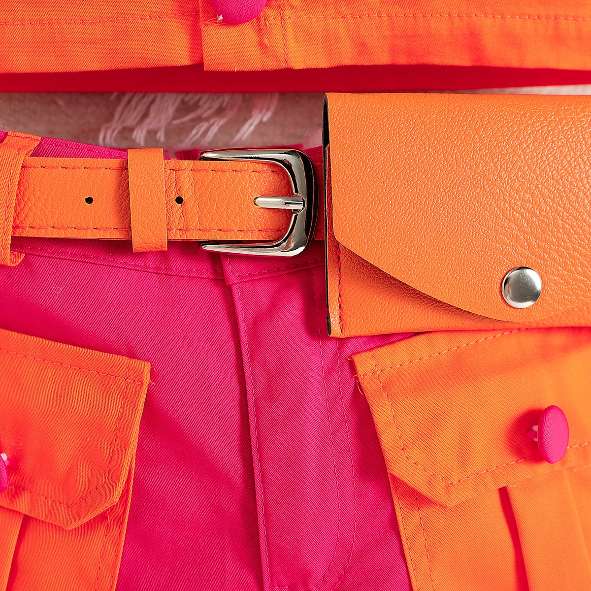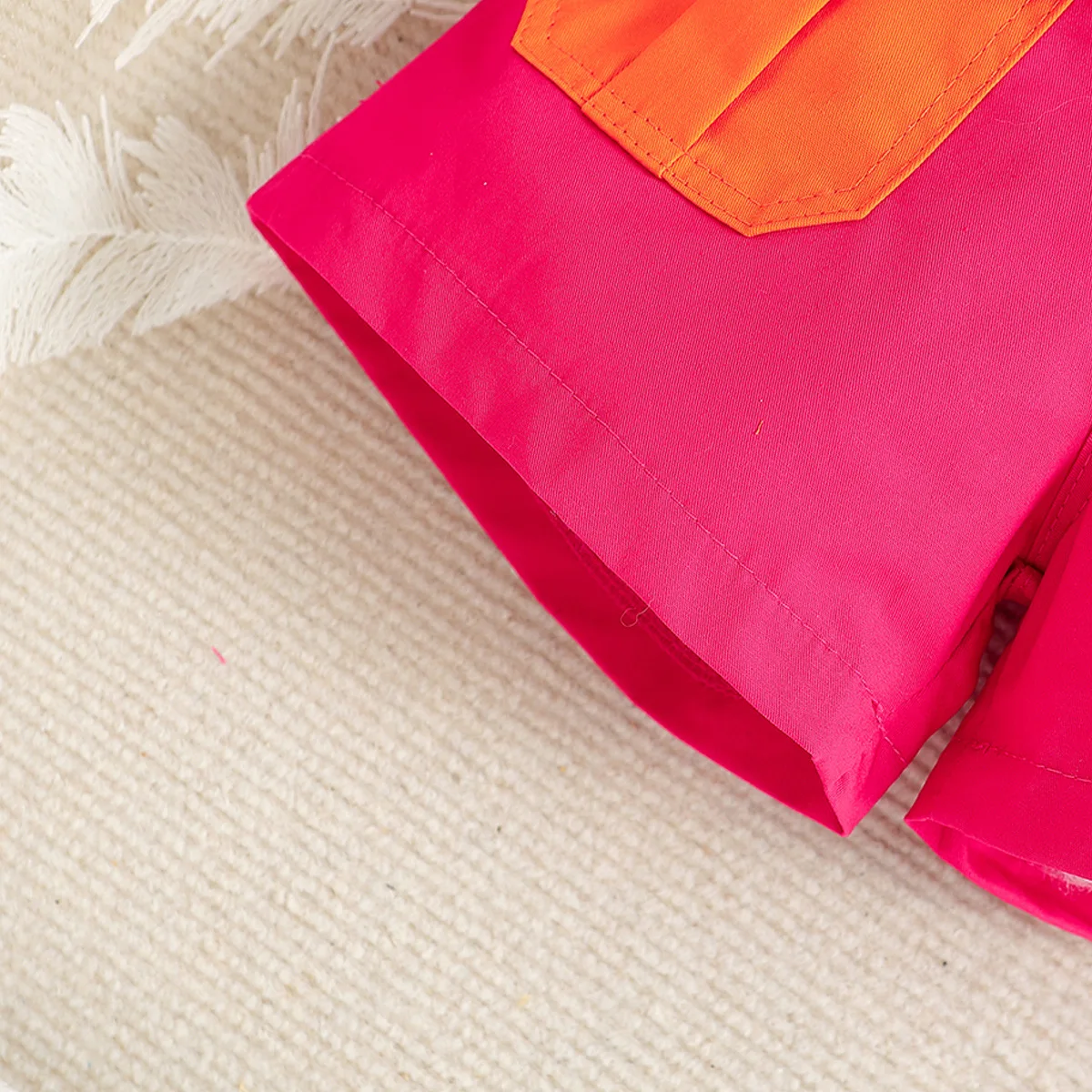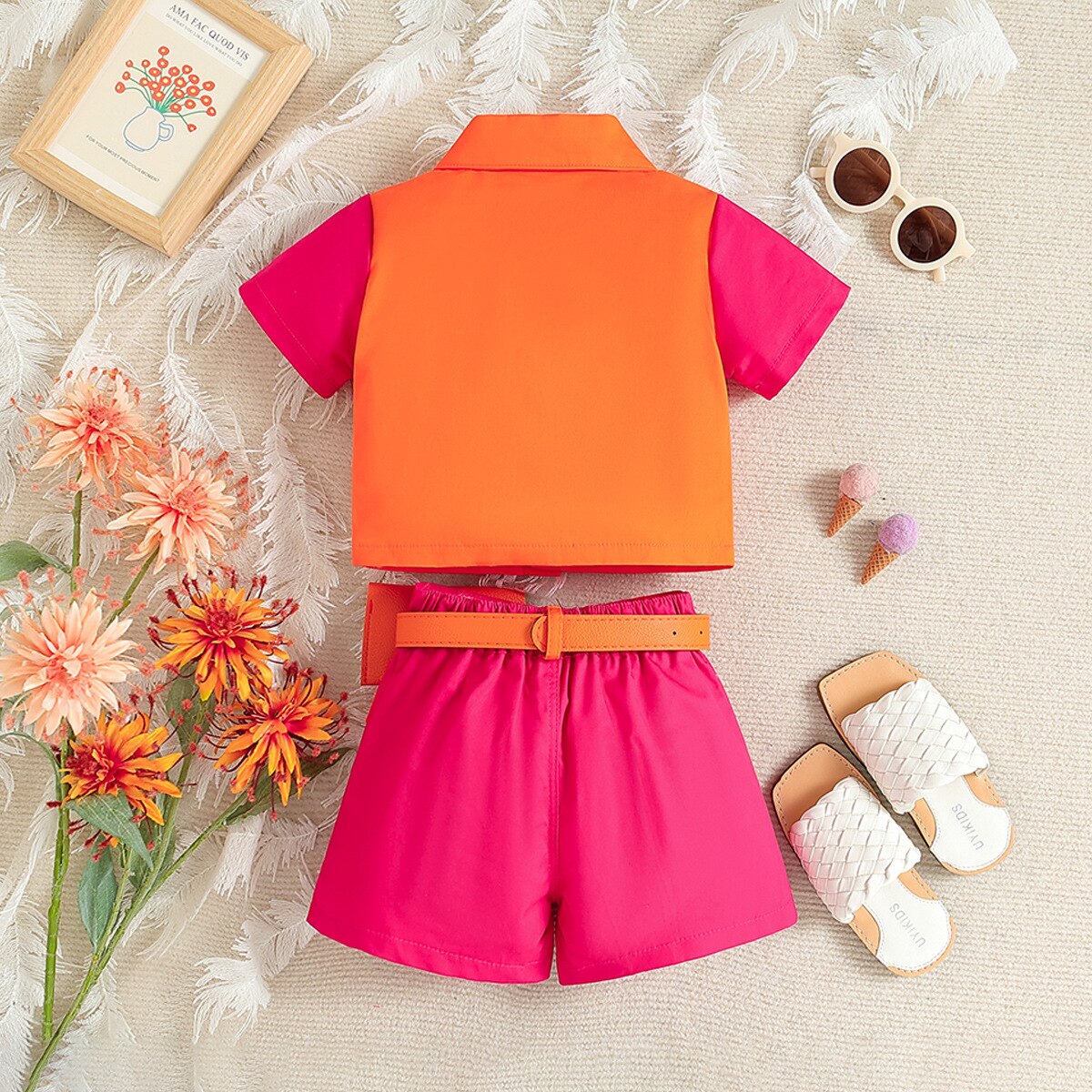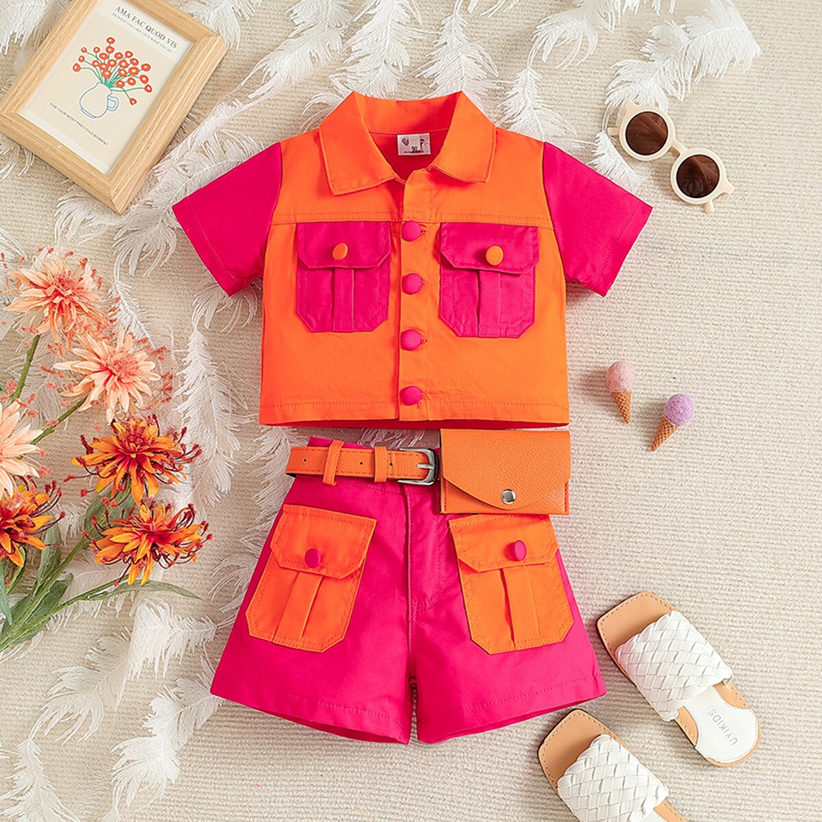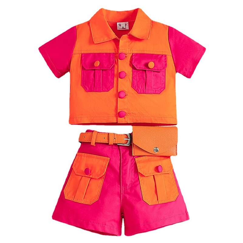 Летняя детская одежда для девочек эксклюзивный наряд модное цветное блочное пальто с коротким рукавом + шорты + Пояс Роскошные комплекты детской одежды BC600