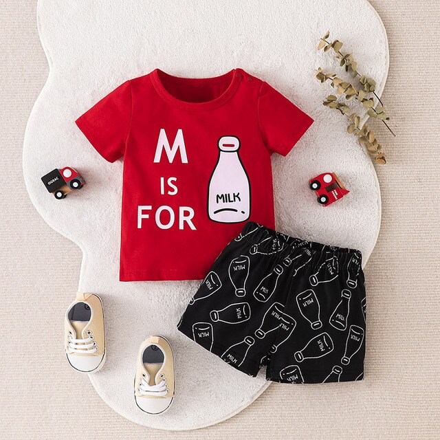 Летняя детская одежда, футболка для маленьких мальчиков + штаны, комплект из 2 предметов, детский мультяшный костюм с коротким рукавом, костюм для девочек ясельного возраста