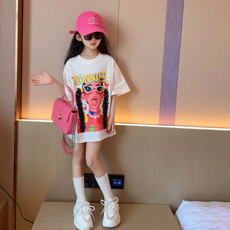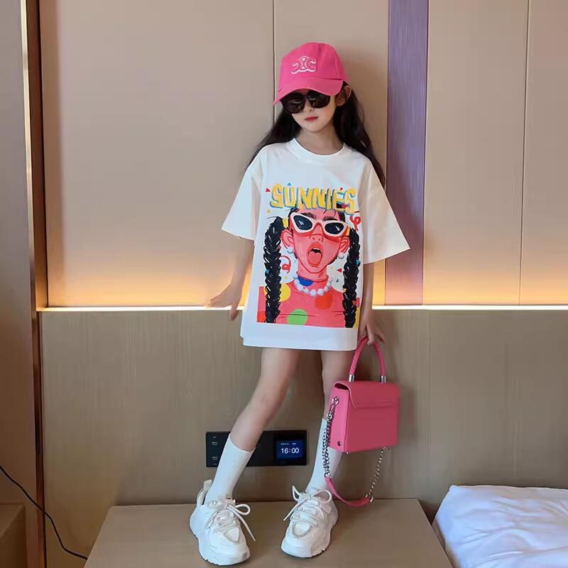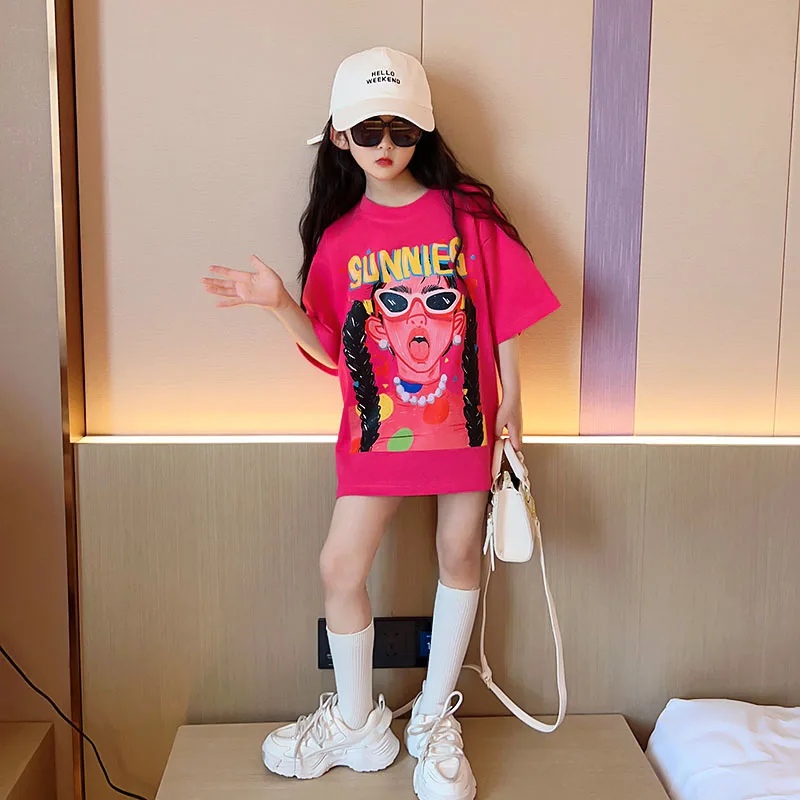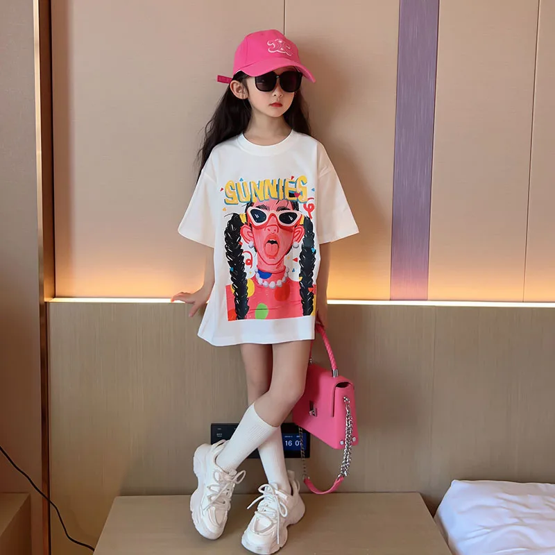 Имя:Летняя футболка для девочек, детская футболка, детские пуловеры, топы, Детская уличная одежда, модная одежда с принтом Lolli От 5 до 14 лет