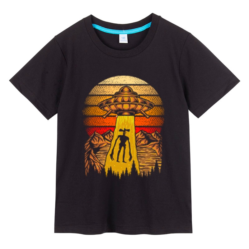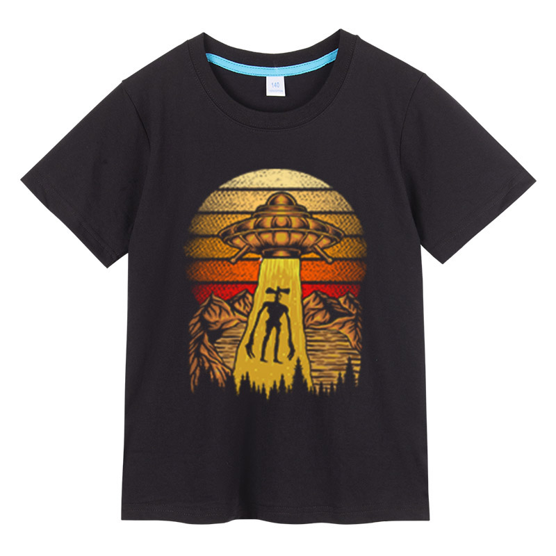 Летняя футболка для мальчиков, с рисунком головы сирены из мультфильма, хлопковая Футболка для мальчиков и девочек, повседневная детская одежда, свитшот, топы, футболки