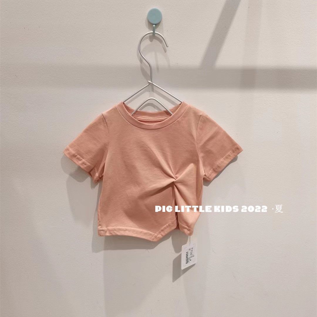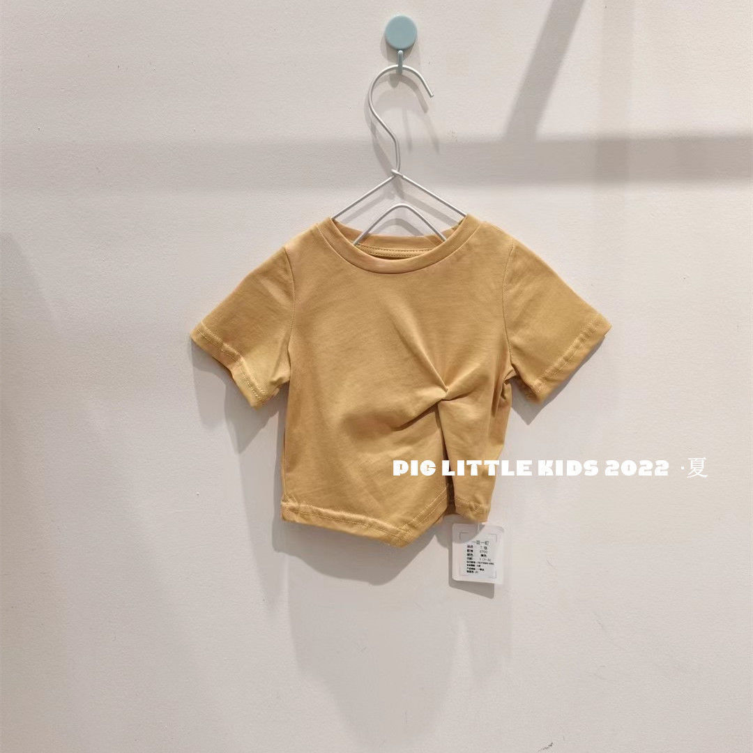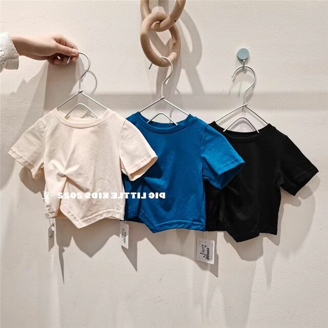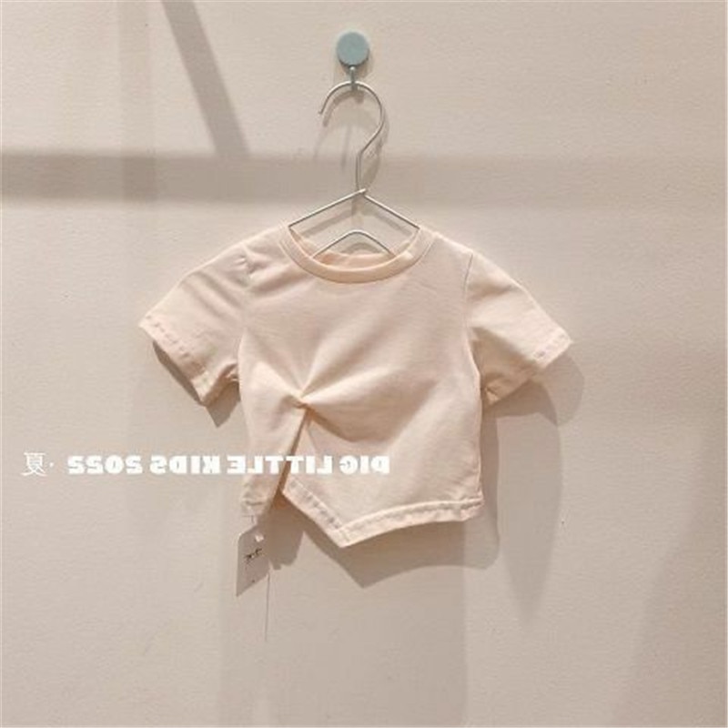 Летняя футболка с коротким рукавом для девочек, детская модная Однотонная футболка в западном стиле с коротким рукавом в Корейском стиле