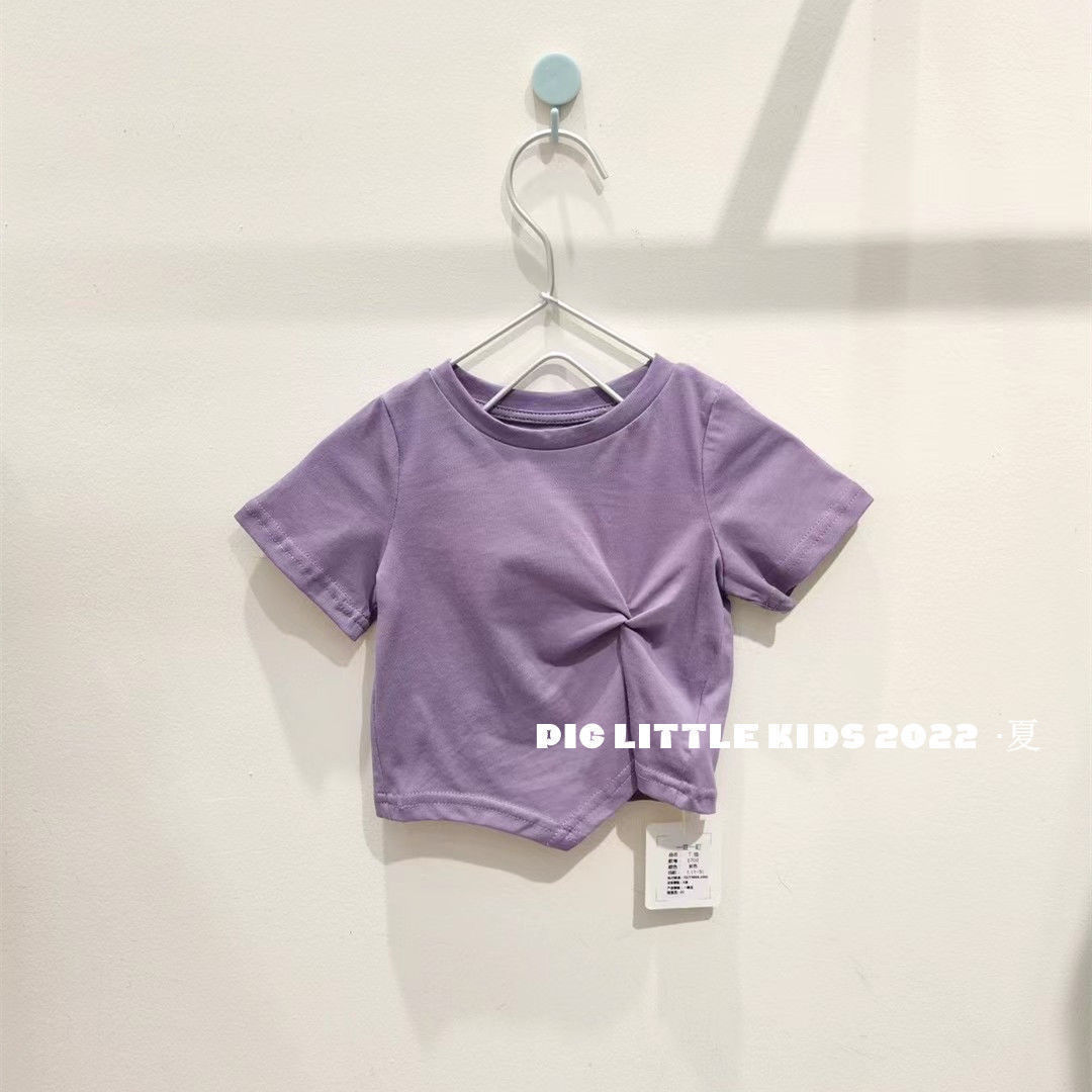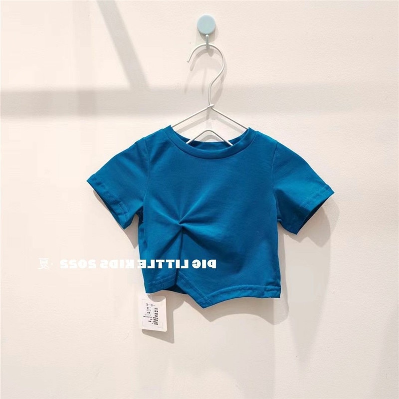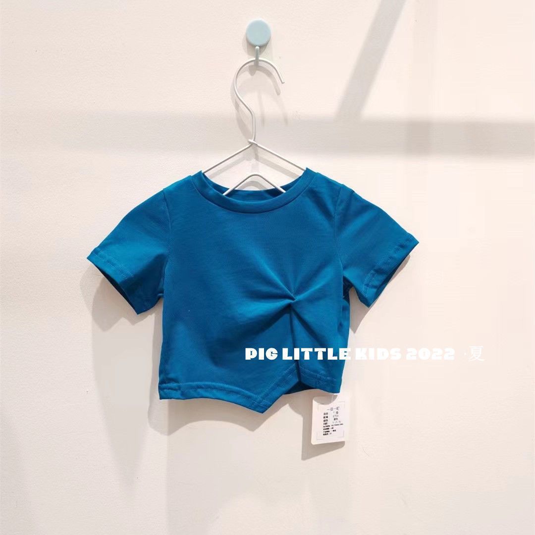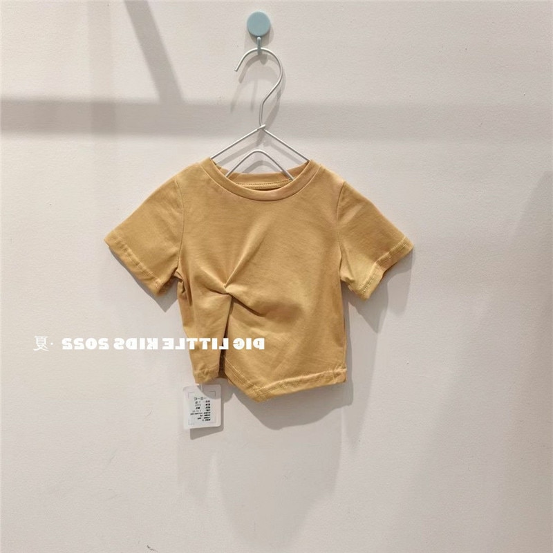 Летняя футболка с коротким рукавом для девочек, детская модная Однотонная футболка в западном стиле с коротким рукавом в Корейском стиле