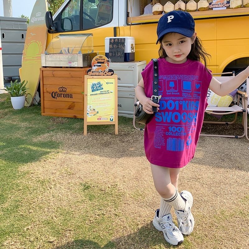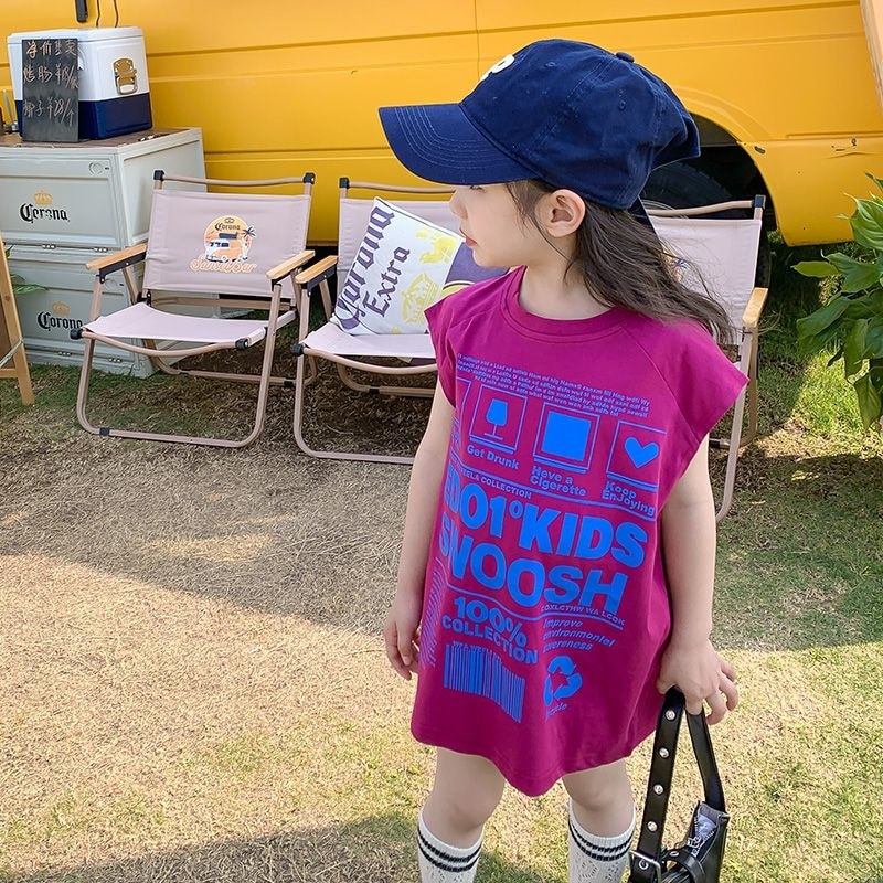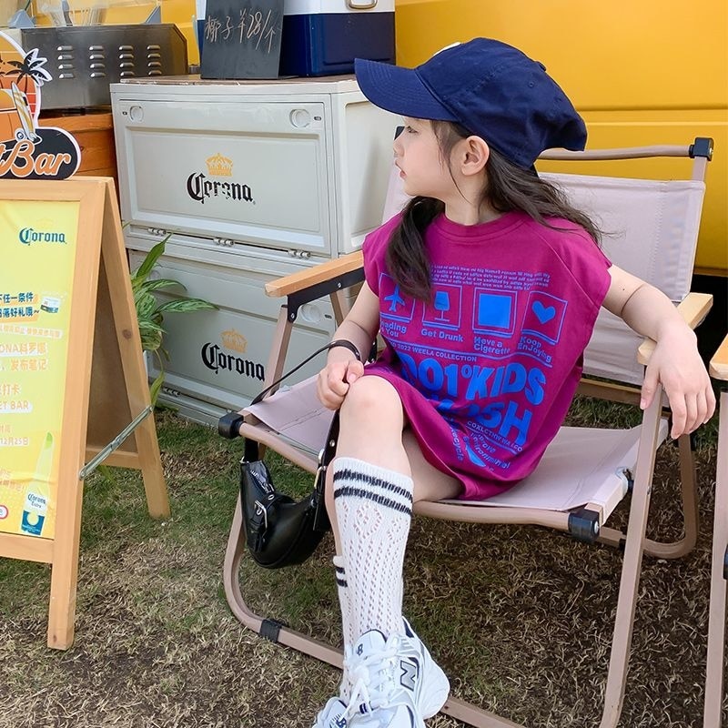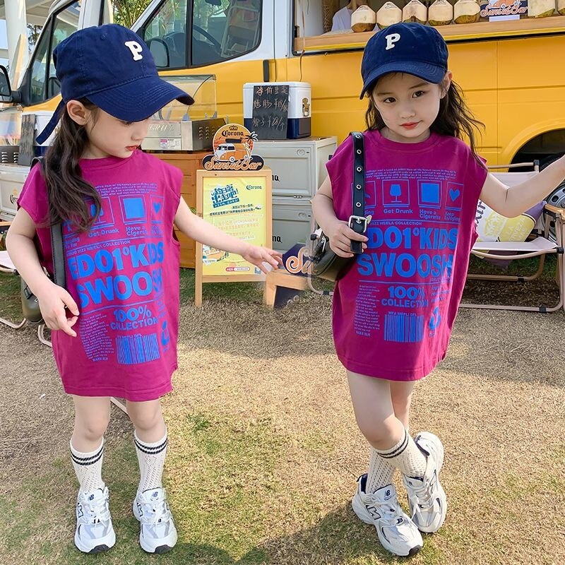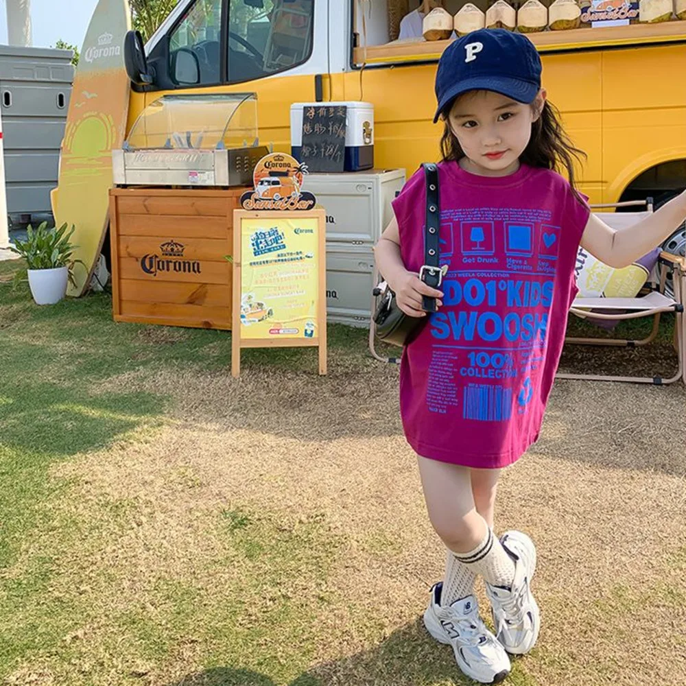 Летняя футболка с коротким рукавом для девочек, детский топ средней длины, детская модная стильная юбка без рукавов