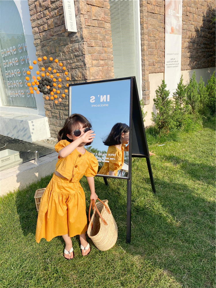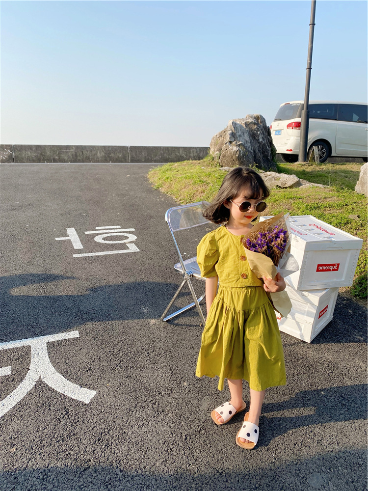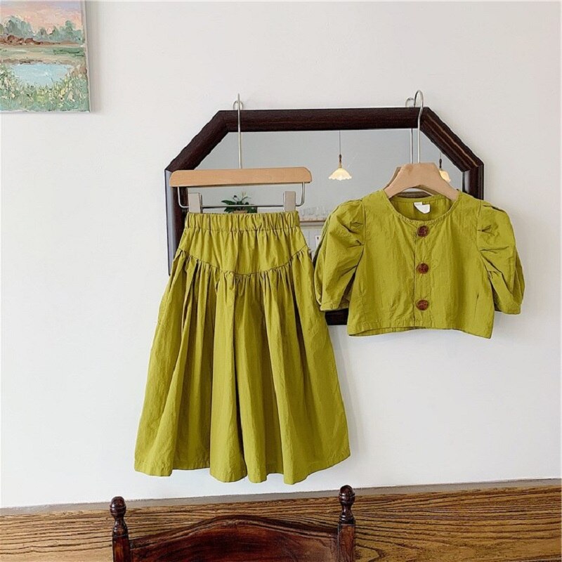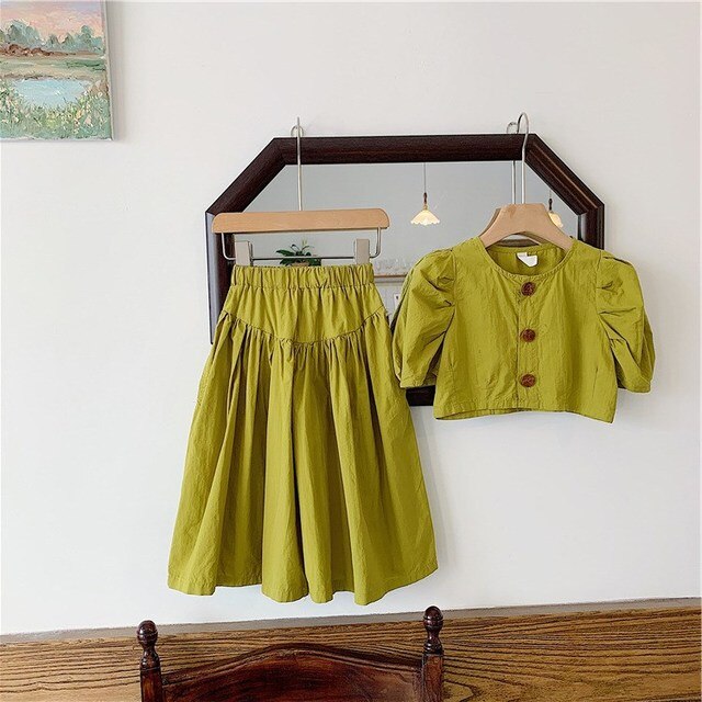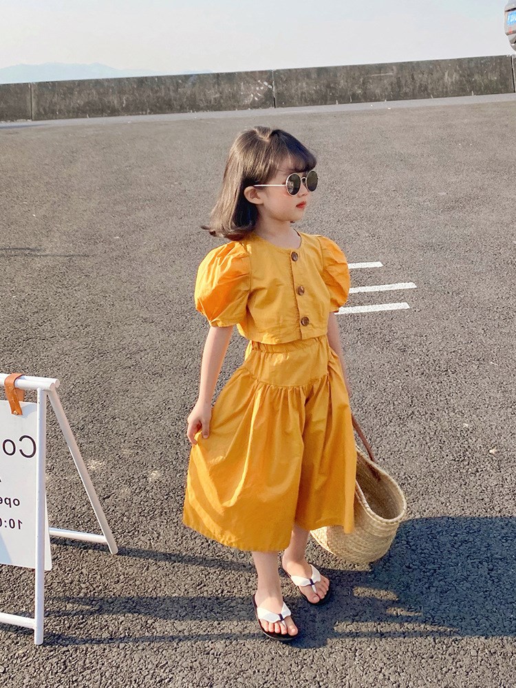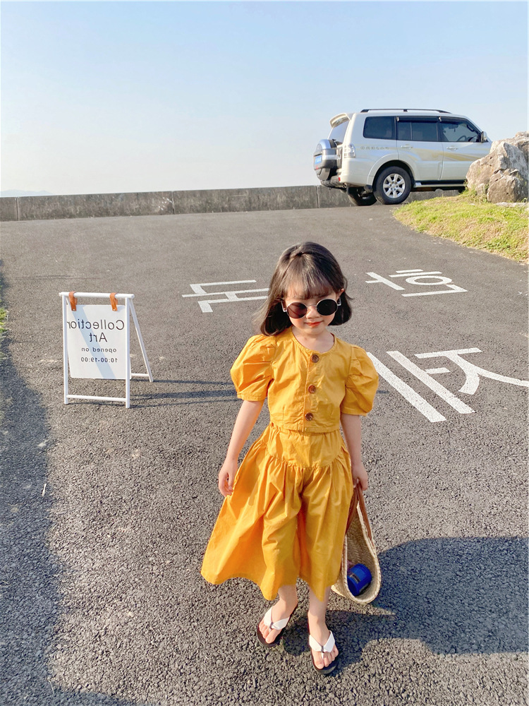 Летняя хлопковая рубашка с оборками и рукавами-фонариками для маленьких девочек + свободные плиссированные Стрейчевые брюки, детский спортивный костюм, комплект из 2 предметов для детей 2-8 лет