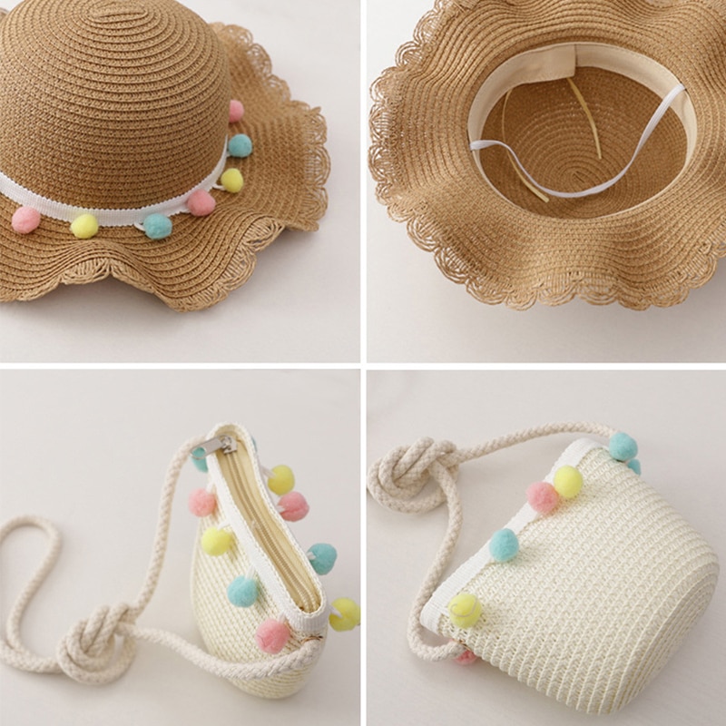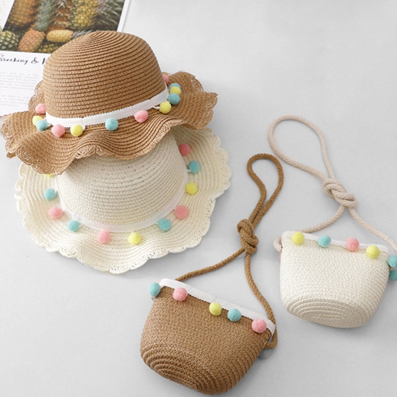 Летняя мода детей солнцезащитный крем Sun Hat соломенной шляпе сумка для девочек прохладно