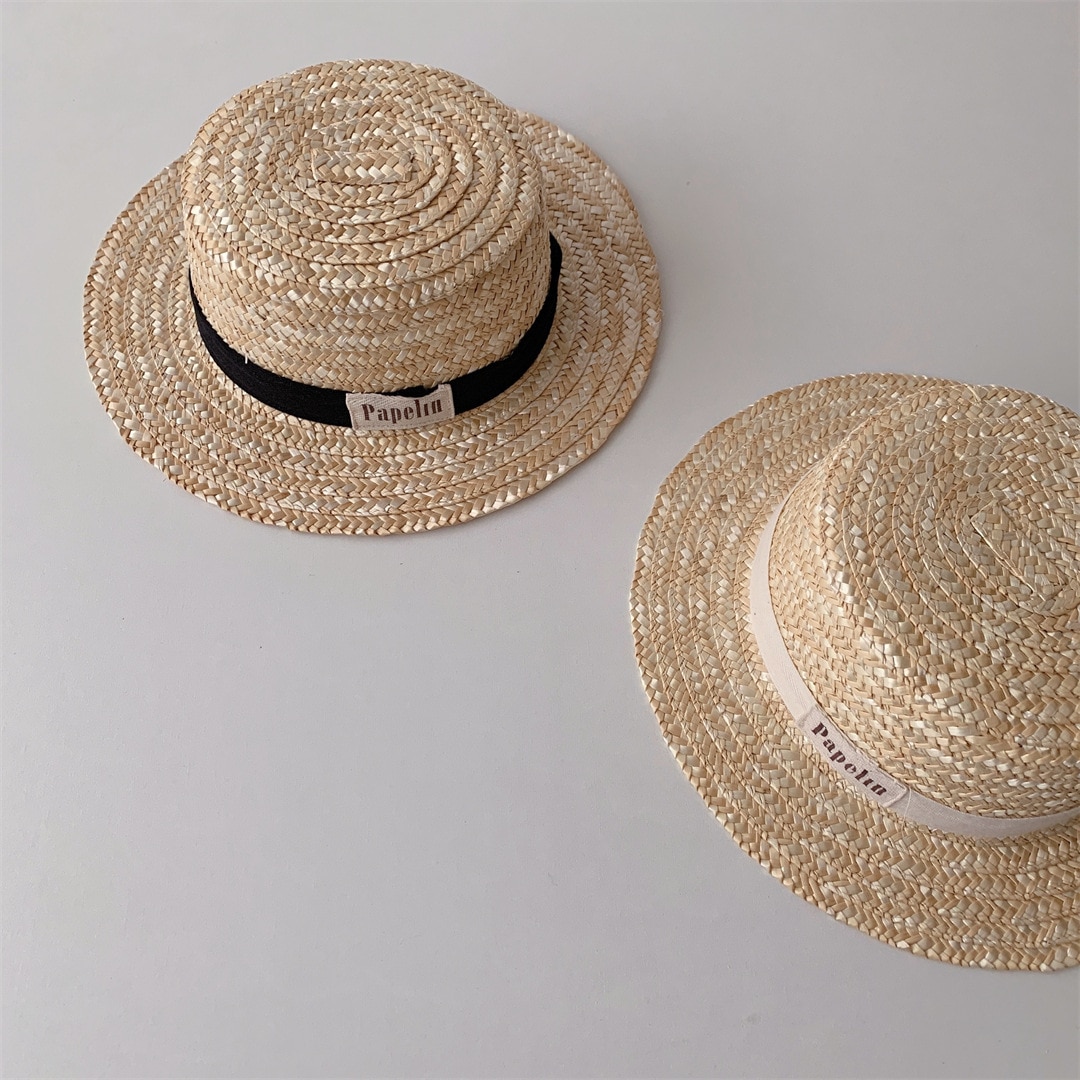 Летняя модная соломенная шляпа с защитой от солнца для мальчиков, шляпа для маленьких девочек с буквенным принтом в рыбацком стиле, простая дышащая пляжная шляпа