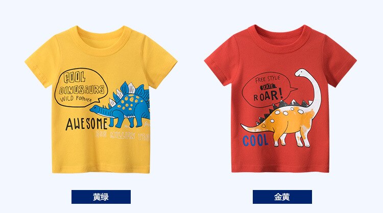 Летняя новая детская футболка с коротким рукавом и мультипликационным рисунком динозавра, мужская и женская одежда с милыми животными, детская одежда с круглым вырезом.