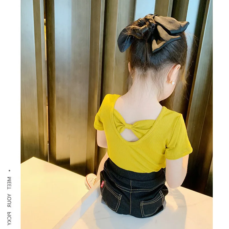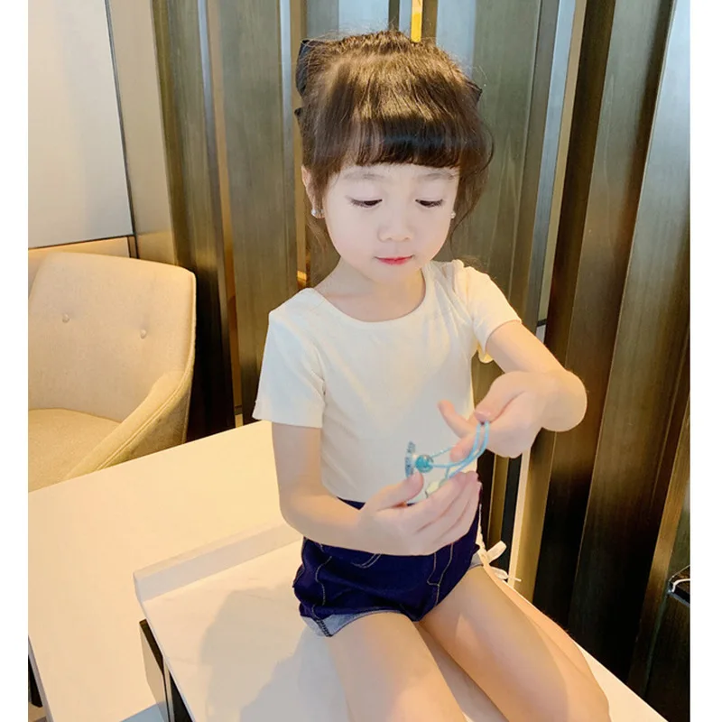 Летняя новая футболка с коротким рукавом и круглым вырезом для девочек