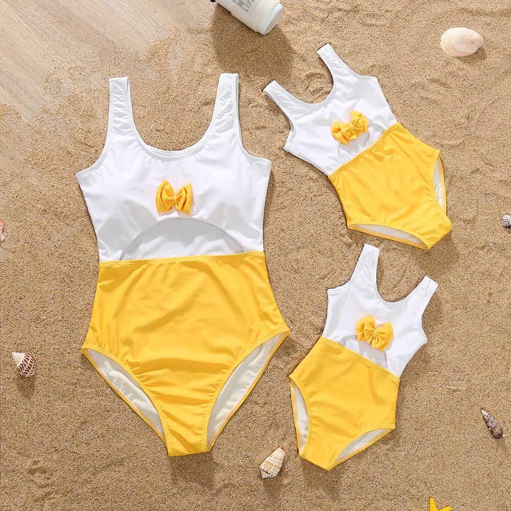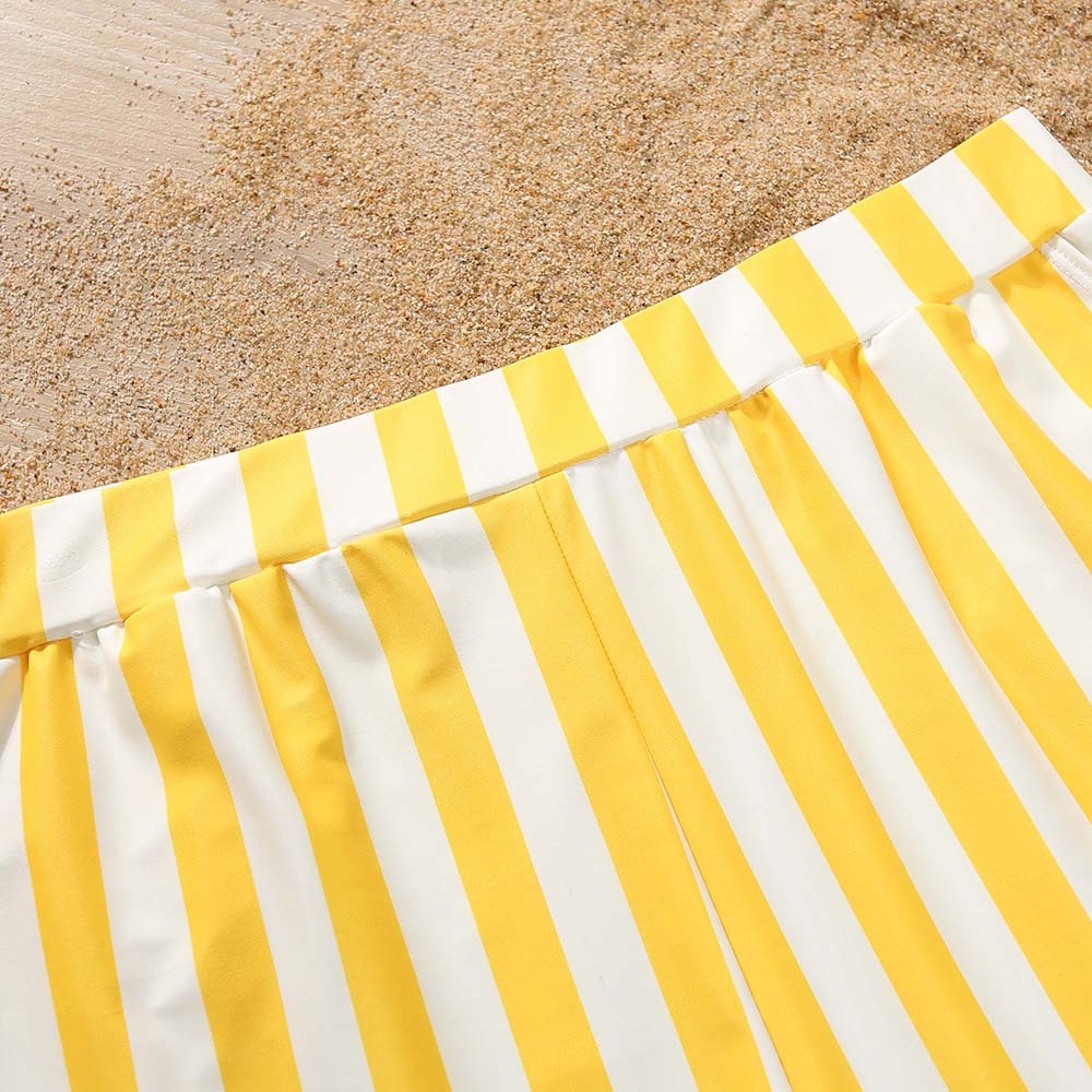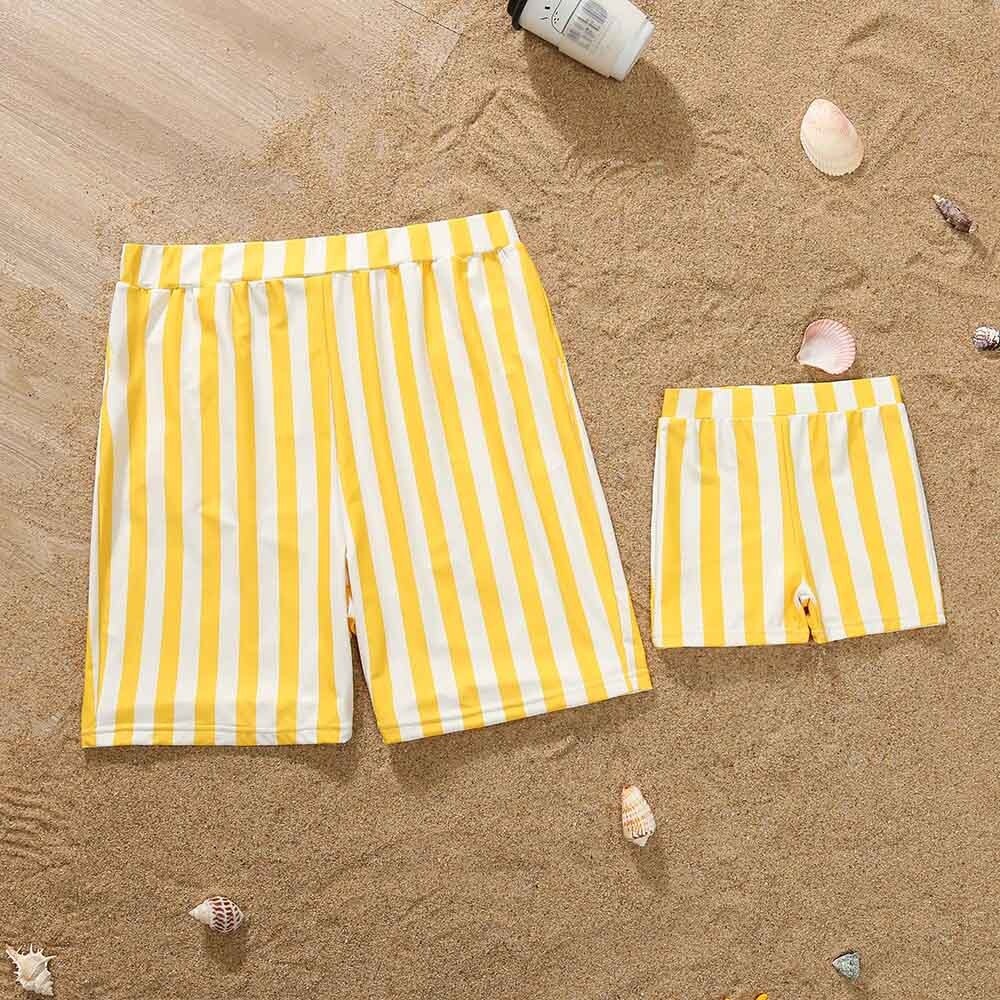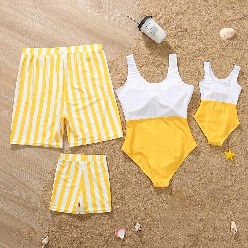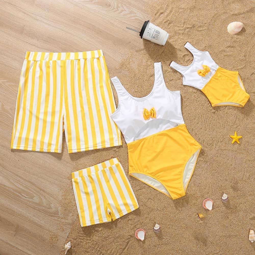Летняя новинка, летний Семейный комплект для купания, милый полосатый купальник с ажурным принтом, комплекты для купания, праздничные костюмы