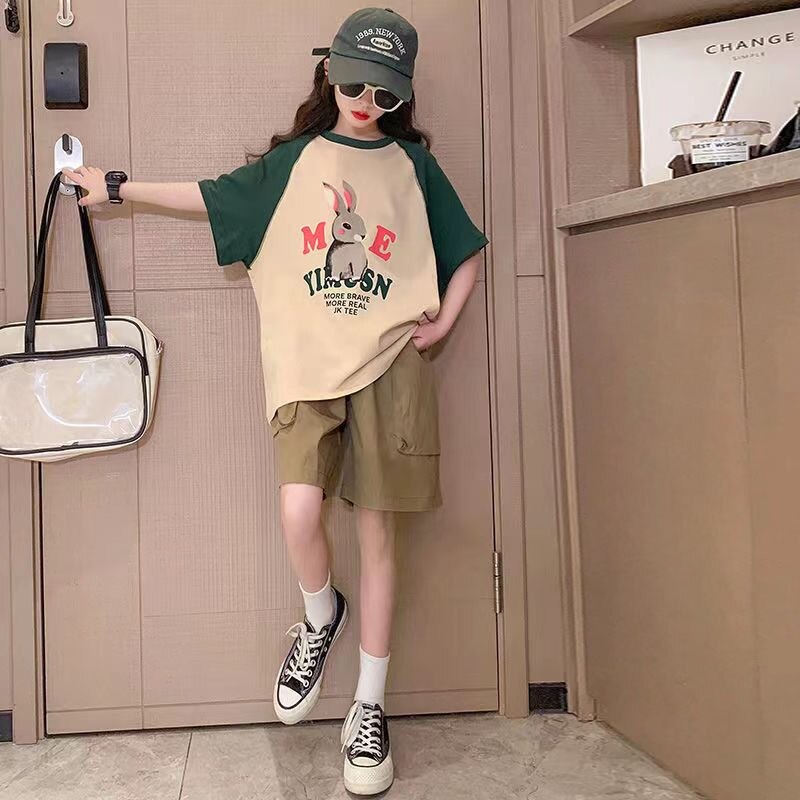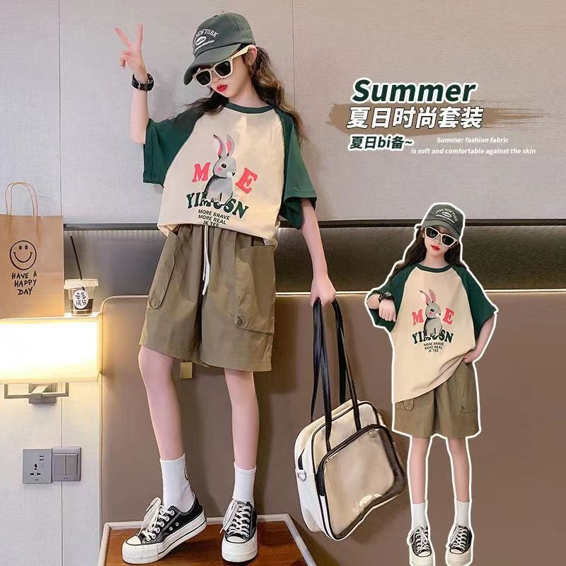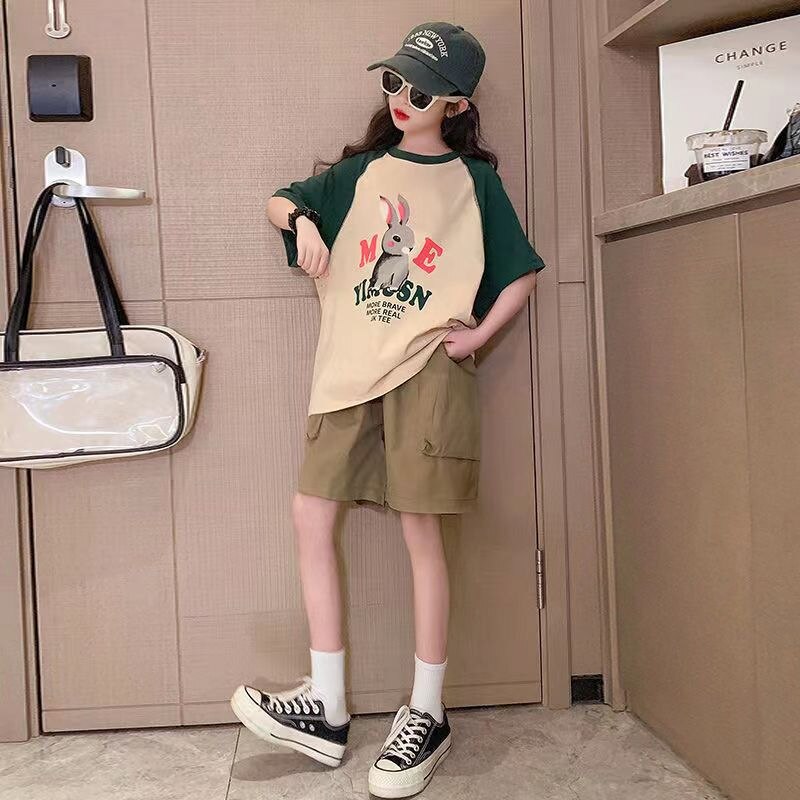 Летняя одежда для девочек, детский топ с коротким рукавом, шорты, детская спортивная одежда из 2 предметов, повседневная одежда для девочек