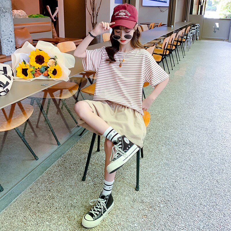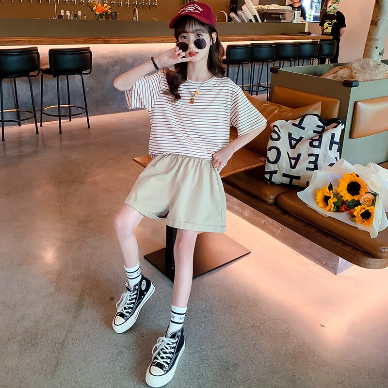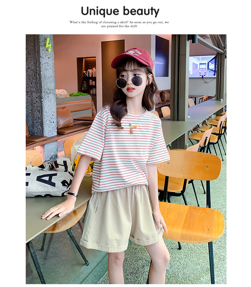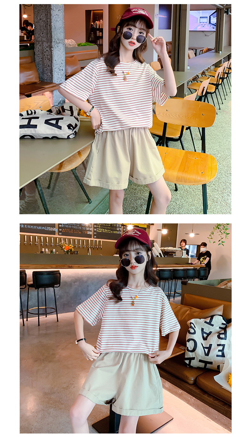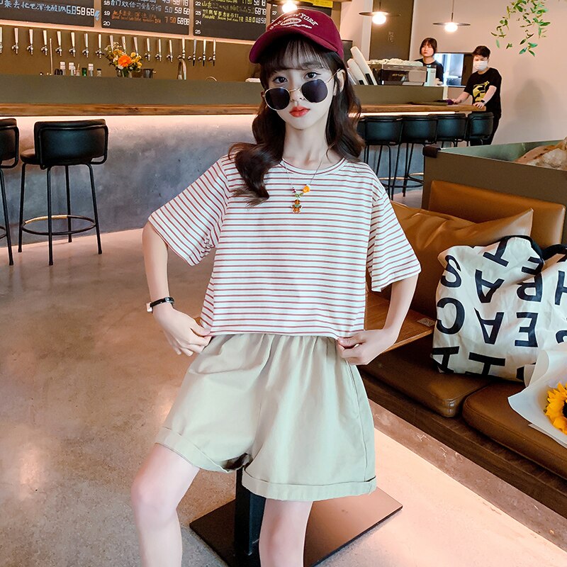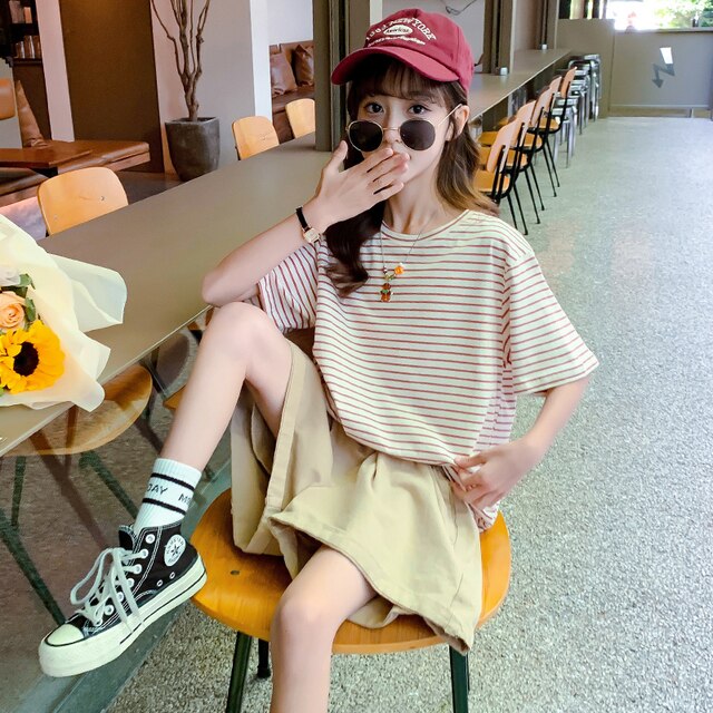 Летняя одежда для девочек, одежда в полоску для девочек, повседневный стильный костюм для девочек-подростков, детский спортивный костюм 6, 8, 10, 12, 14