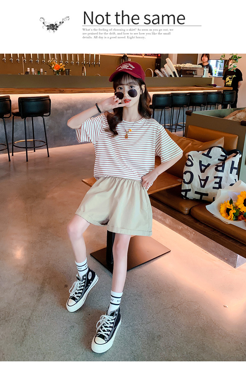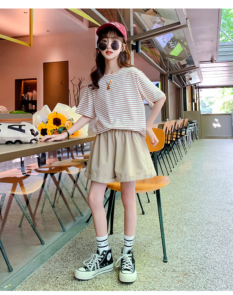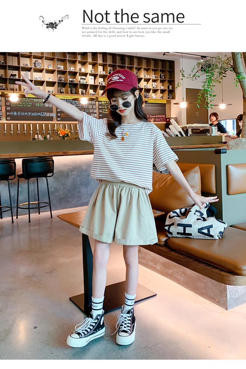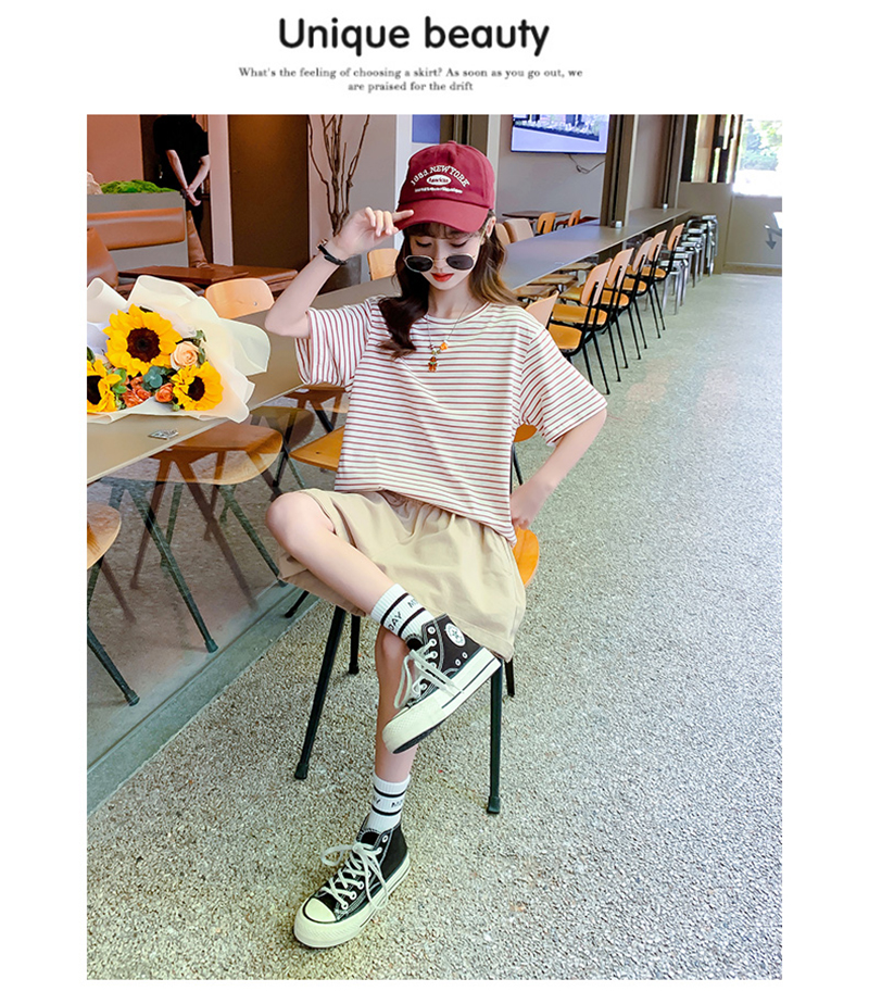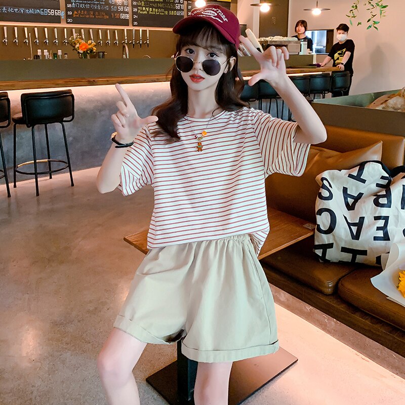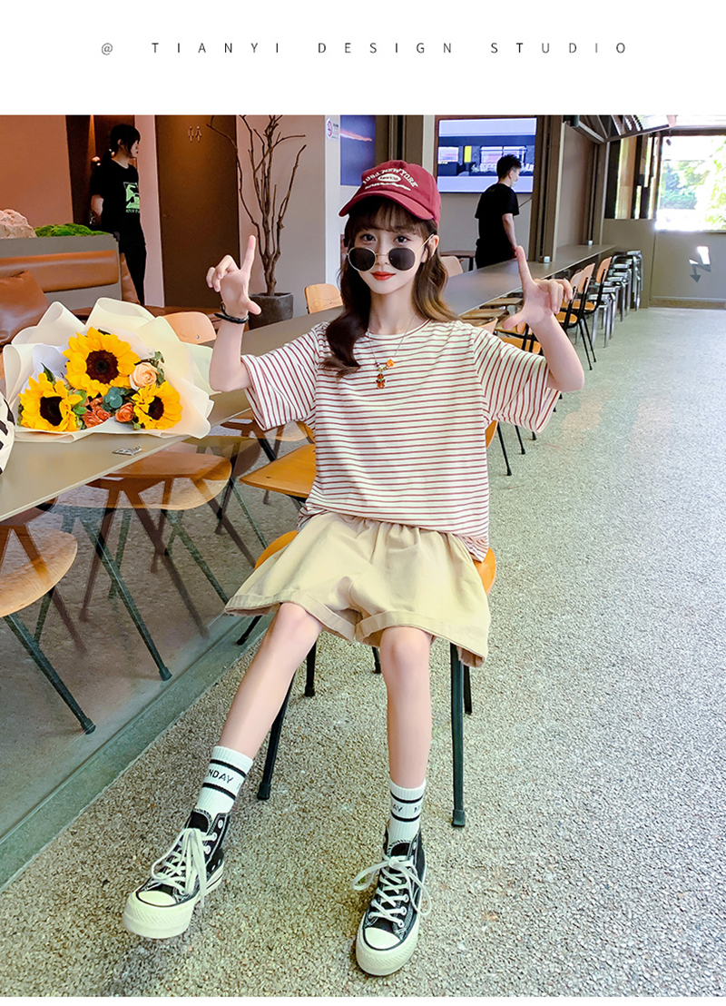 Летняя одежда для девочек, одежда в полоску для девочек, повседневный стильный костюм для девочек-подростков, детский спортивный костюм 6, 8, 10, 12, 14