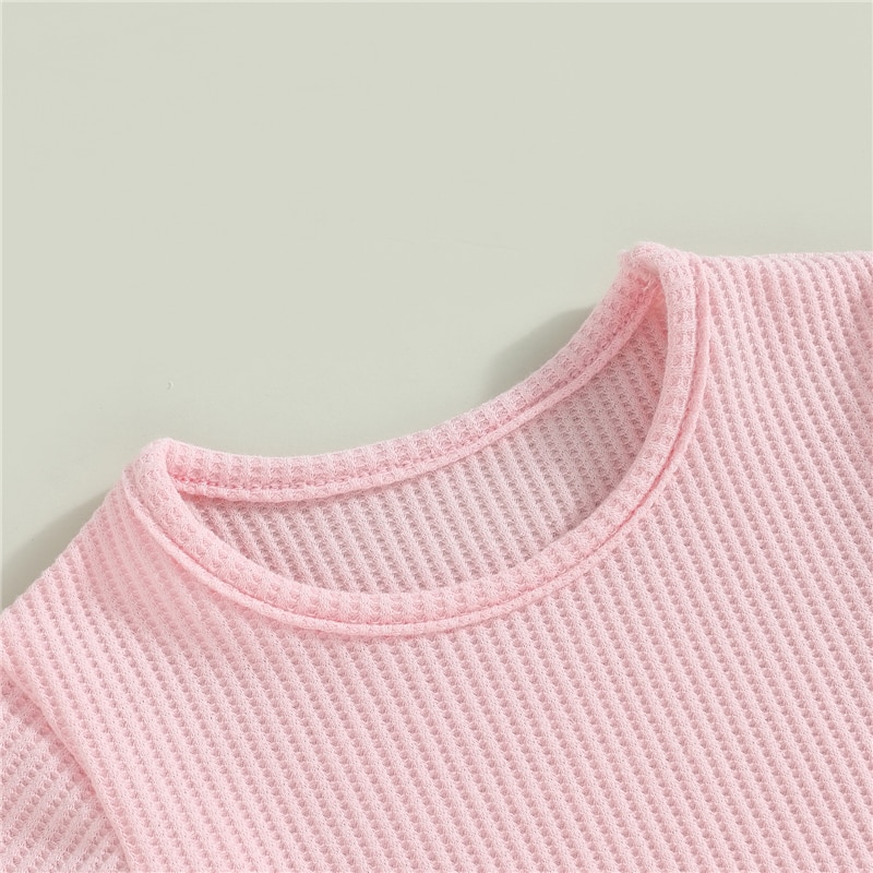 Круглый вырез, летняя вафельная футболка с коротким рукавом, повседневные эластичные шорты на талии с цветочным принтом, изысканные детали сделают вашего малыша милым и очаровательным, идеальным летним комплектом одежды для ваших девочек.