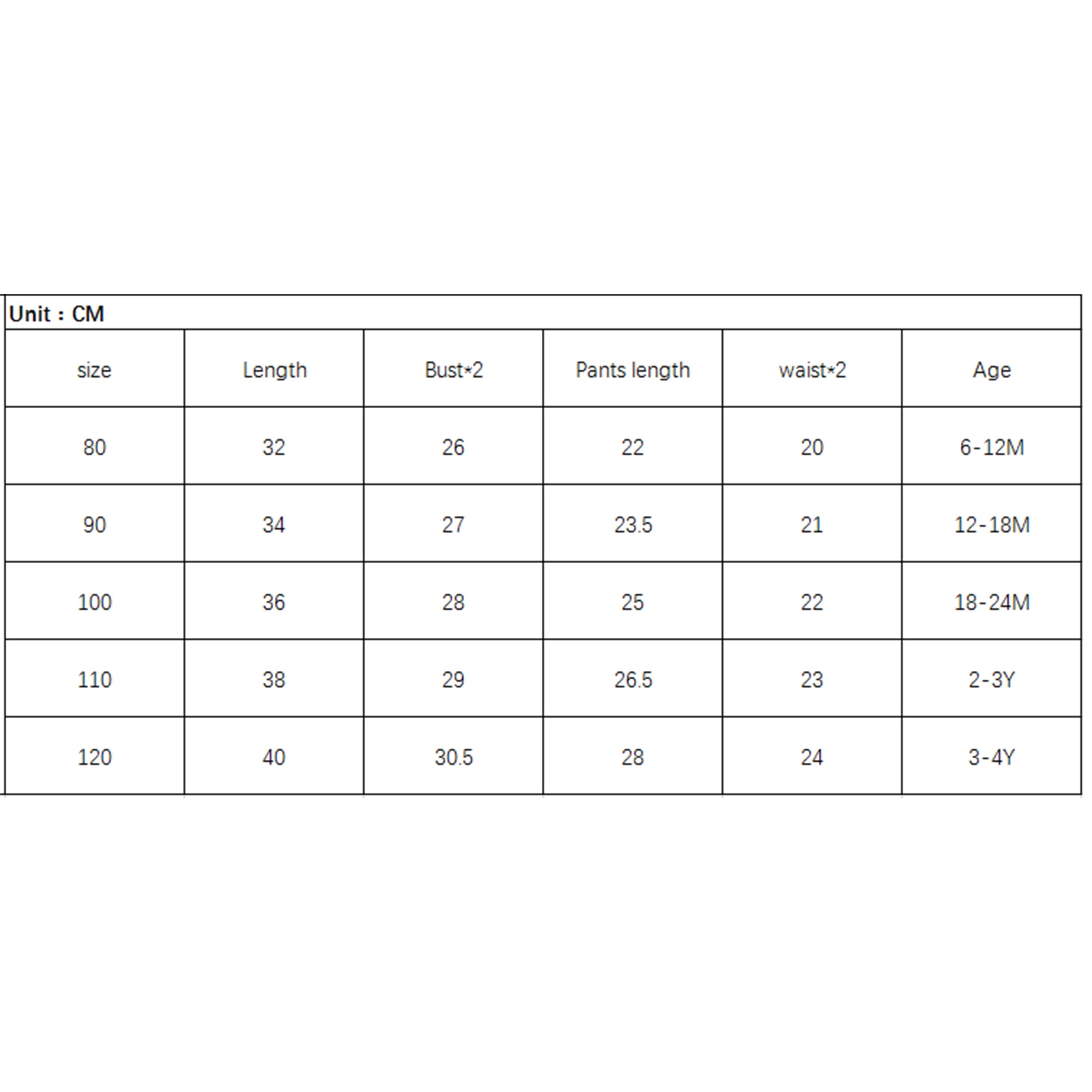 120 Рекомендуемый возраст: От 3 до 4 лет Длина топа: 40/15,75 Бюст: 61/24,02 Длина брюк: 28/11,02 Талия: 48/18,90