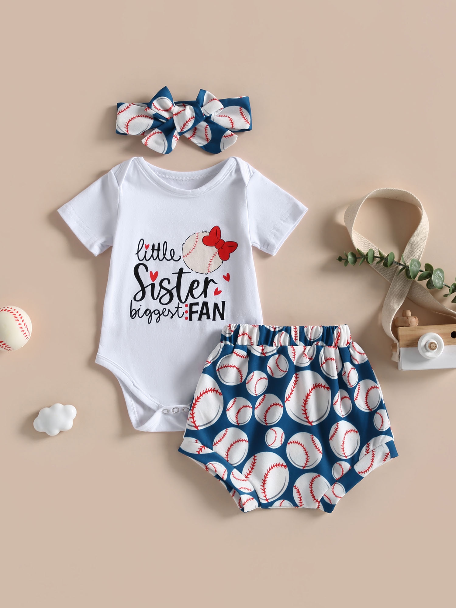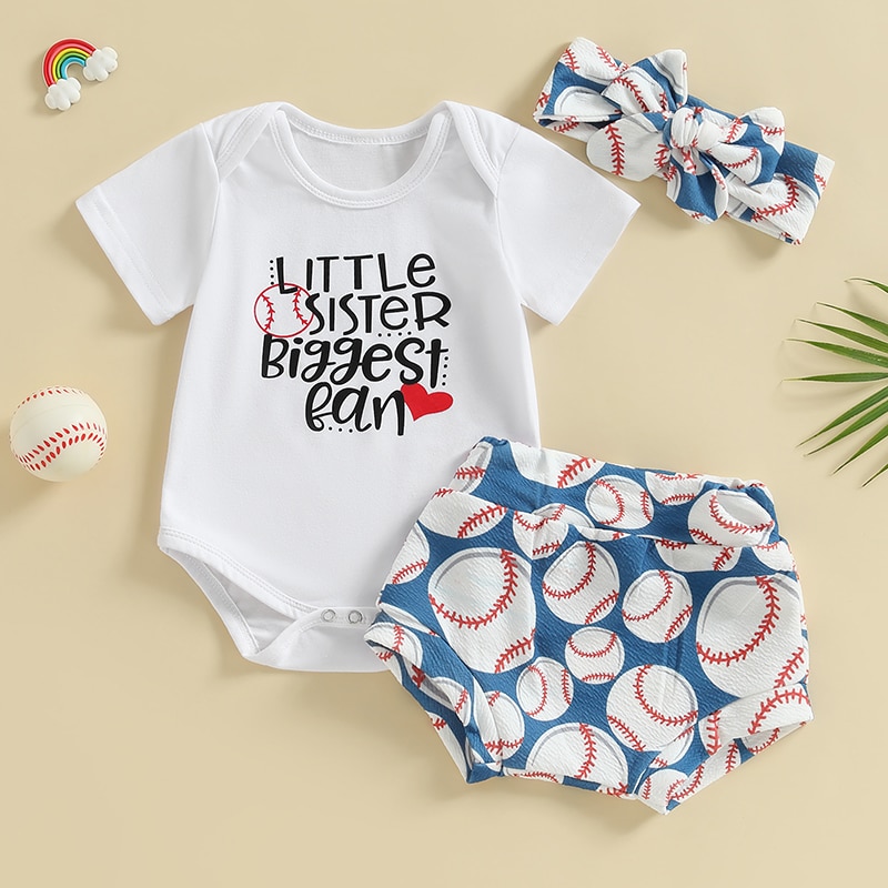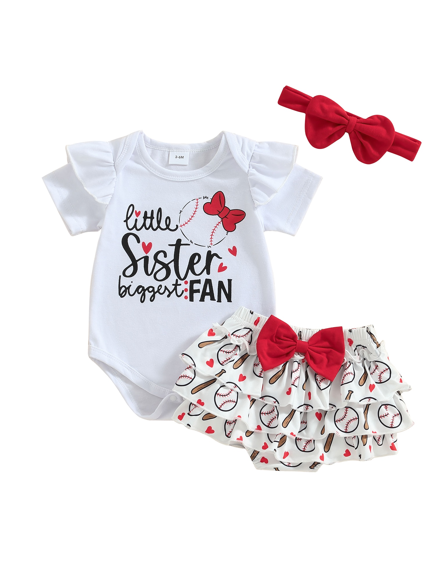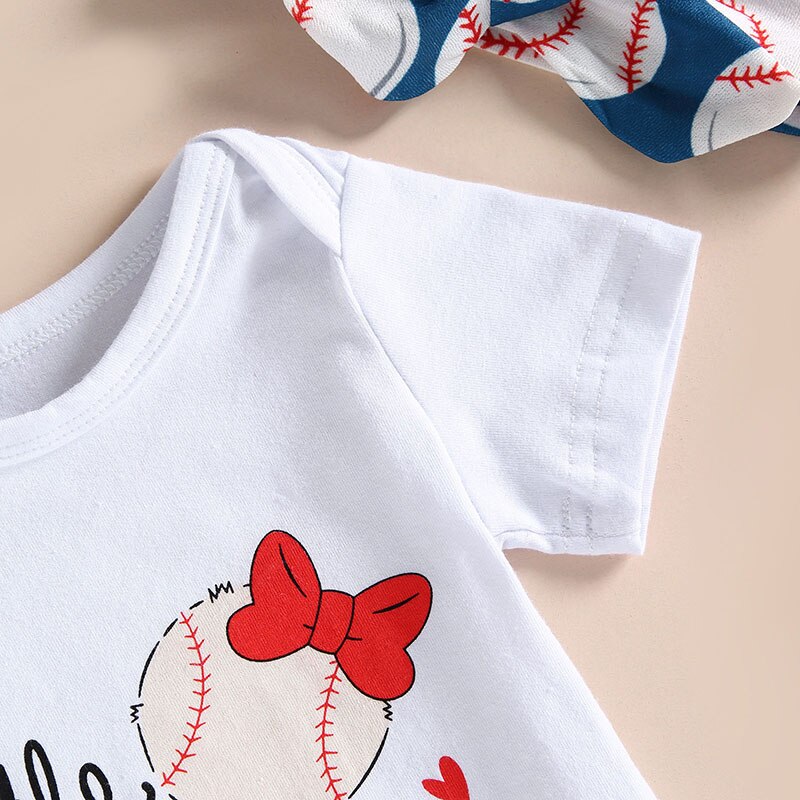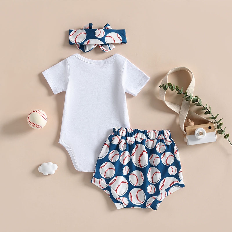 Описание: Бейсбольная одежда для маленьких девочек из 3 предметов, комбинезон с короткими рукавами + шорты с рюшами + повязка на голову