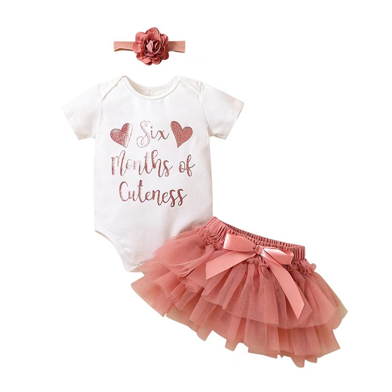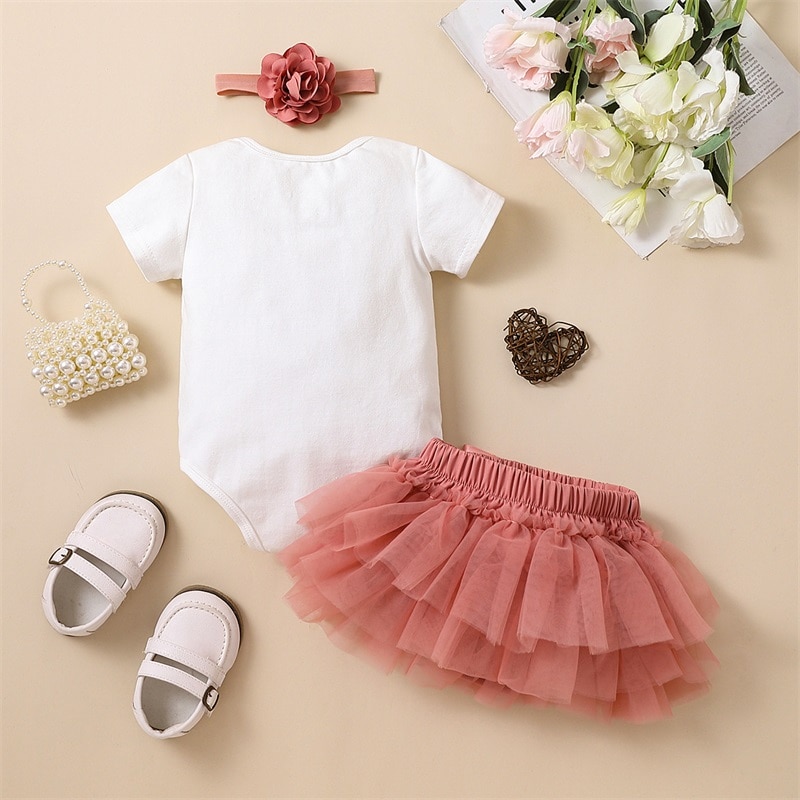 Описание: Летние наряды из 3 предметов для маленьких девочек, комбинезон с короткими рукавами и принтом сердца, юбка-пачка, повязка на голову, детская одежда