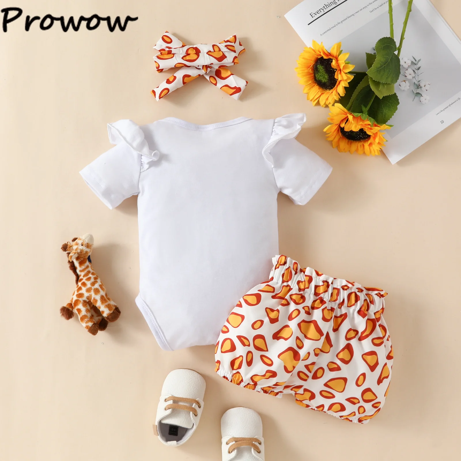 Комплекты одежды для маленьких жирафов Prowow 0-18 м, боди с мультяшными рукавами-мушками и буквами + брюки с леопардовым бантом, Одежда для новорожденных девочек