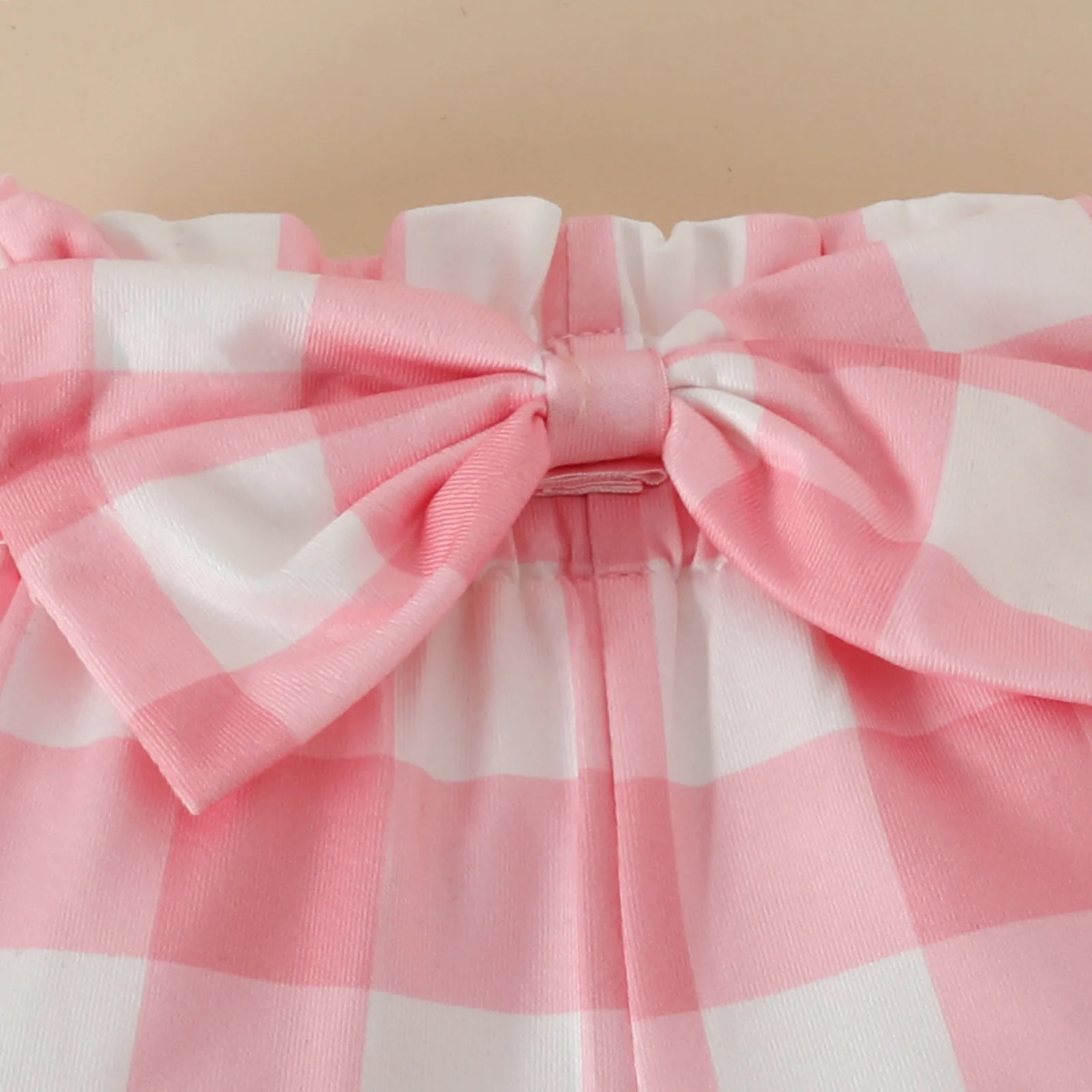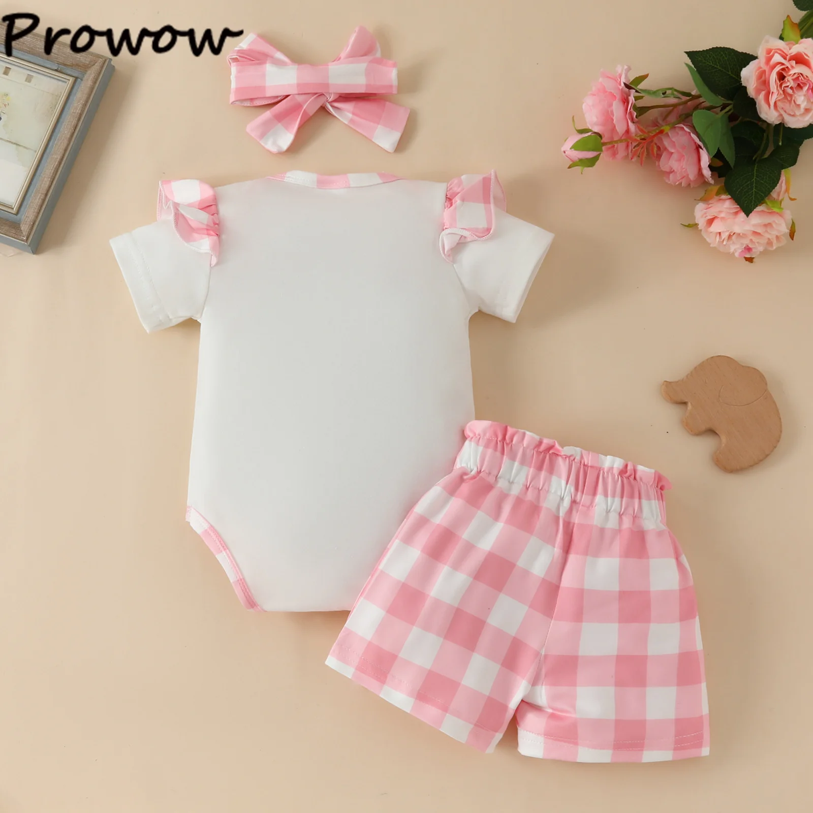 Летняя одежда для маленьких девочек со слоном Prowow, комплект с мультяшным принтом, боди с буквенным принтом и шорты с бантом в клетку, Одежда для новорожденных девочек