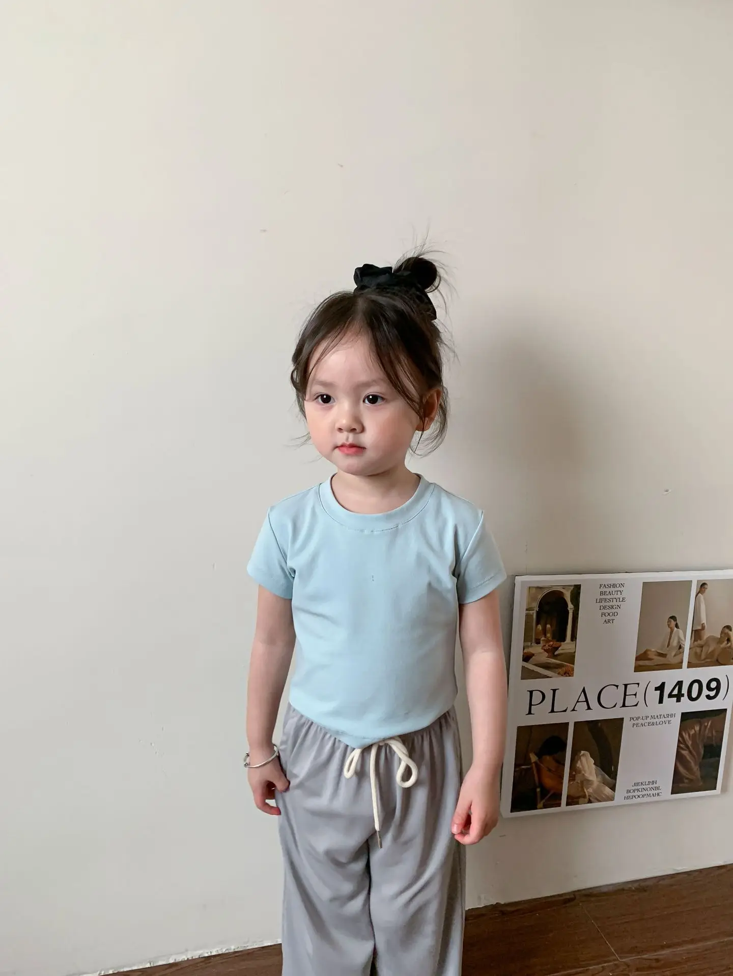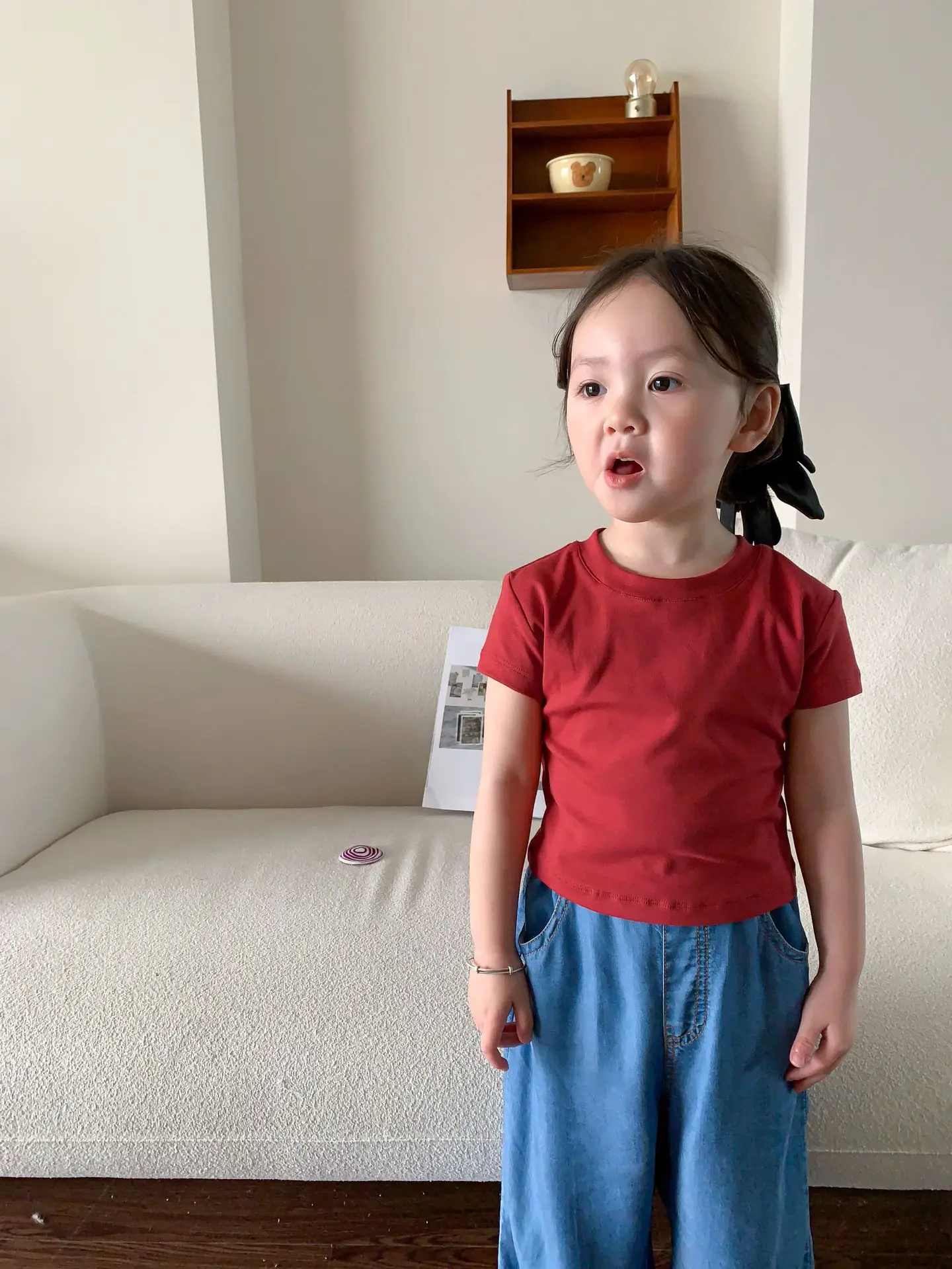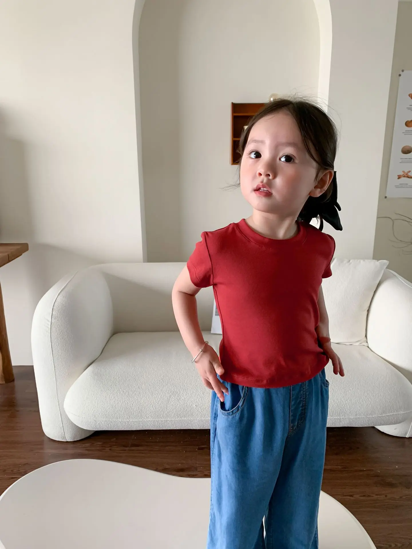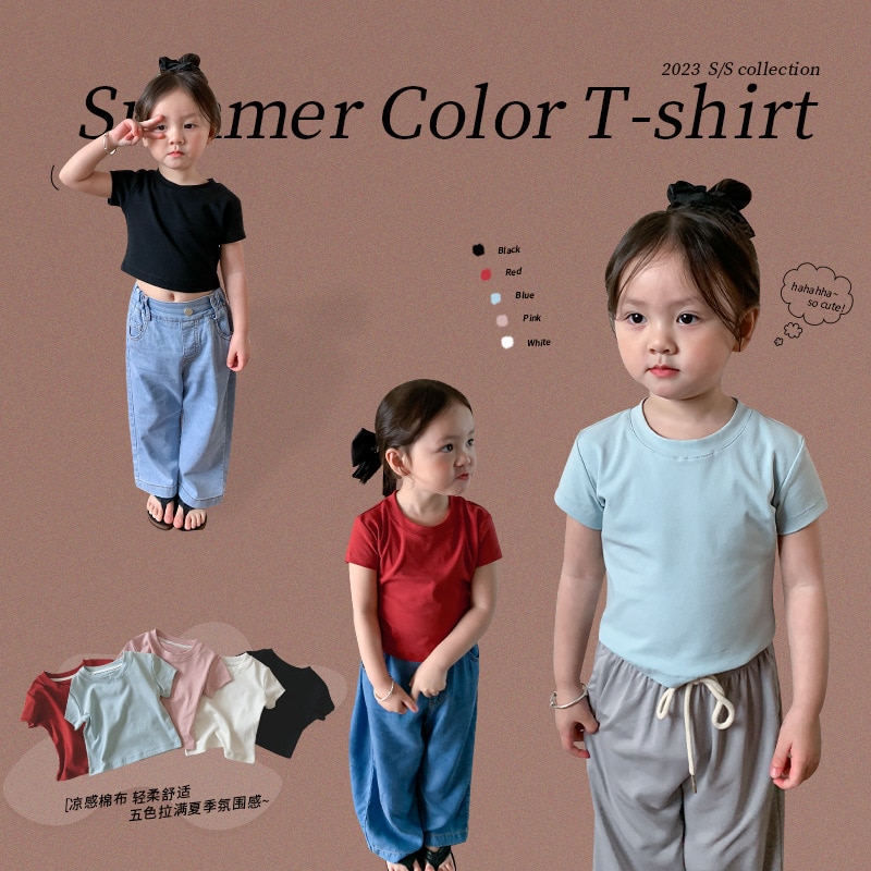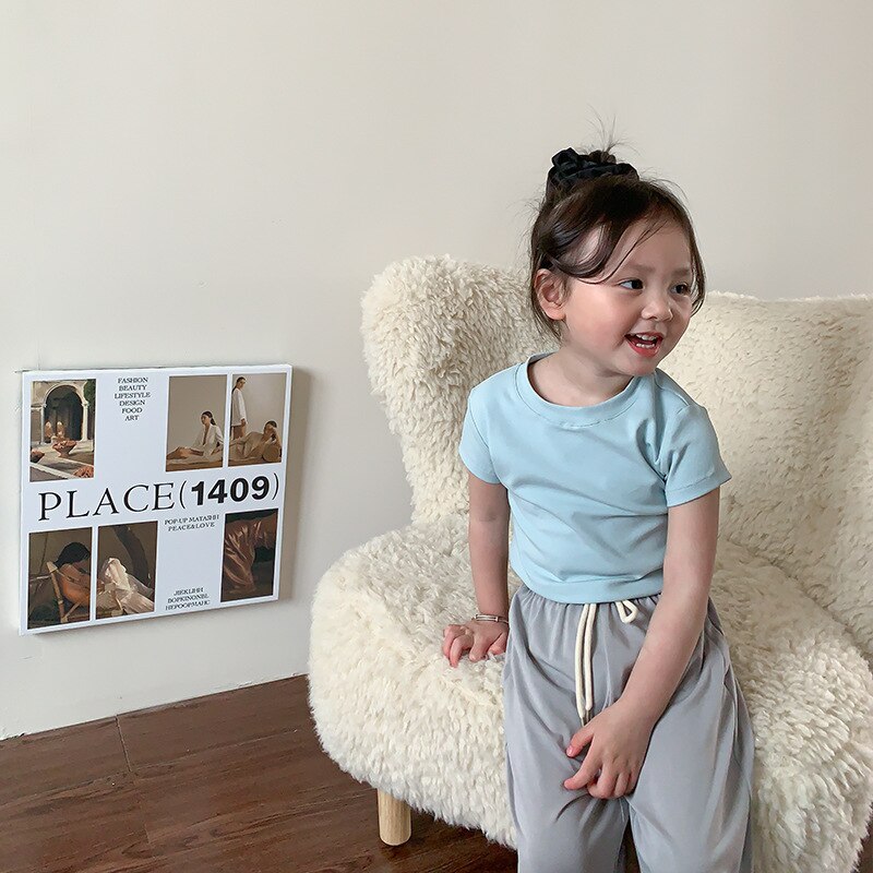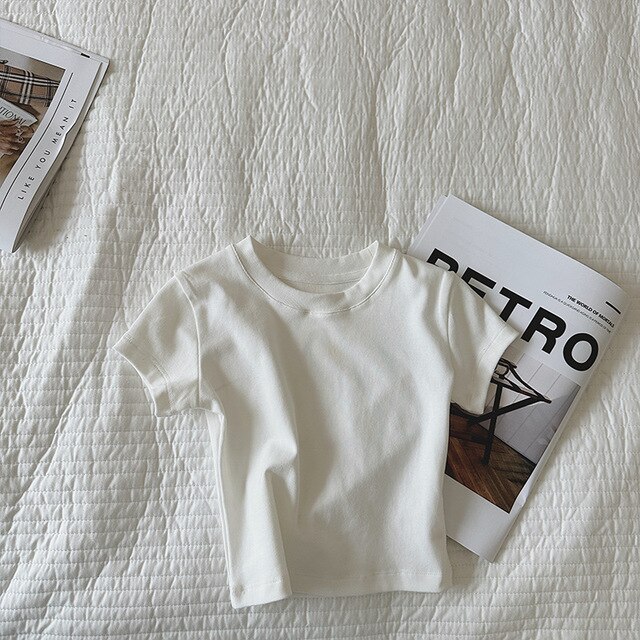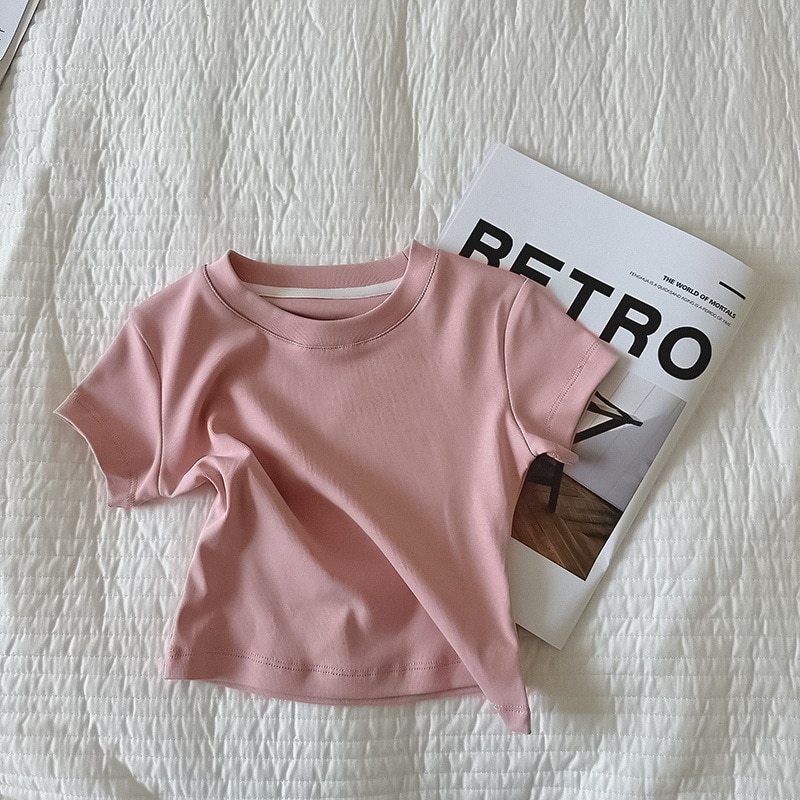 Летняя однотонная повседневная короткая футболка для девочек 2023