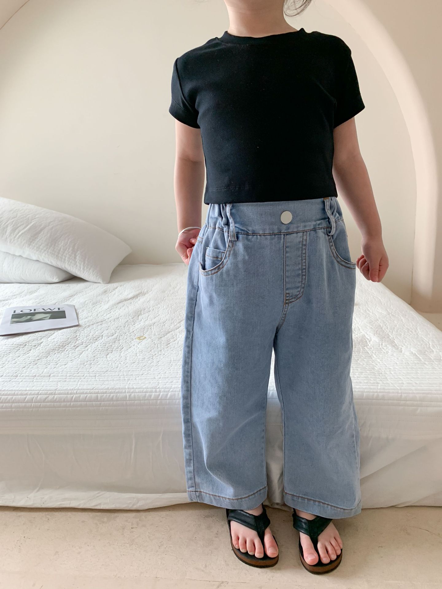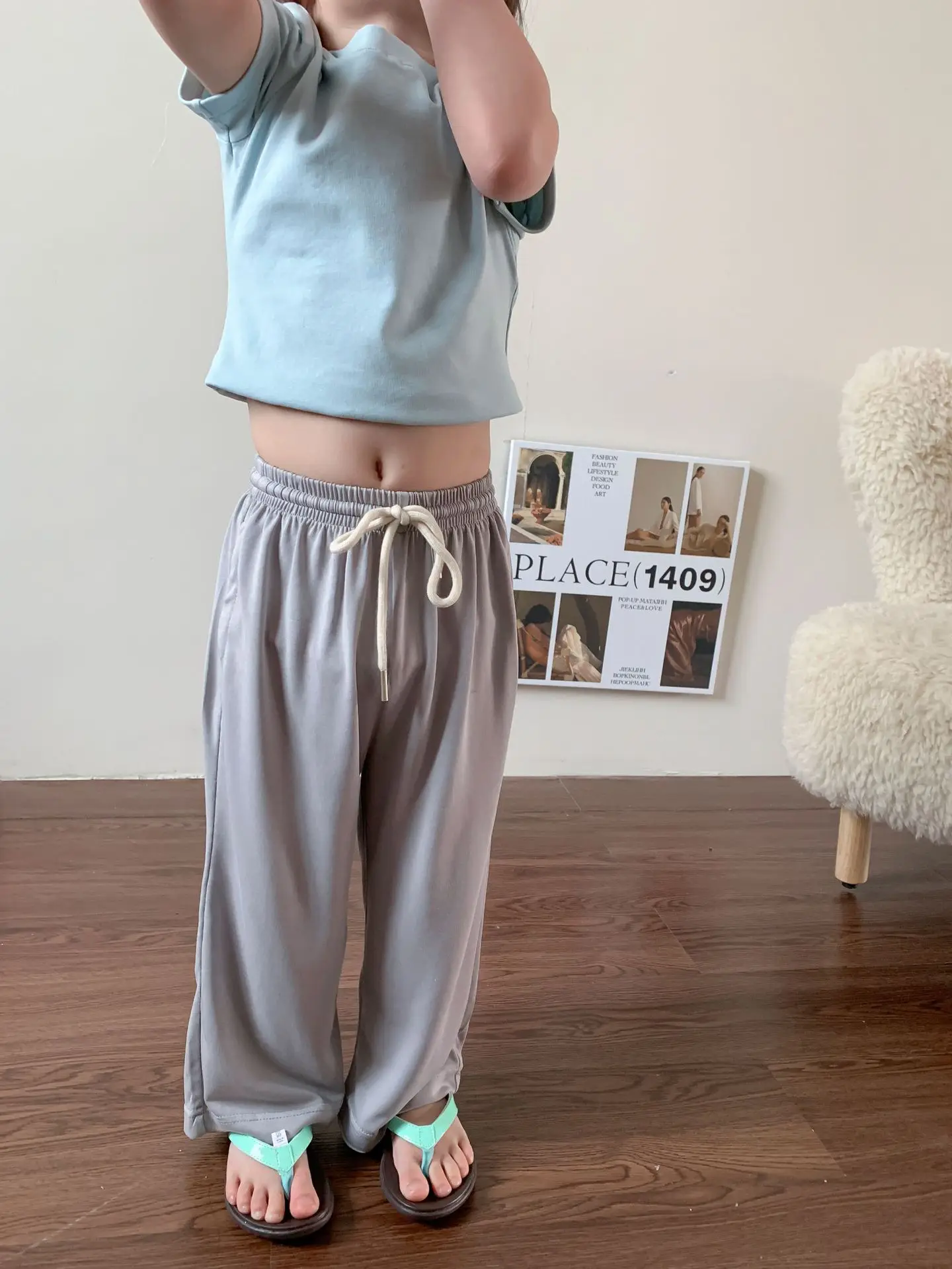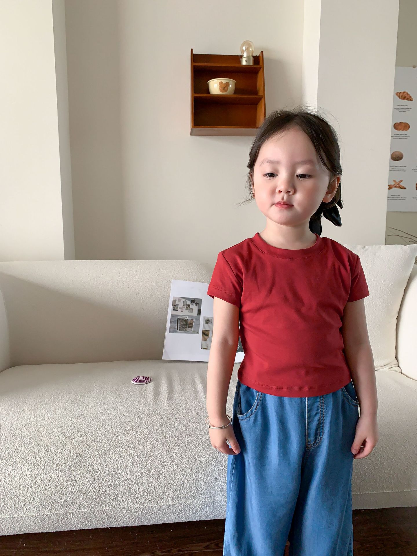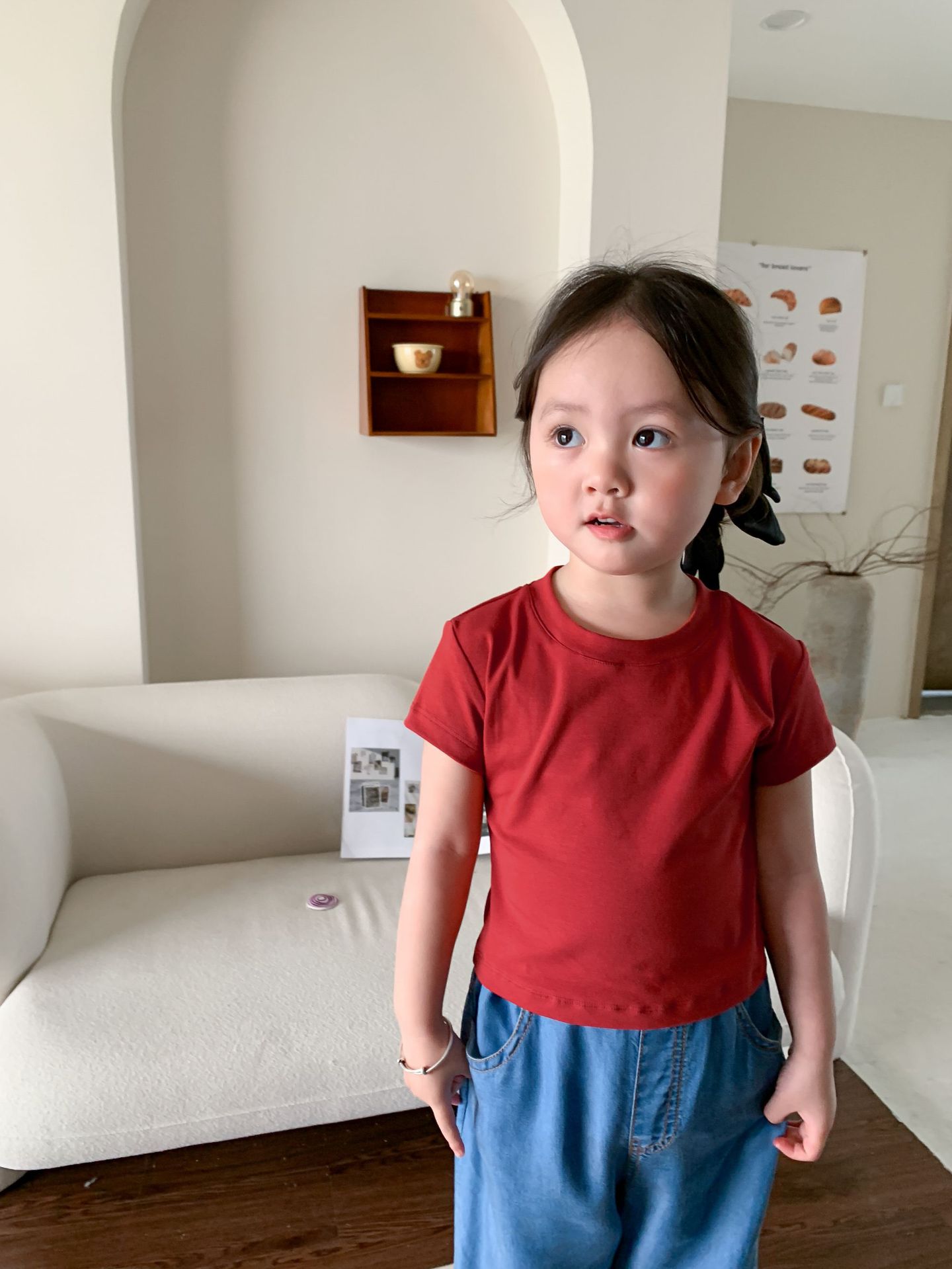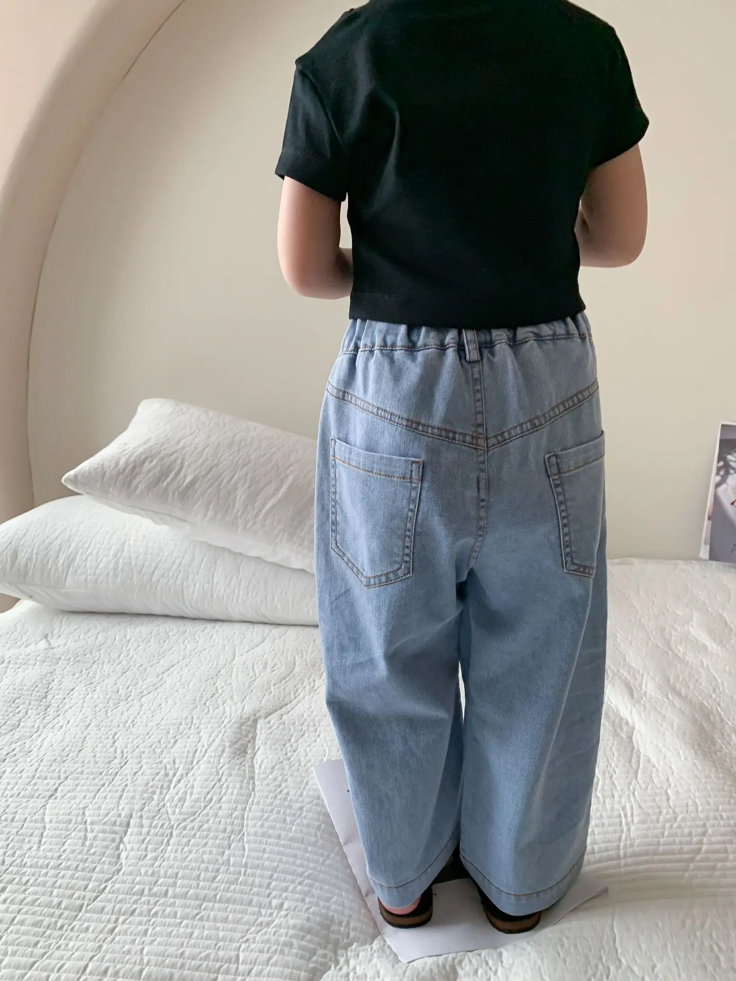 Летняя однотонная повседневная короткая футболка для девочек 2023