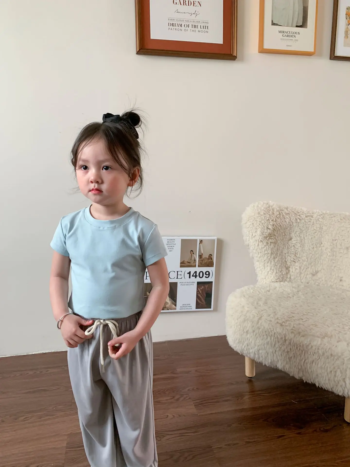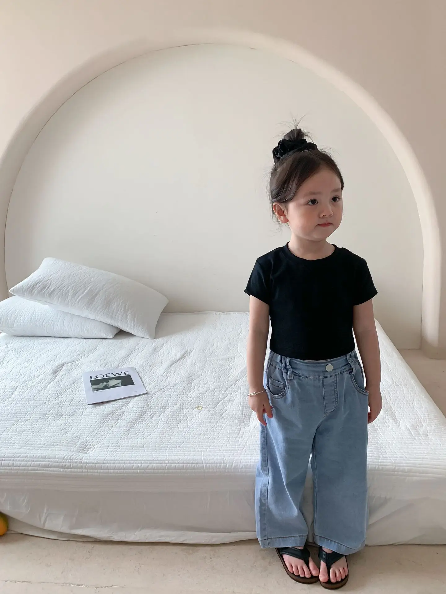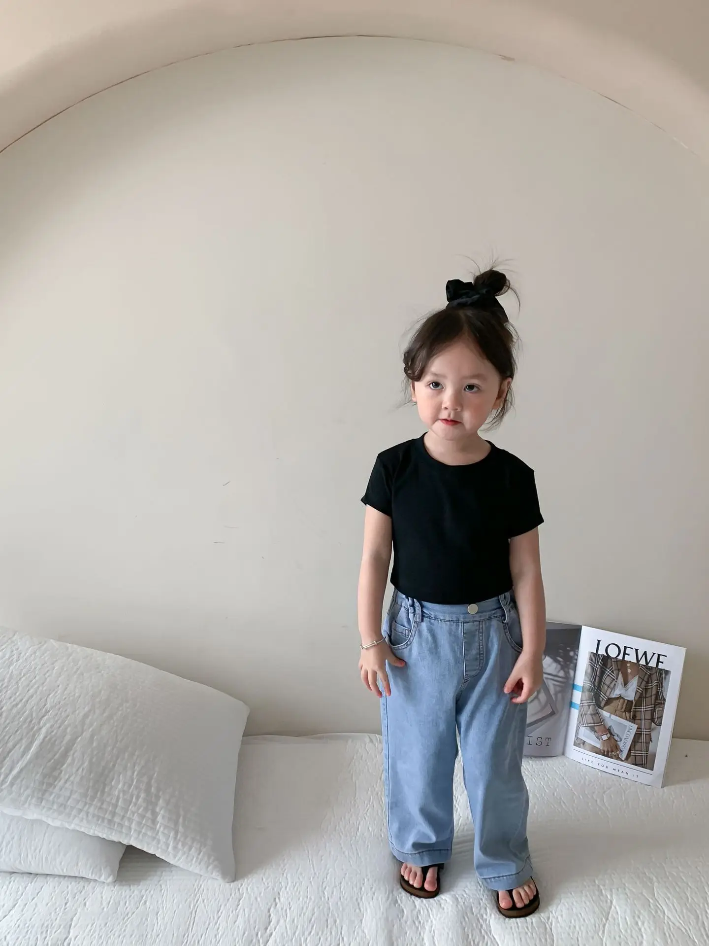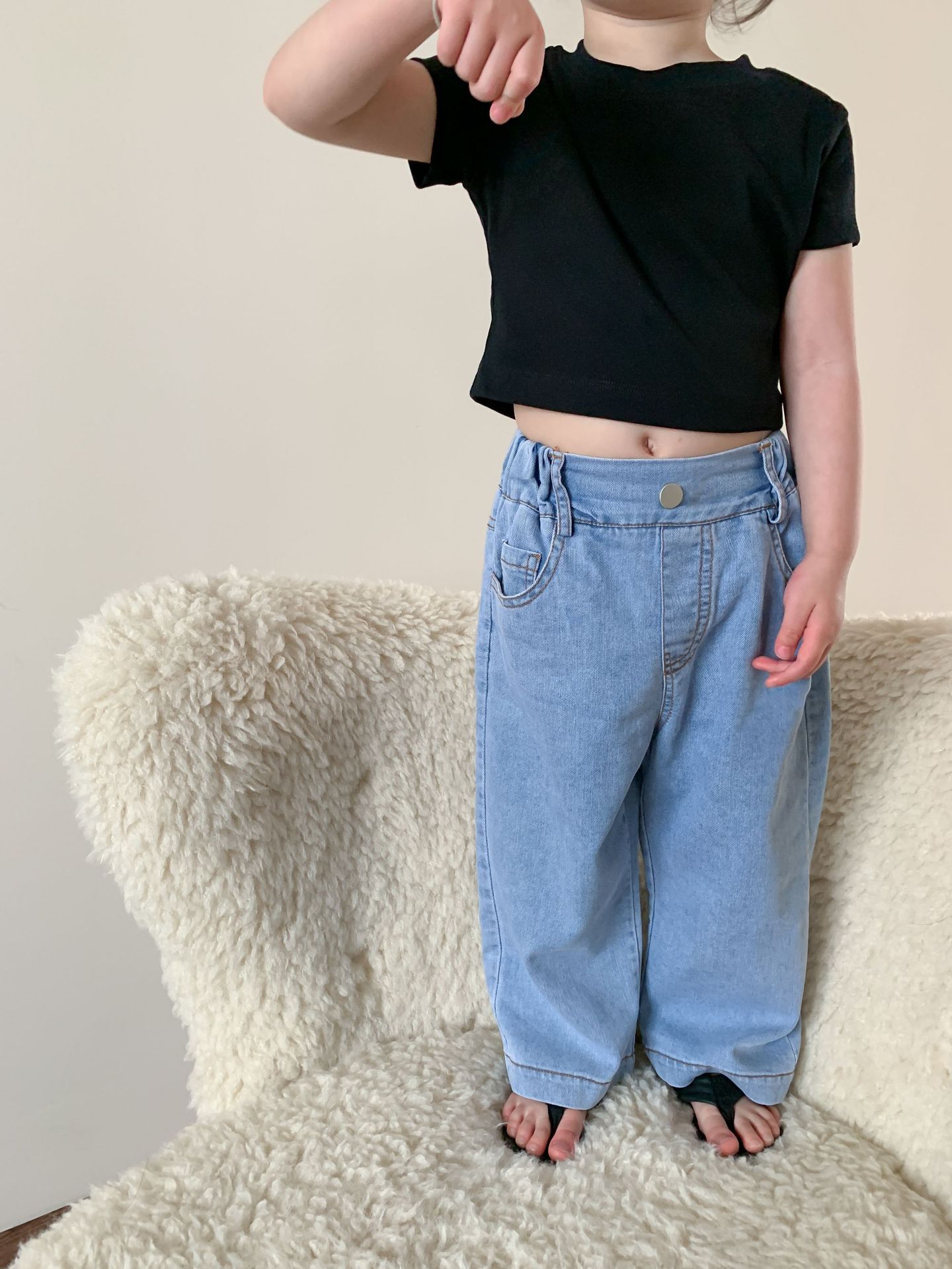 Летняя однотонная повседневная короткая футболка для девочек 2023